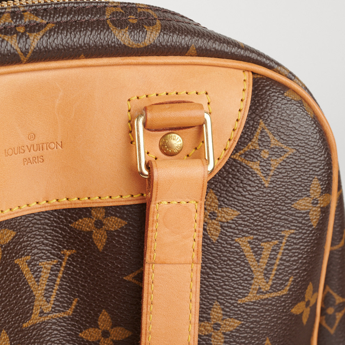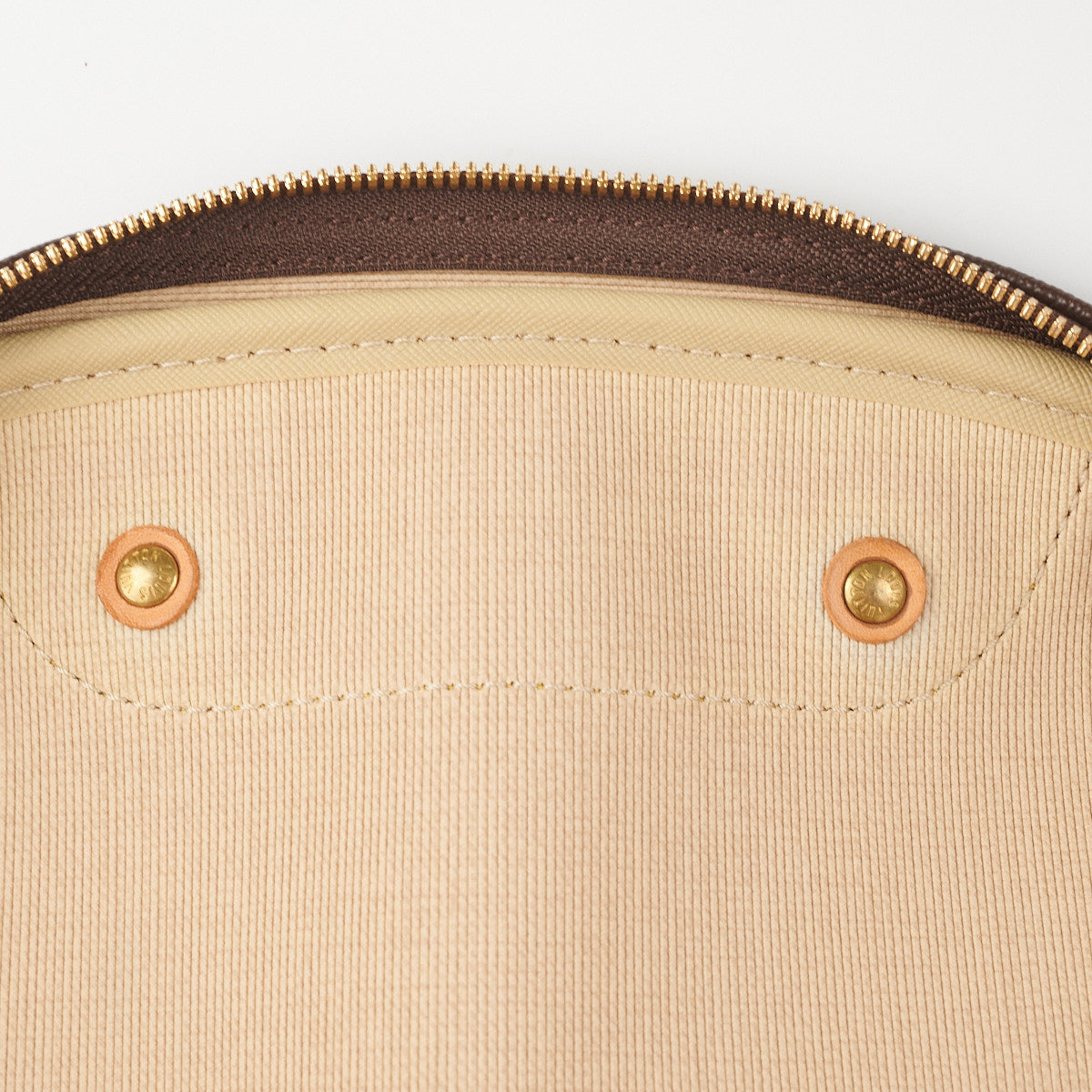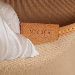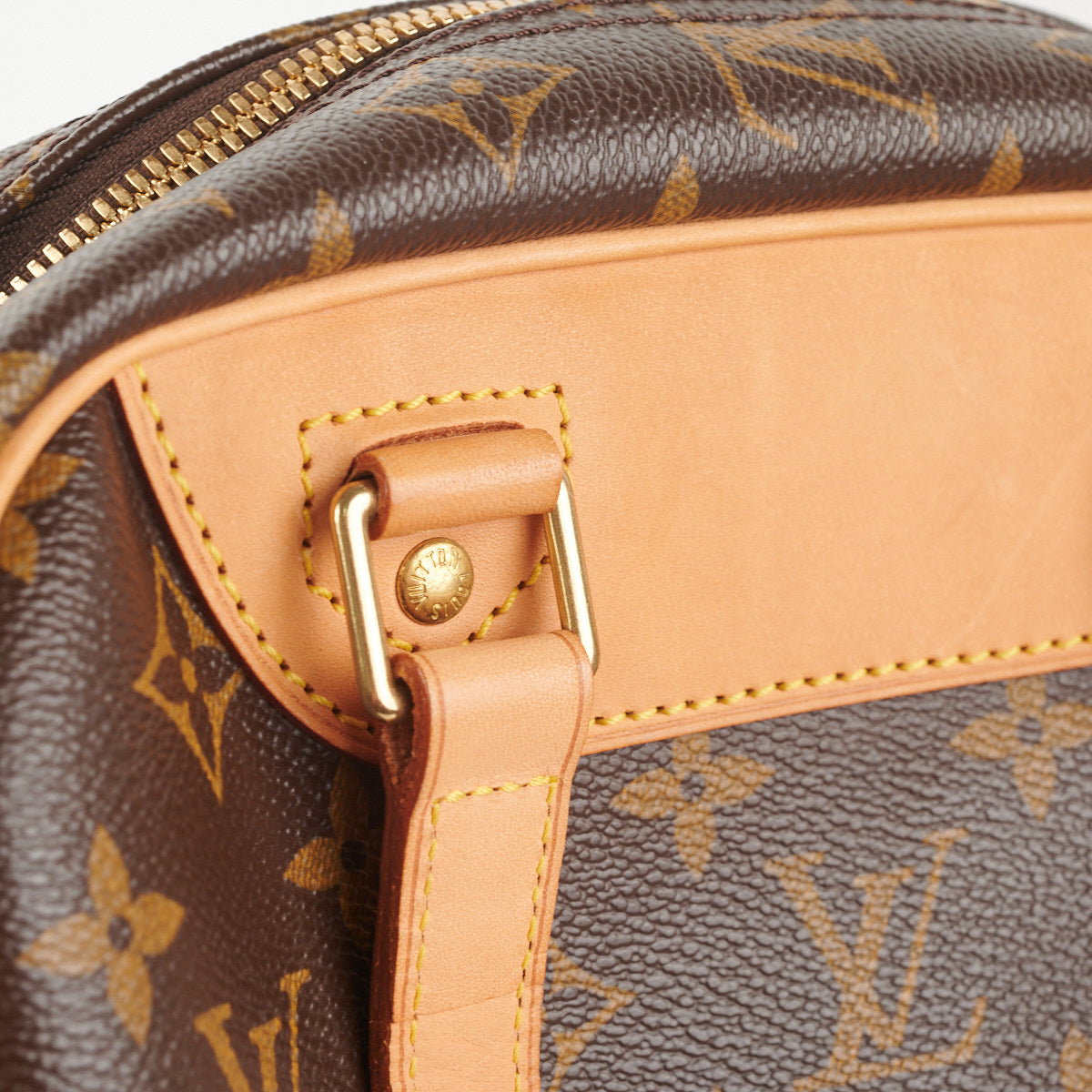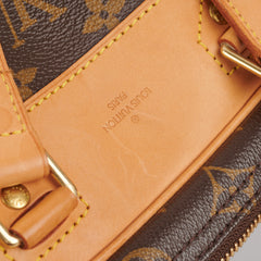 Hairline scratches and slight tarnishing on hardware, nail marks on darkened vachetta leather parts, clean interior
