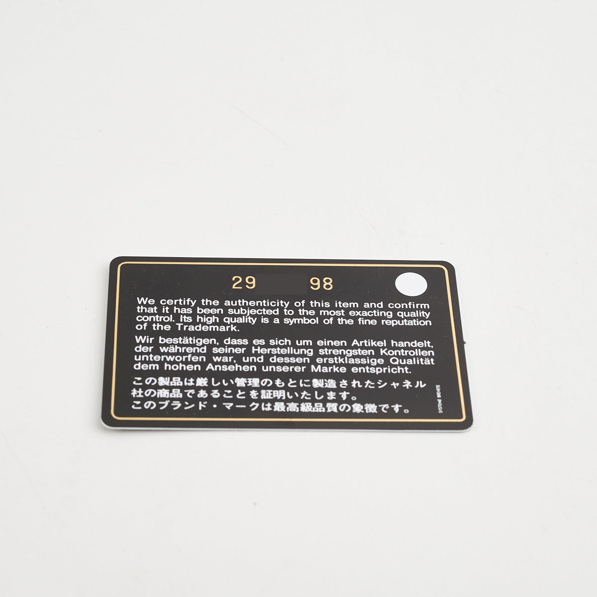 Authenticity Card, Bo