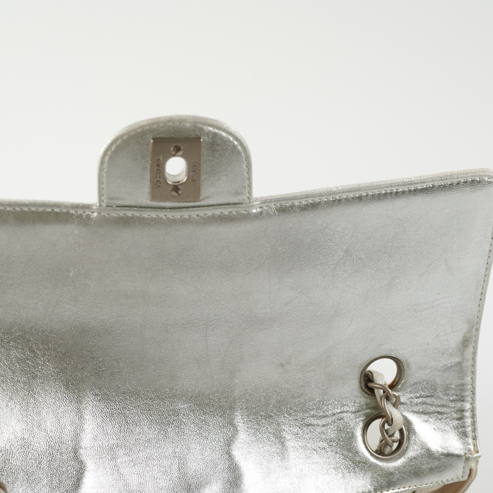 Colour transfer at the back, hairline scratches on hardware, yellow stains interior, general signs of wear, structure intact