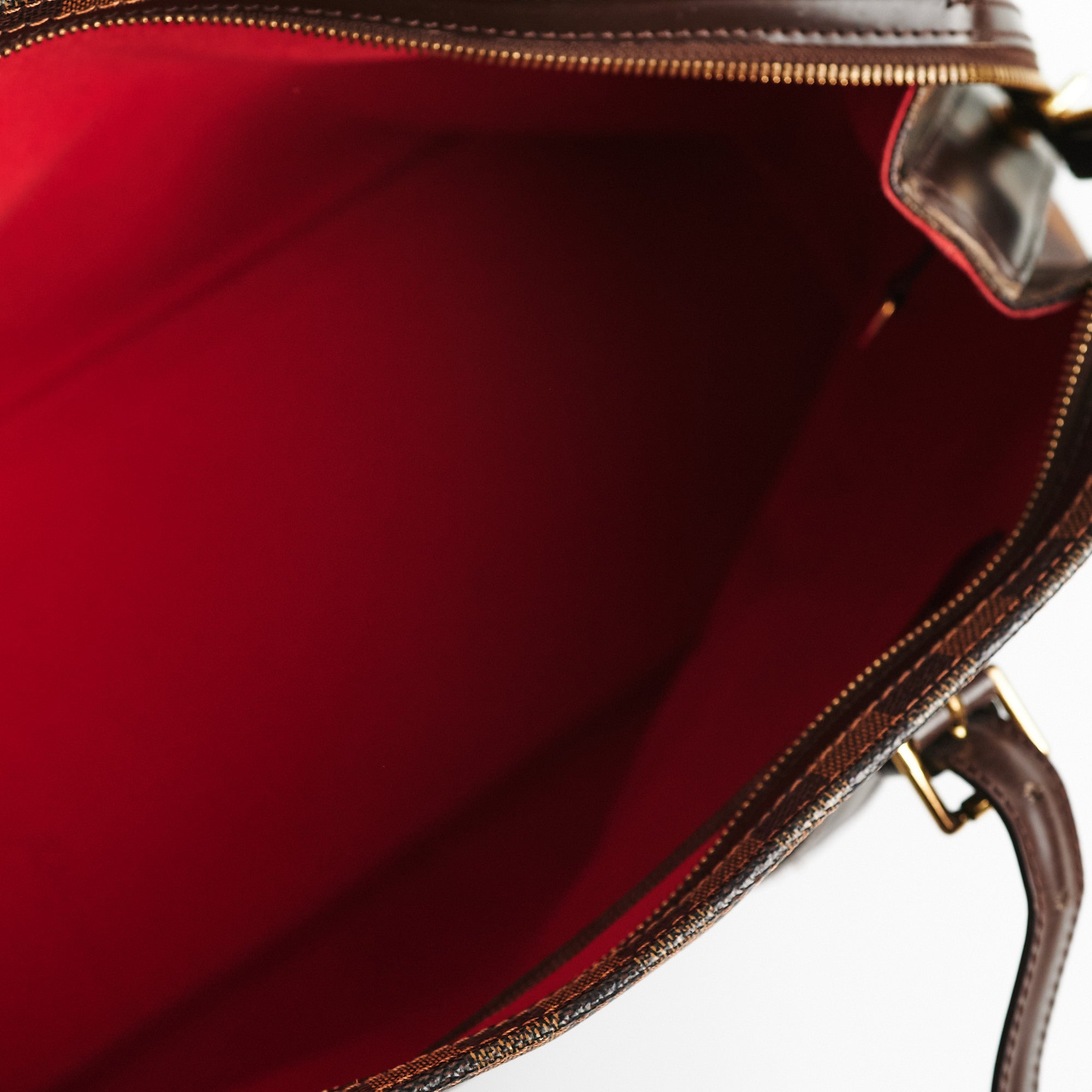 Rubbing on corners, slightly cracking on leather, tarnishing on zipper, clean inside