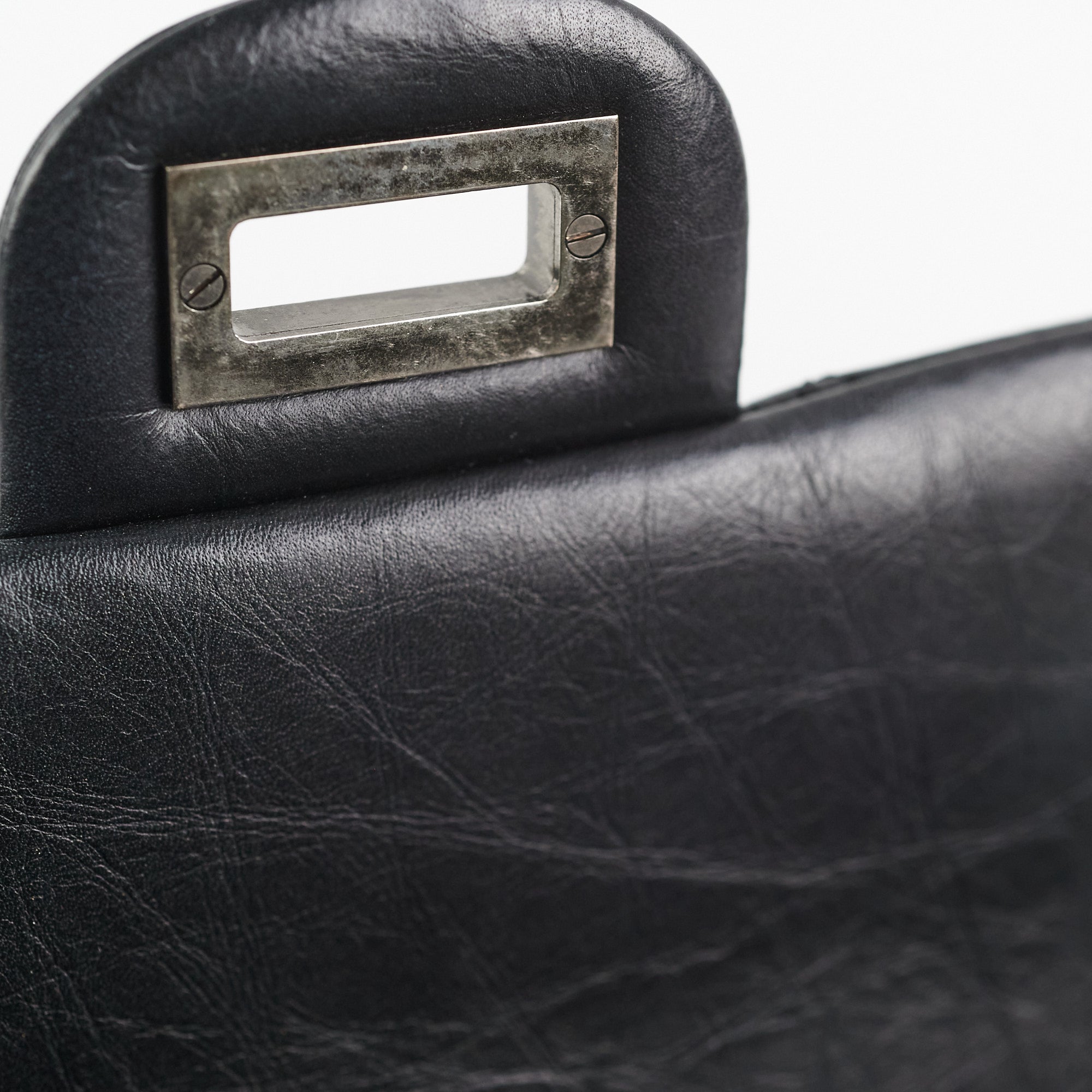 Light hairline scratches on hardware, slightly softened base, light nail mark under flap