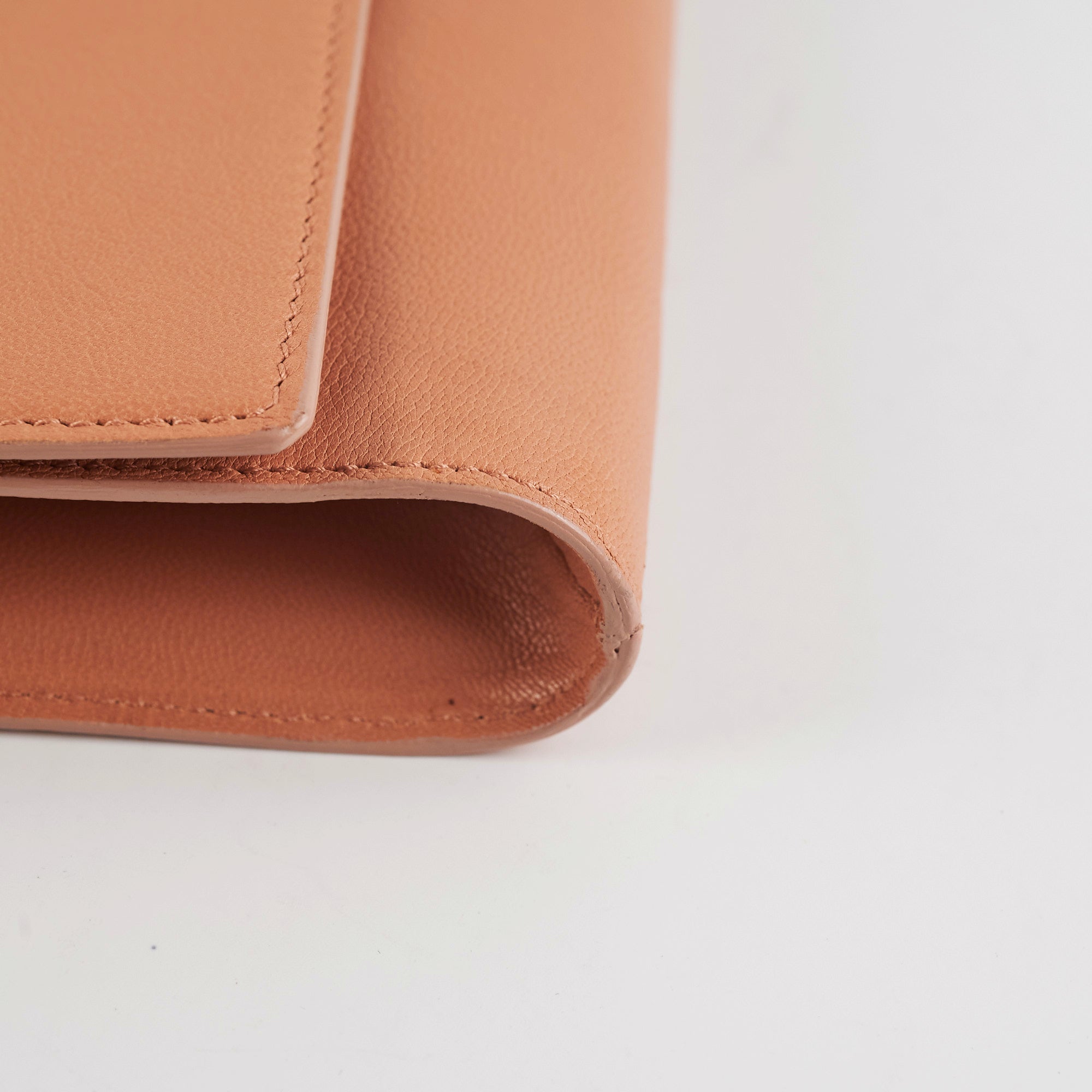 Minor crease mark on front leather and under flap, minor edge rubbing.