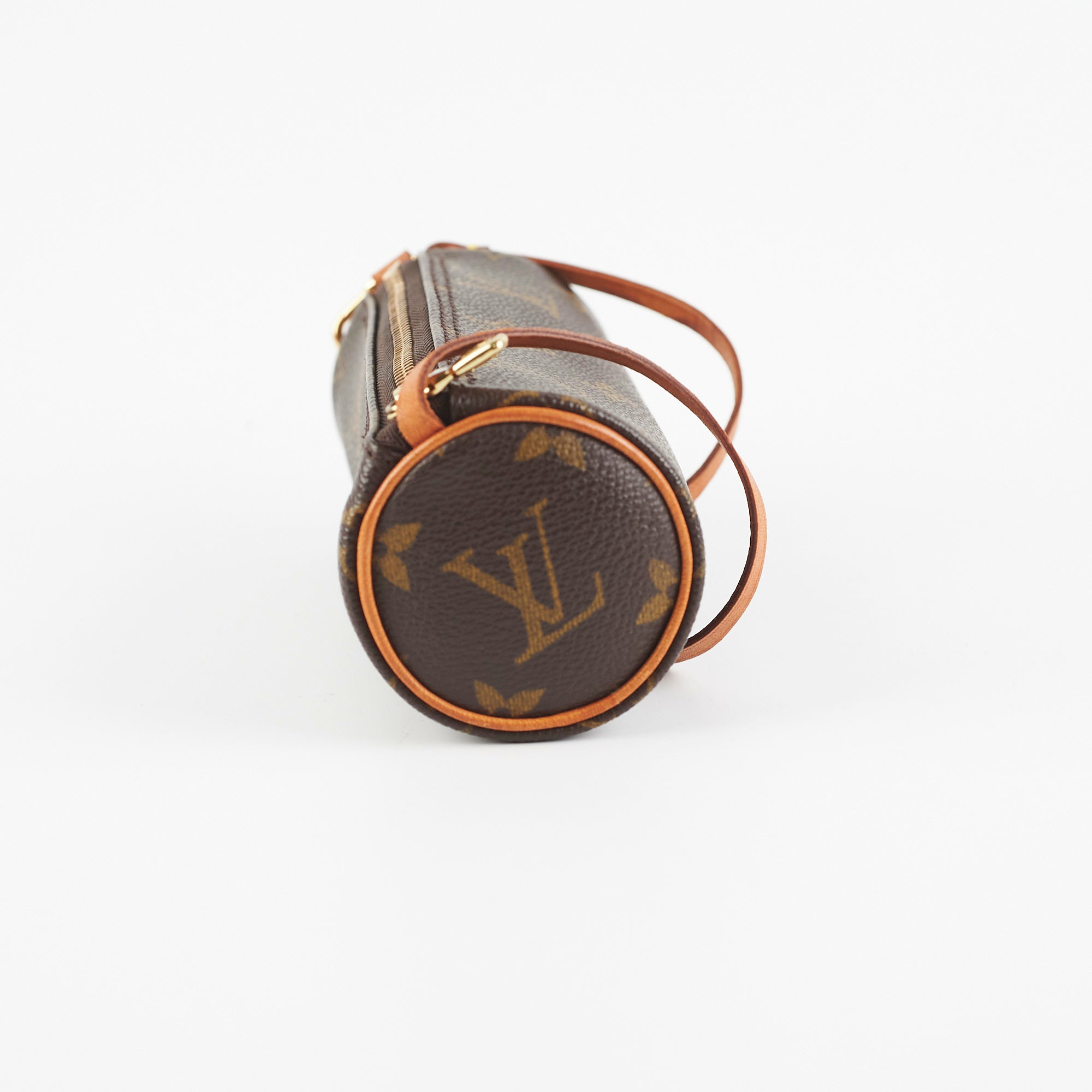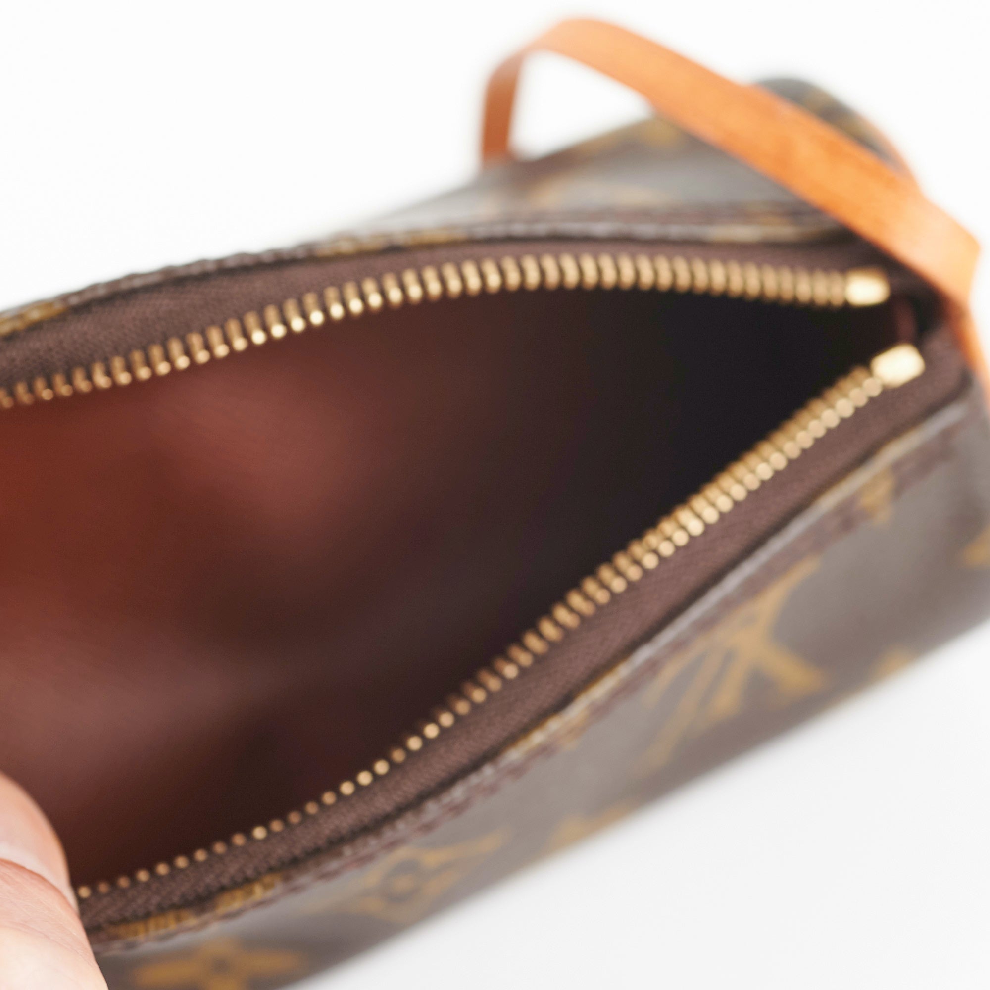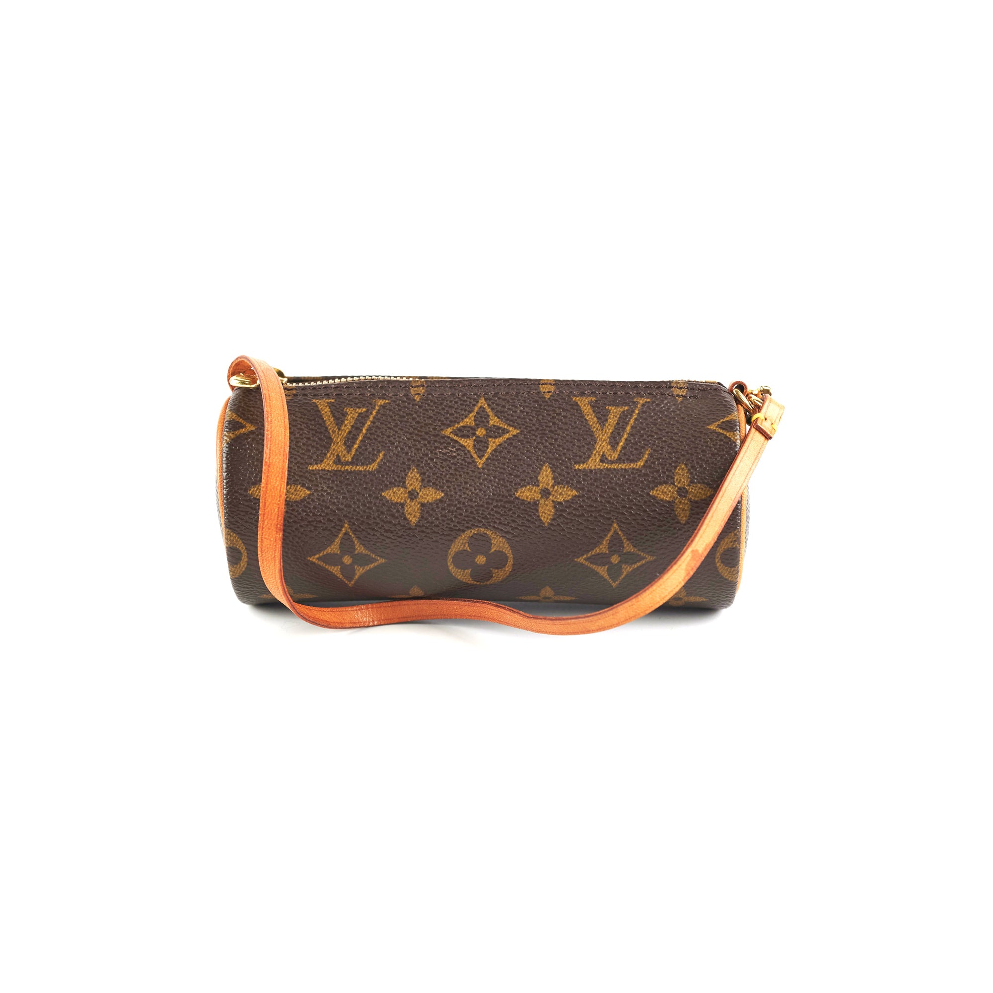 Light hairline scratches and minor tarnishing on hardware, darkened patina on vachetta and light water marks on strap