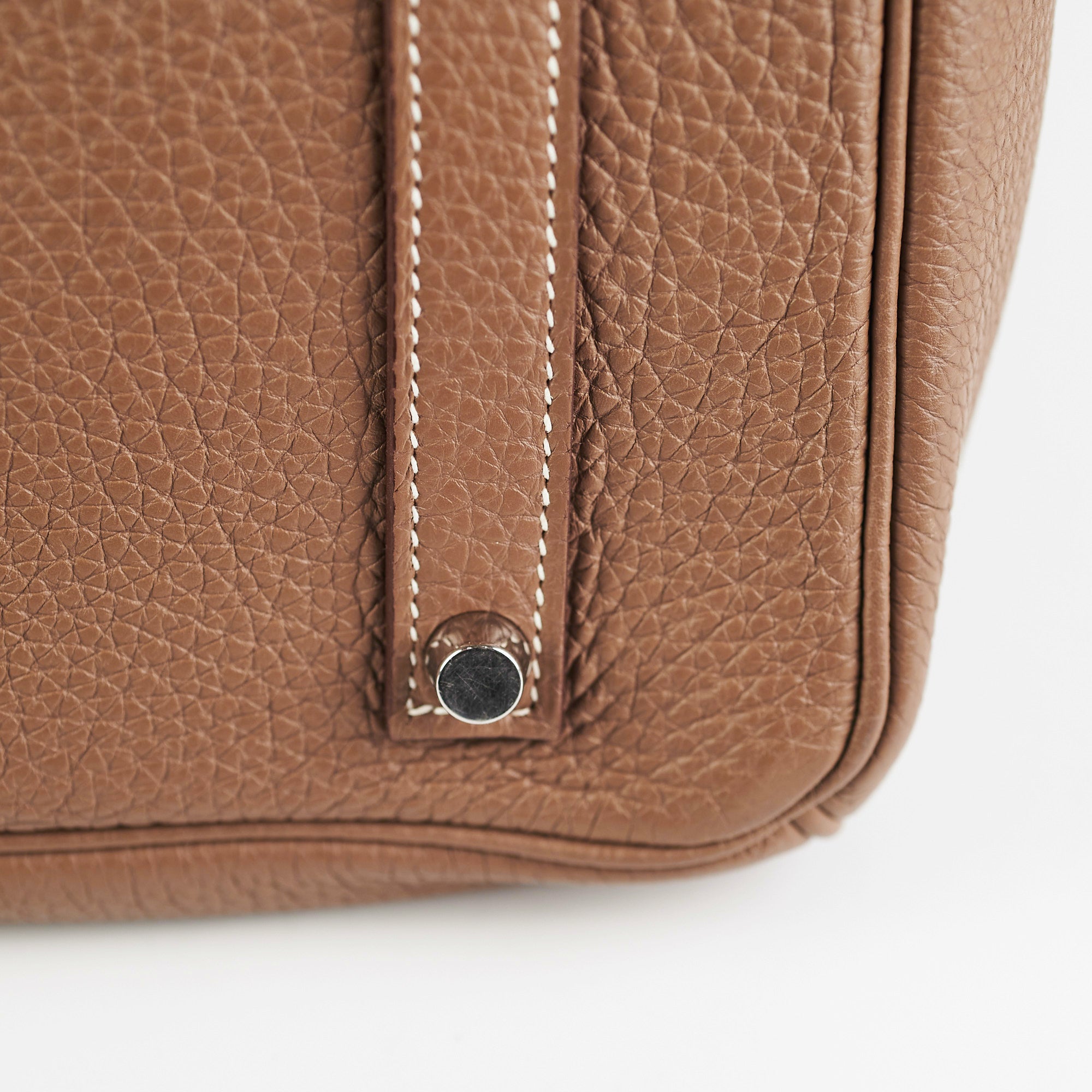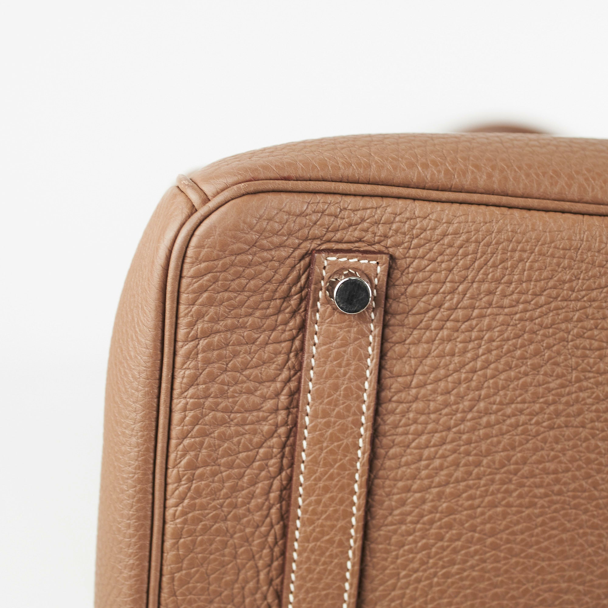 Light hairline scratches and minor tarnishing on hardware, light creasing on sides, light mark on interior base, shooting star stamp