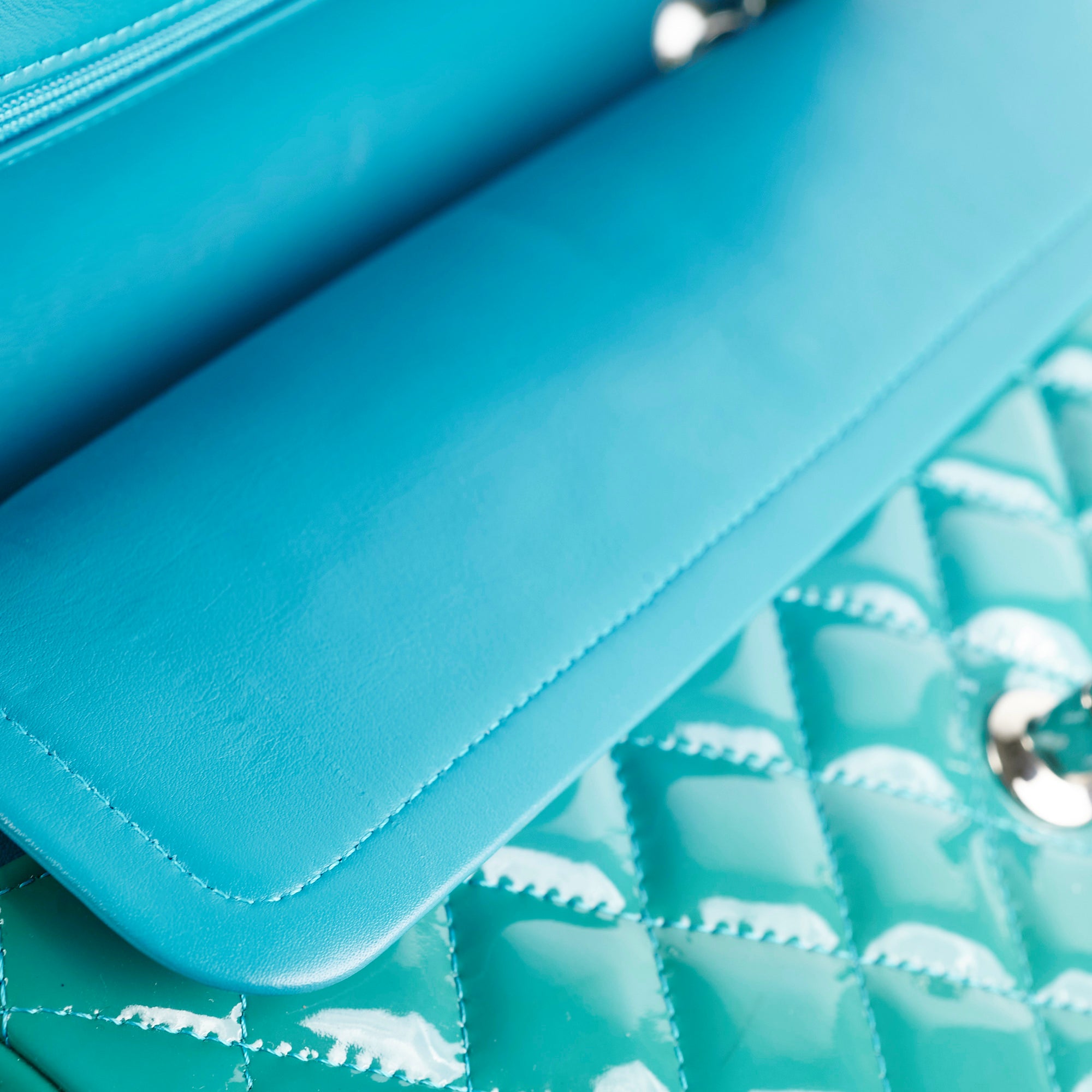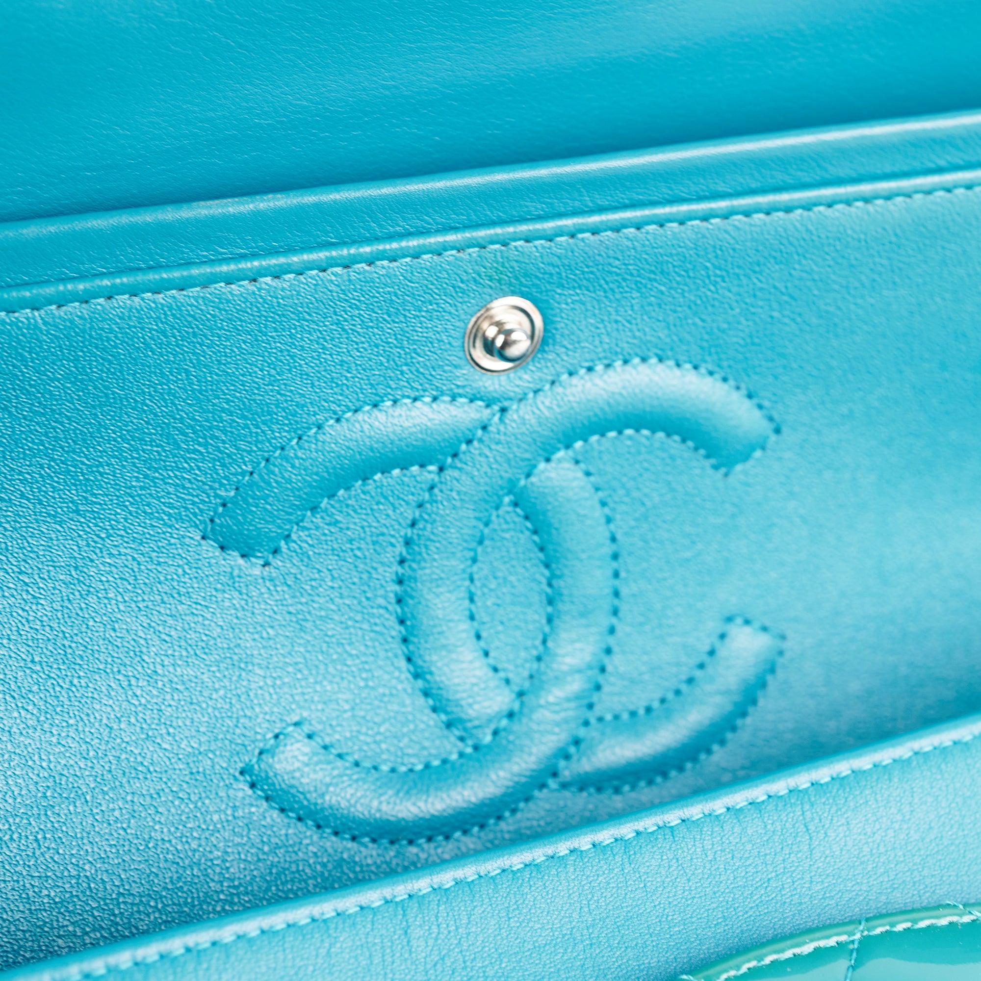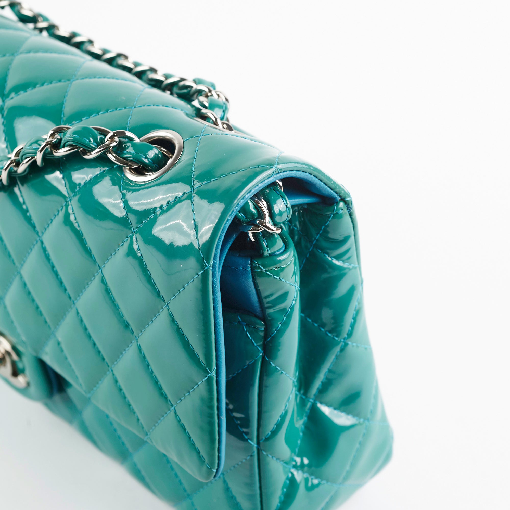 Chanel Quilted Patent Medium Large Classic Flap Teal