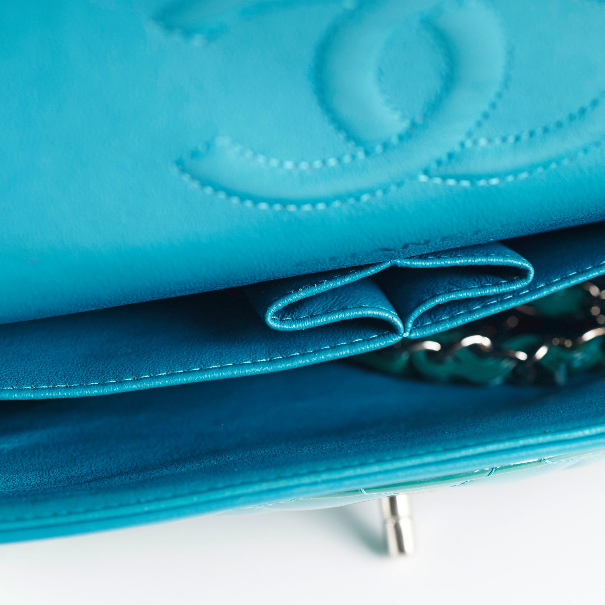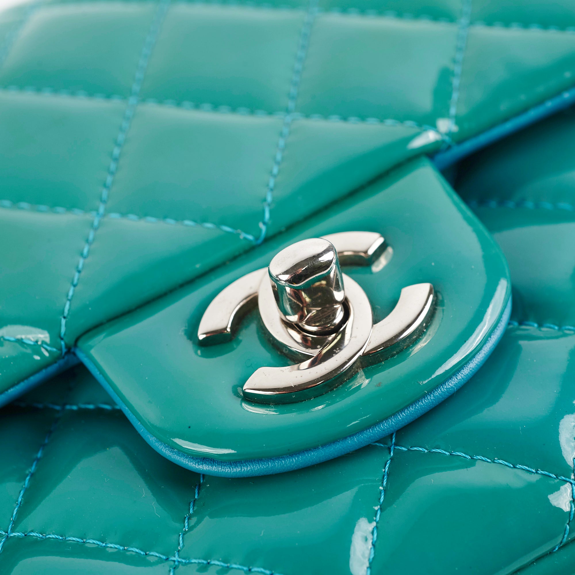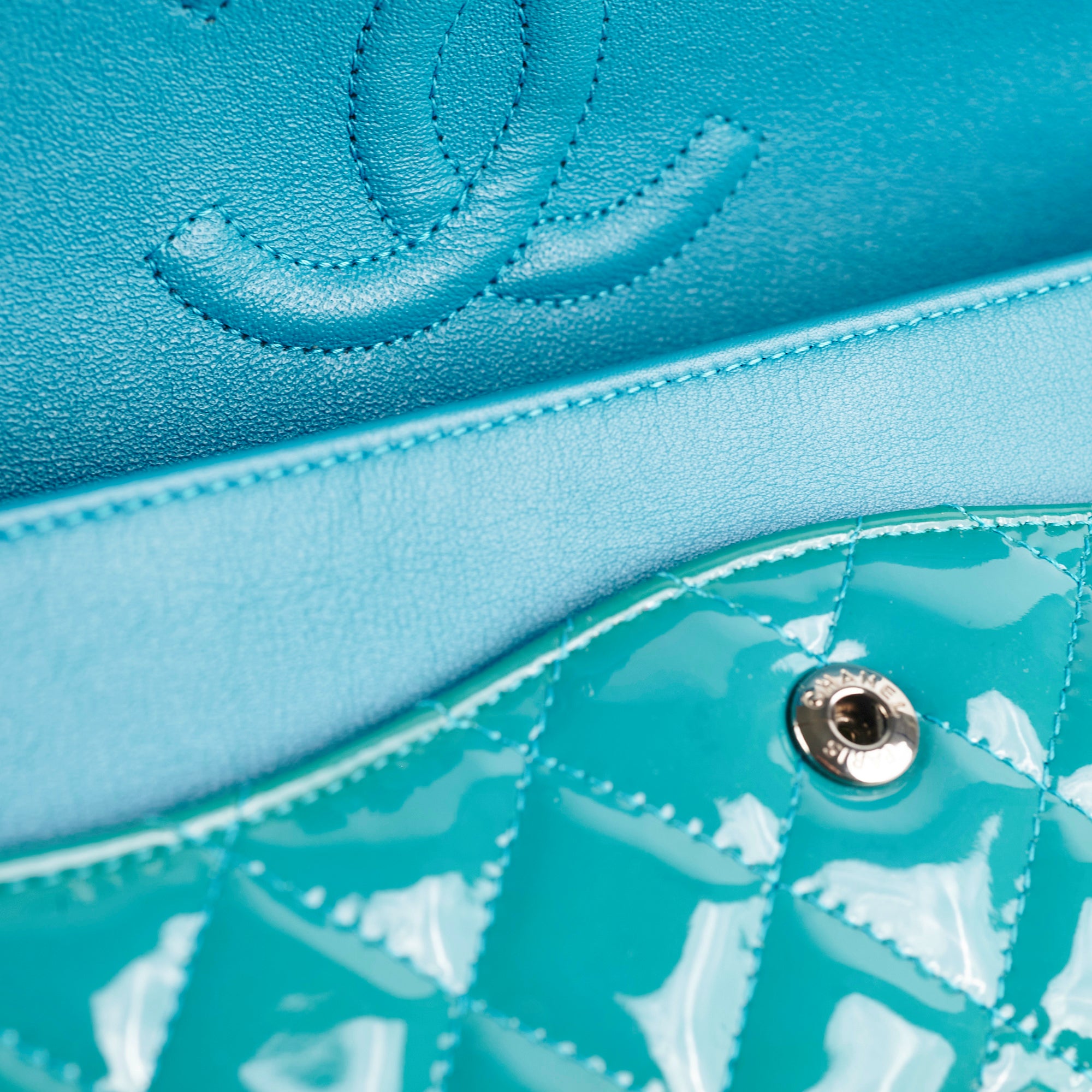 Chanel Quilted Patent Medium Large Classic Flap Teal