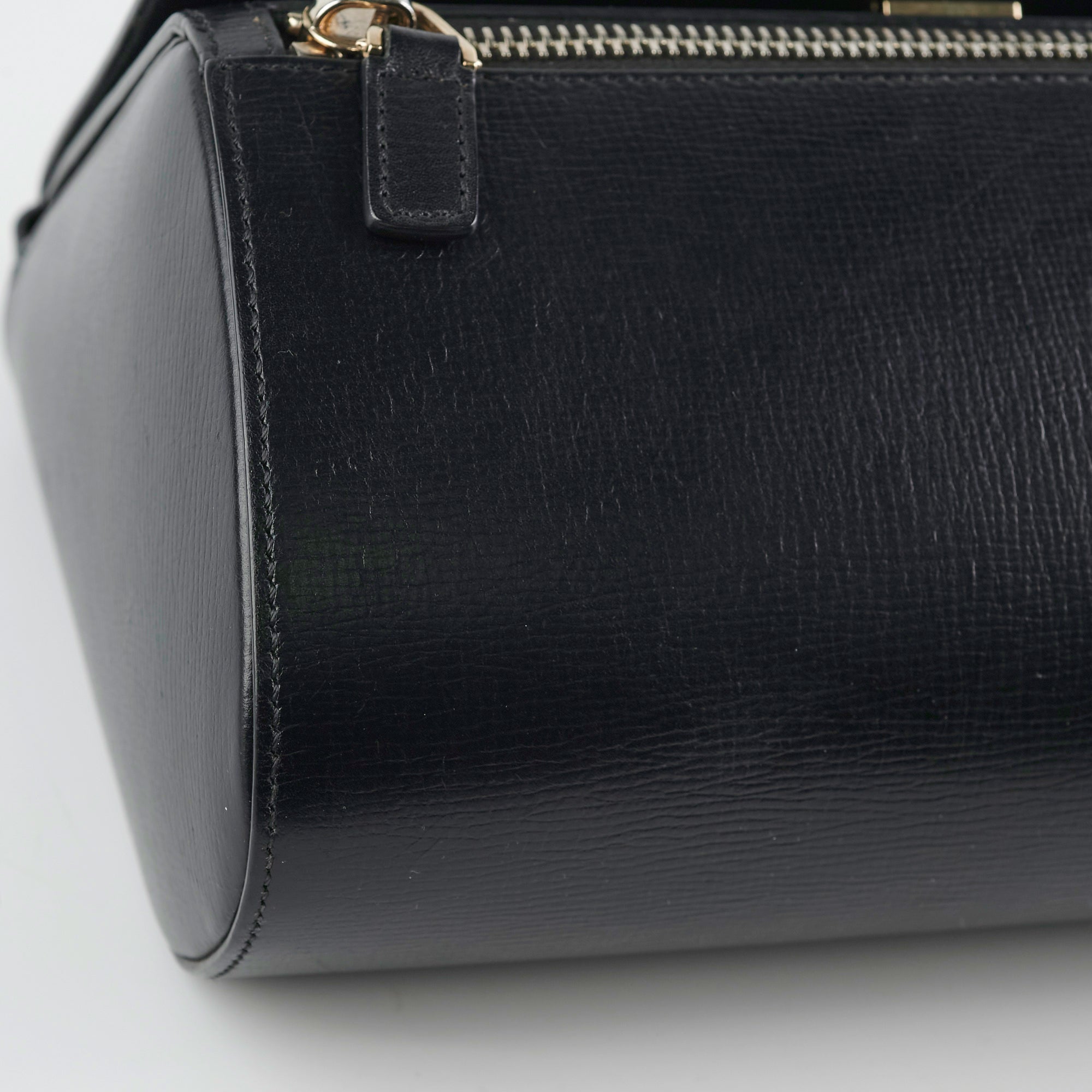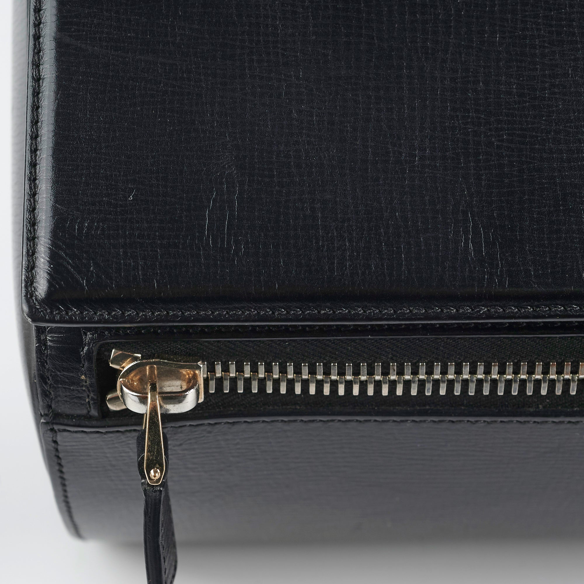 Nail marks wear throughout,tarnishing on hardware, corner free from rubbing or scuffing