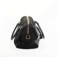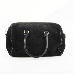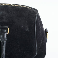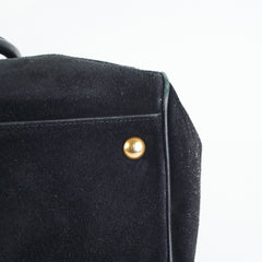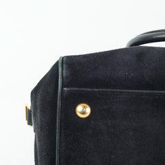 Light signs of wear throughout, rubbing on corners and piping of bag, pilling on suede exterior and interior, light stain on interior, tarnishing and hairline scatches on hardware, softened structure