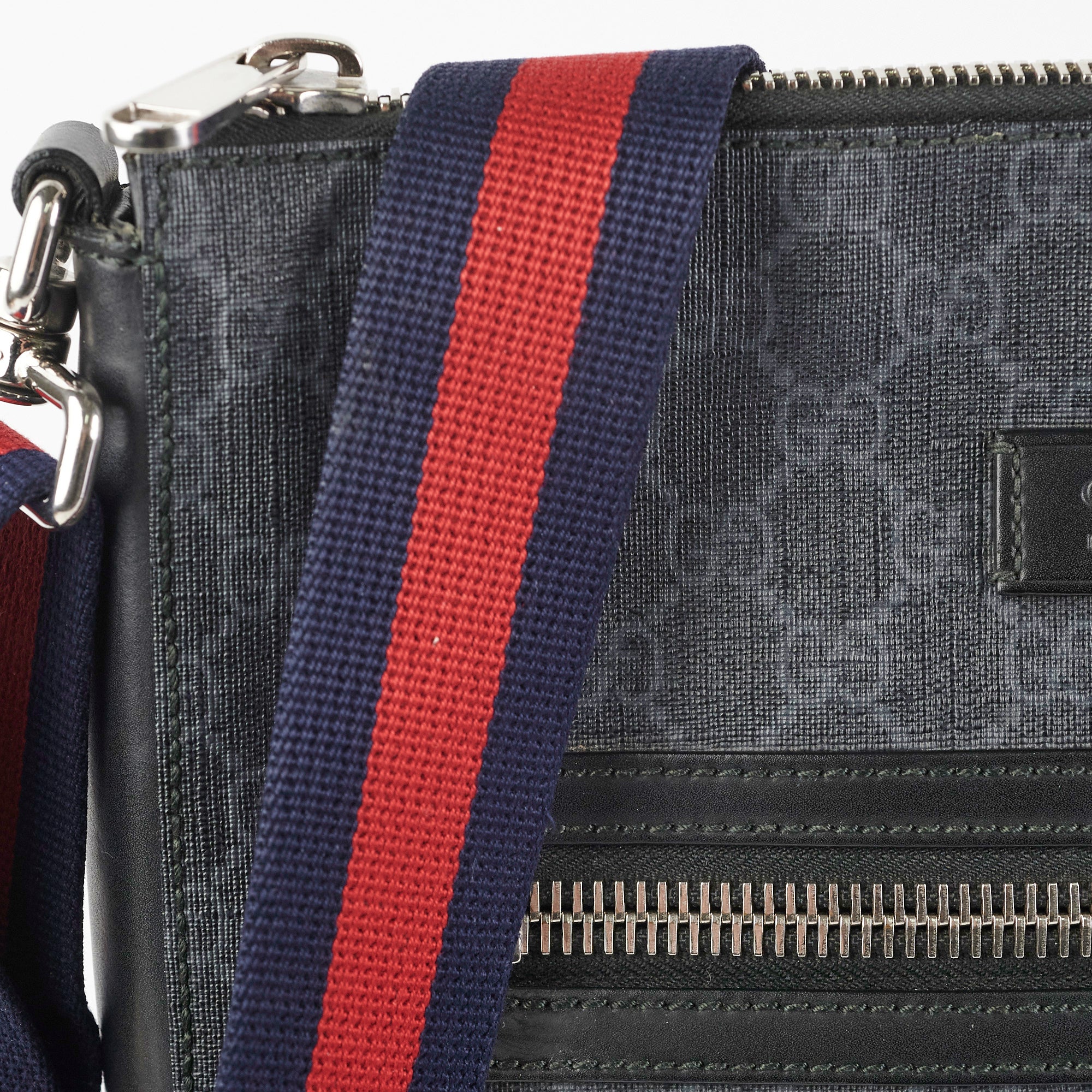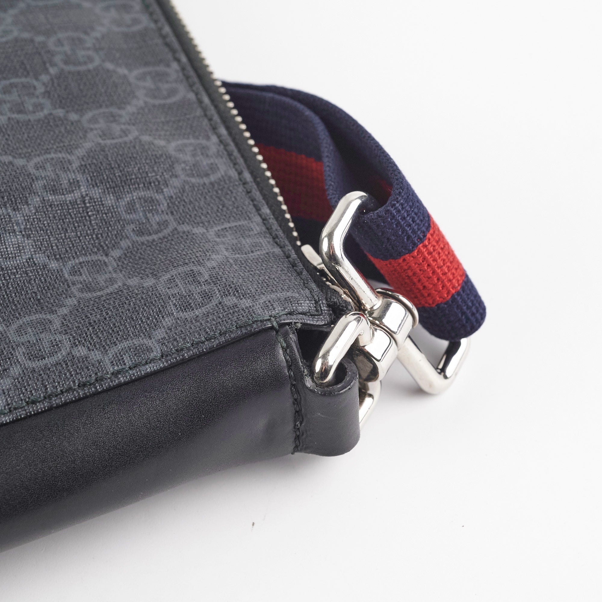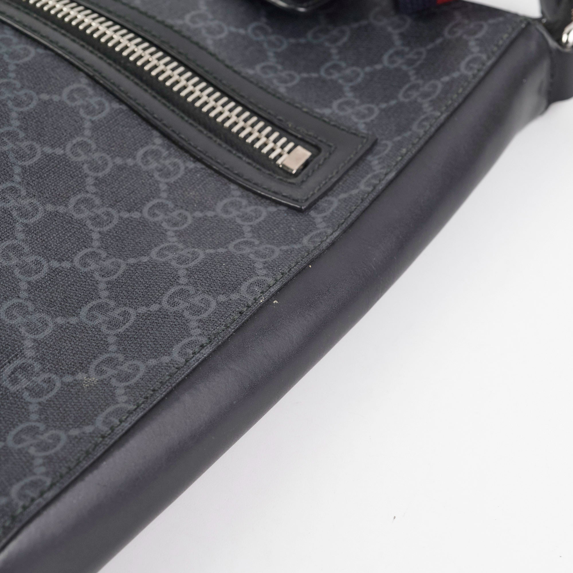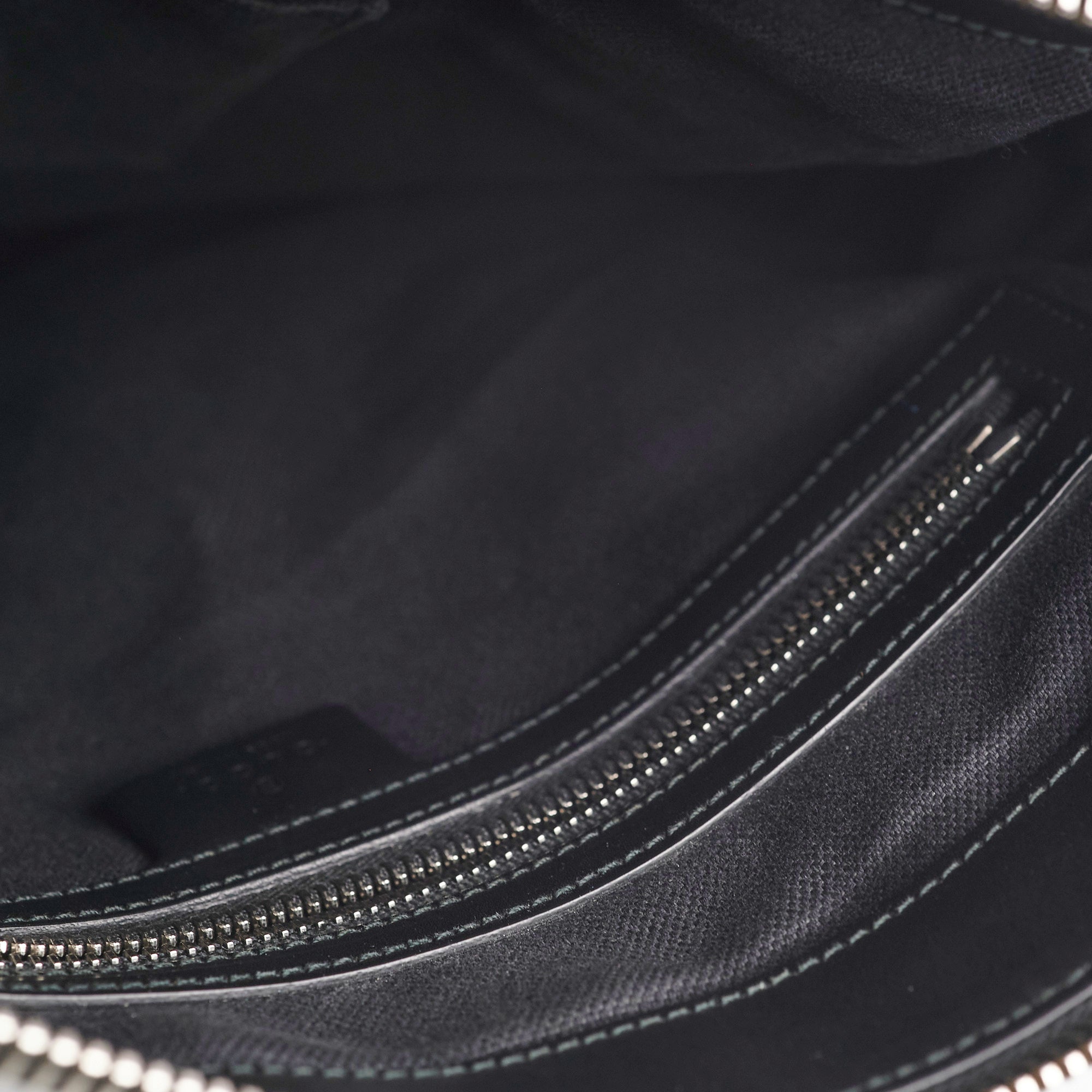 light hairline scratches and tarnishing on hardware, light nail marks on sides and strap