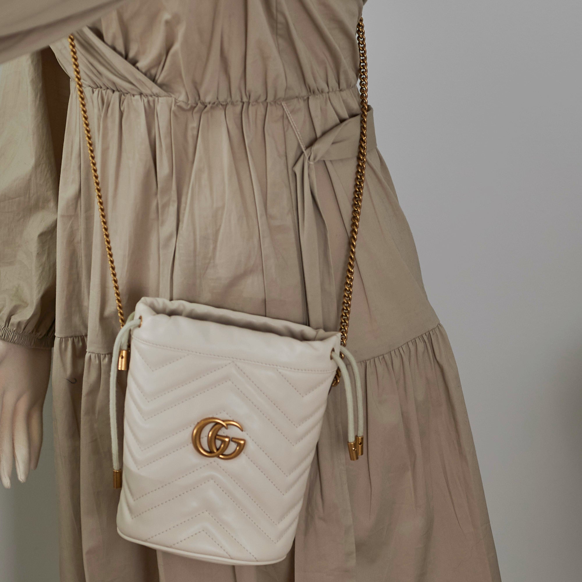 Gucci GG Marmont Mini Bucket Bag White HOLD AL
