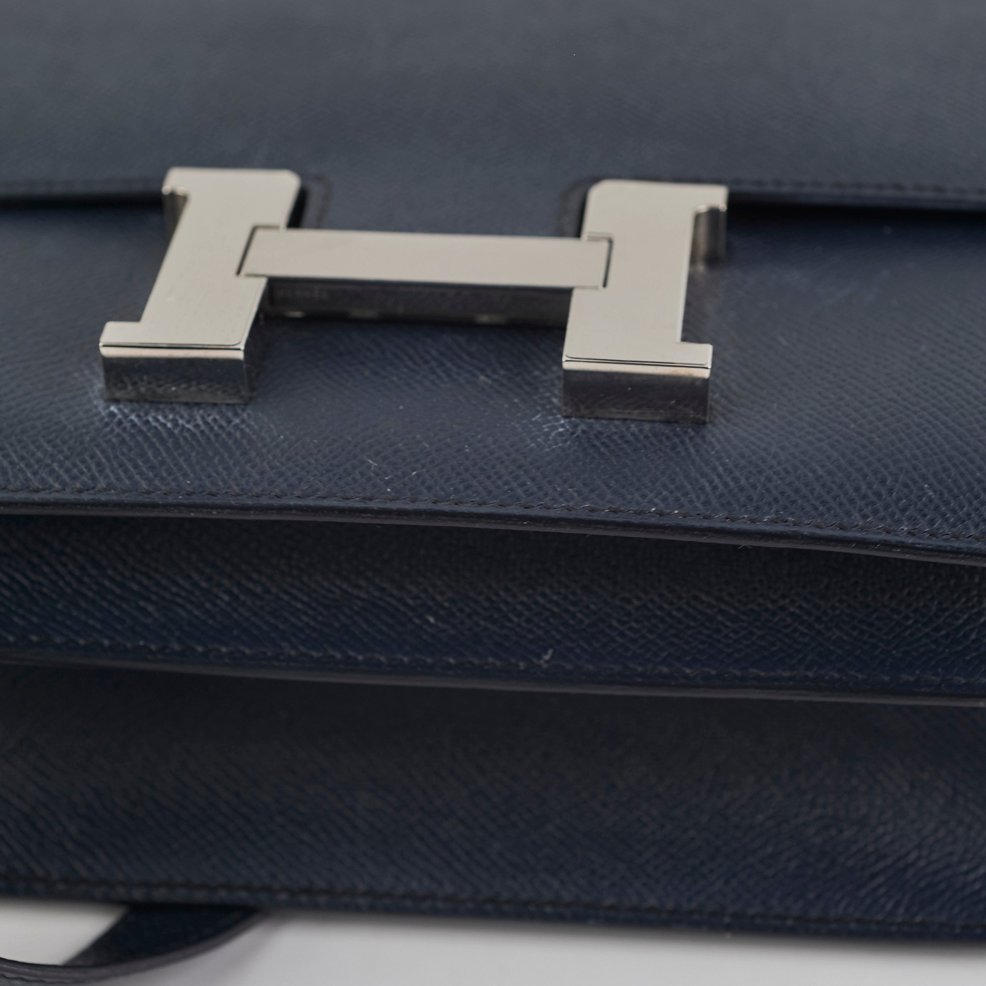 Signs of wear on hardware, minor nail marks under the flap, structure intact, clean inside and out