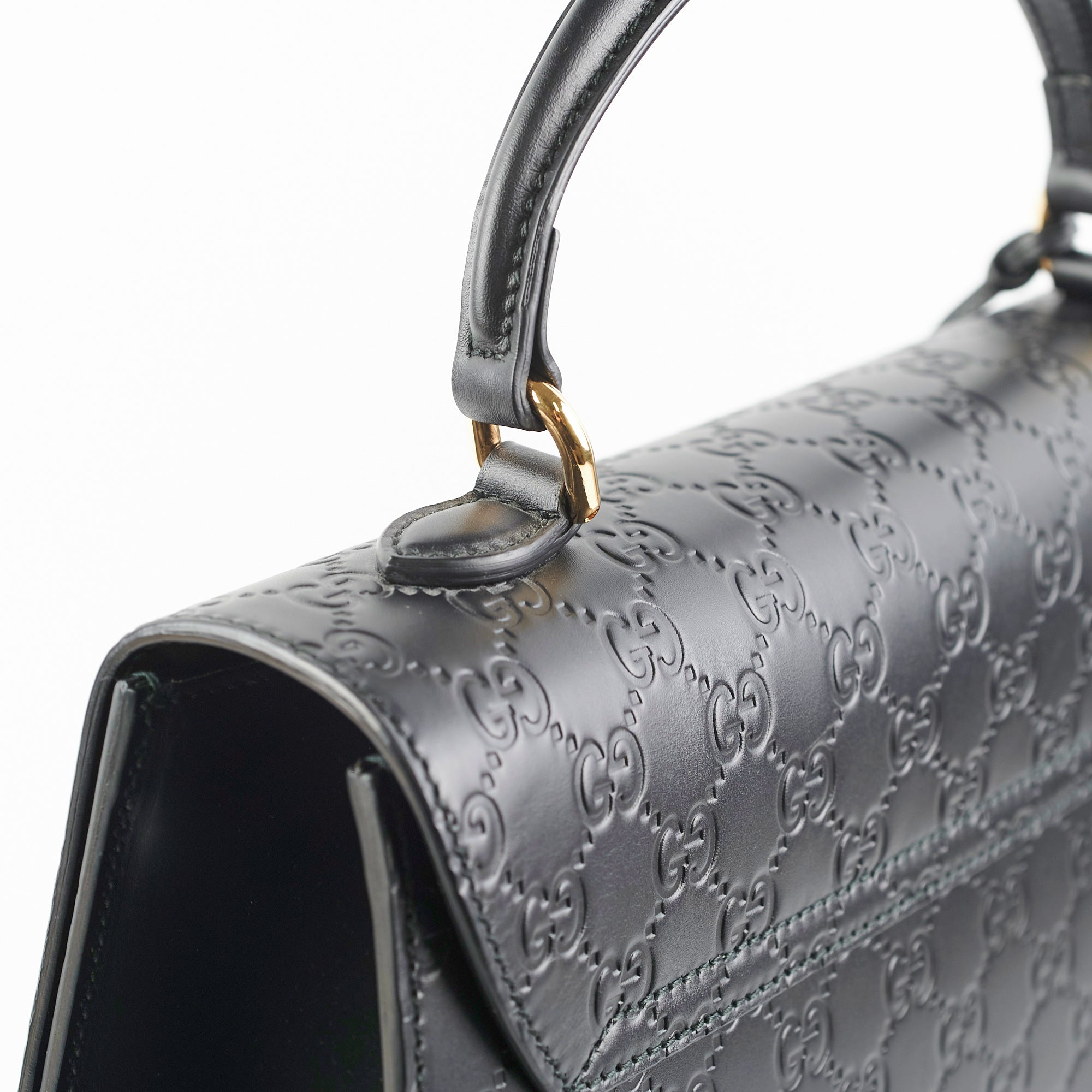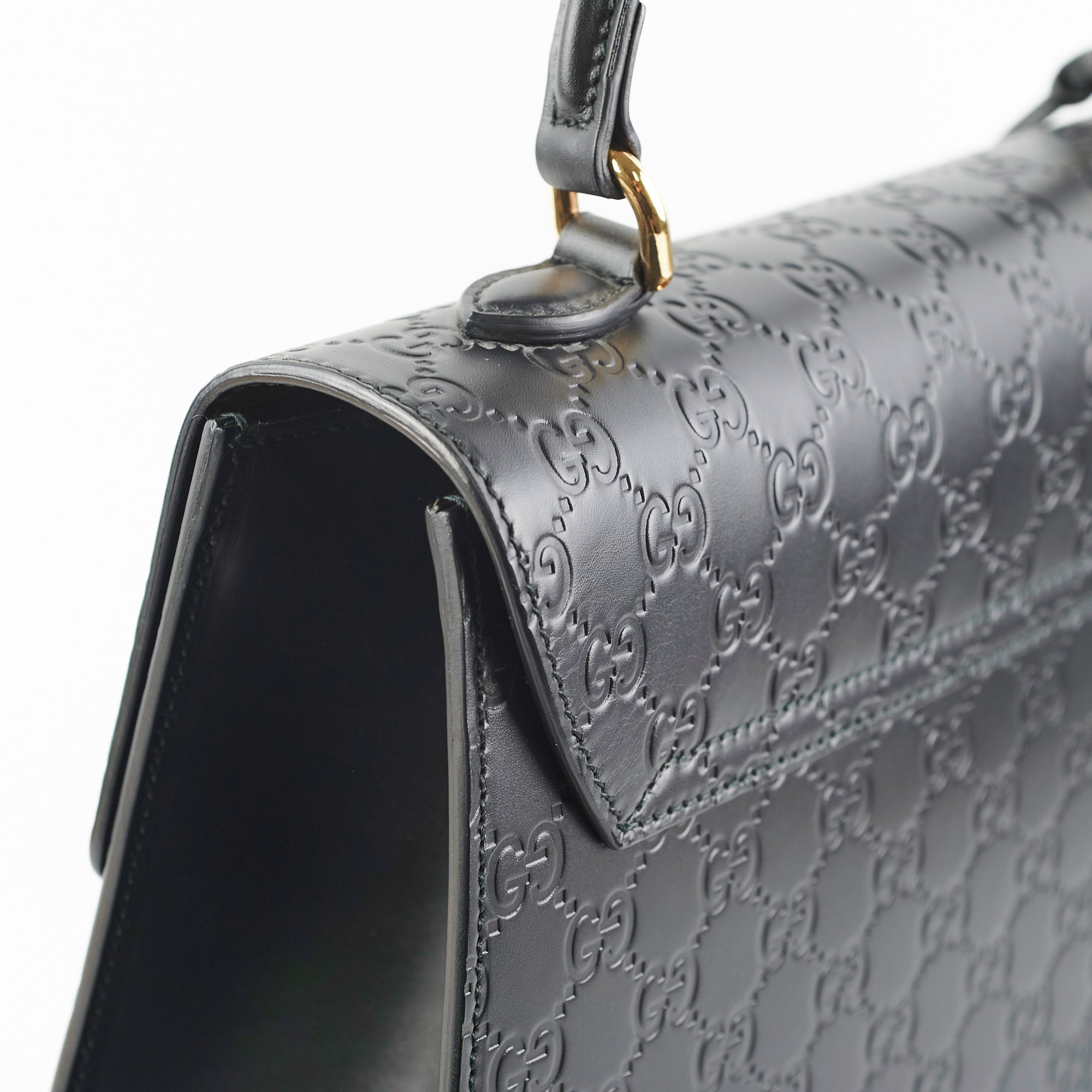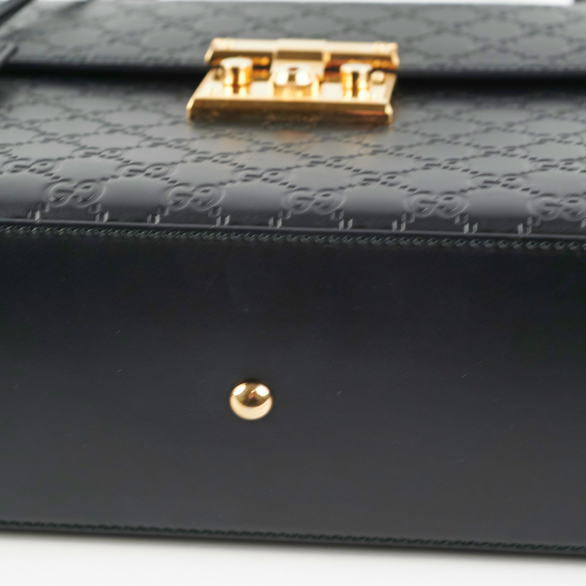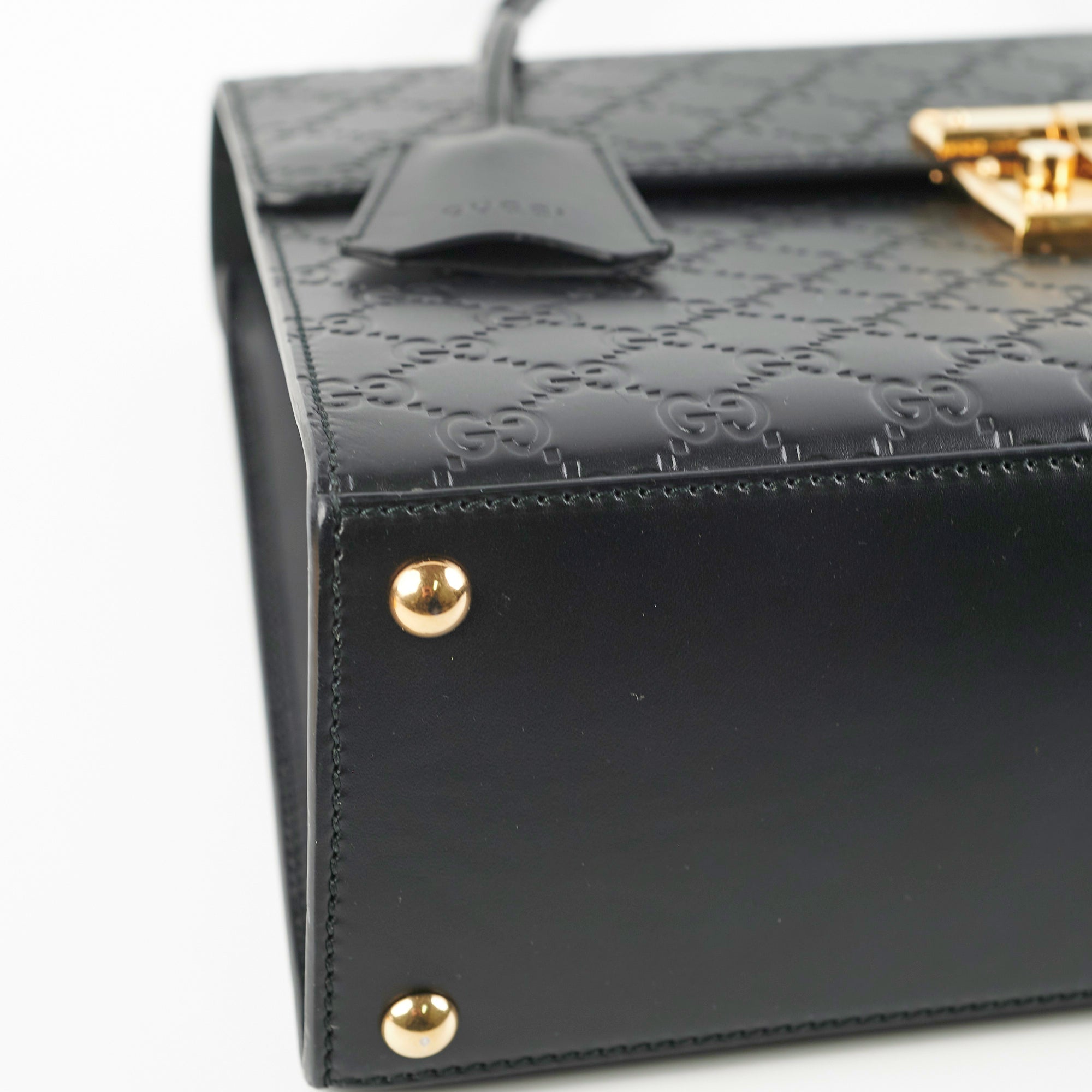 Light nail marks on leather, hairline scratches on hardware
