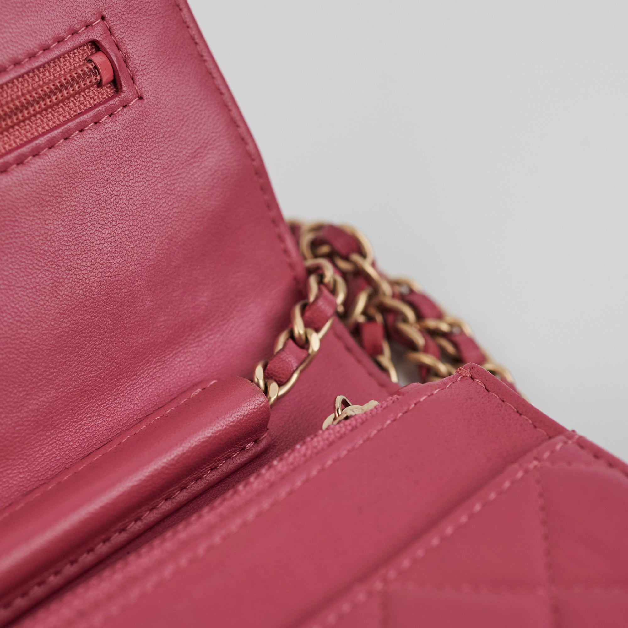 Indents under the flap from zipper (unavoidable), base slightly soften, minor nail marks exterior, rubbing on corners, clean inside and out