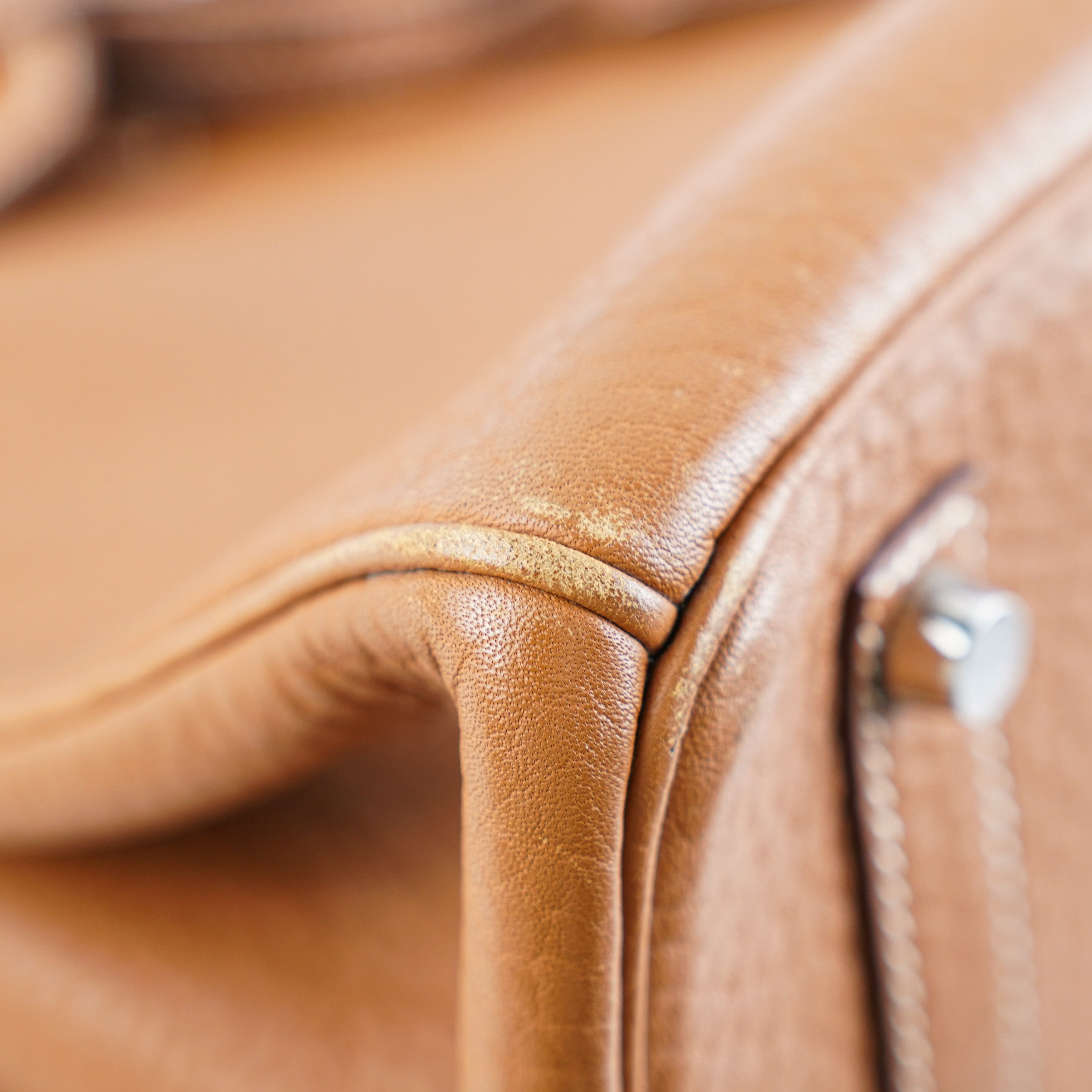 Rubbing on corners and edge, hairline scratches on hardware, nail marks and white colour mark interior.