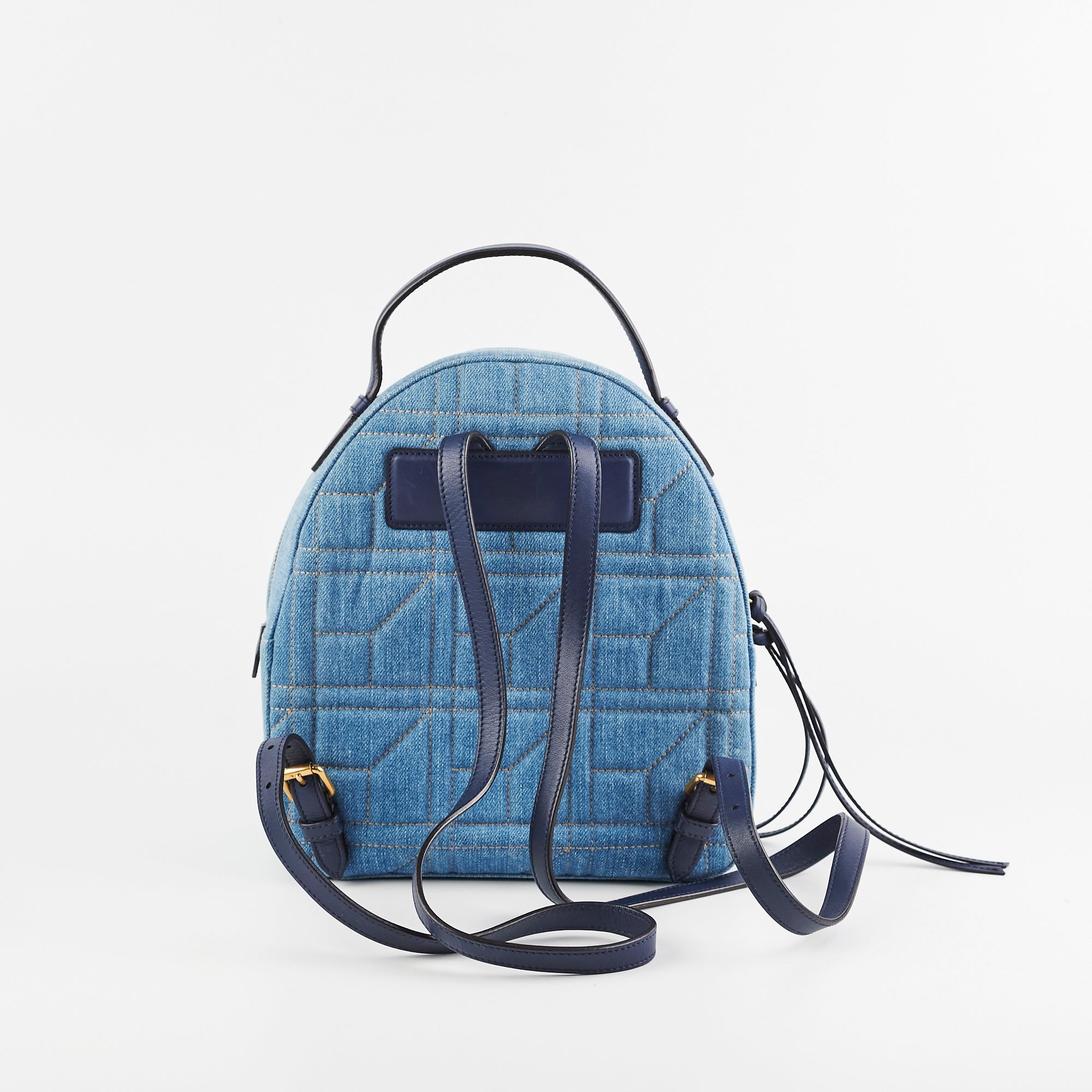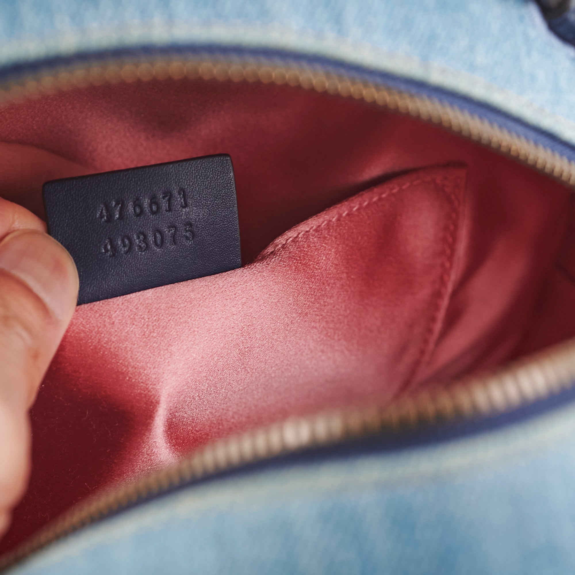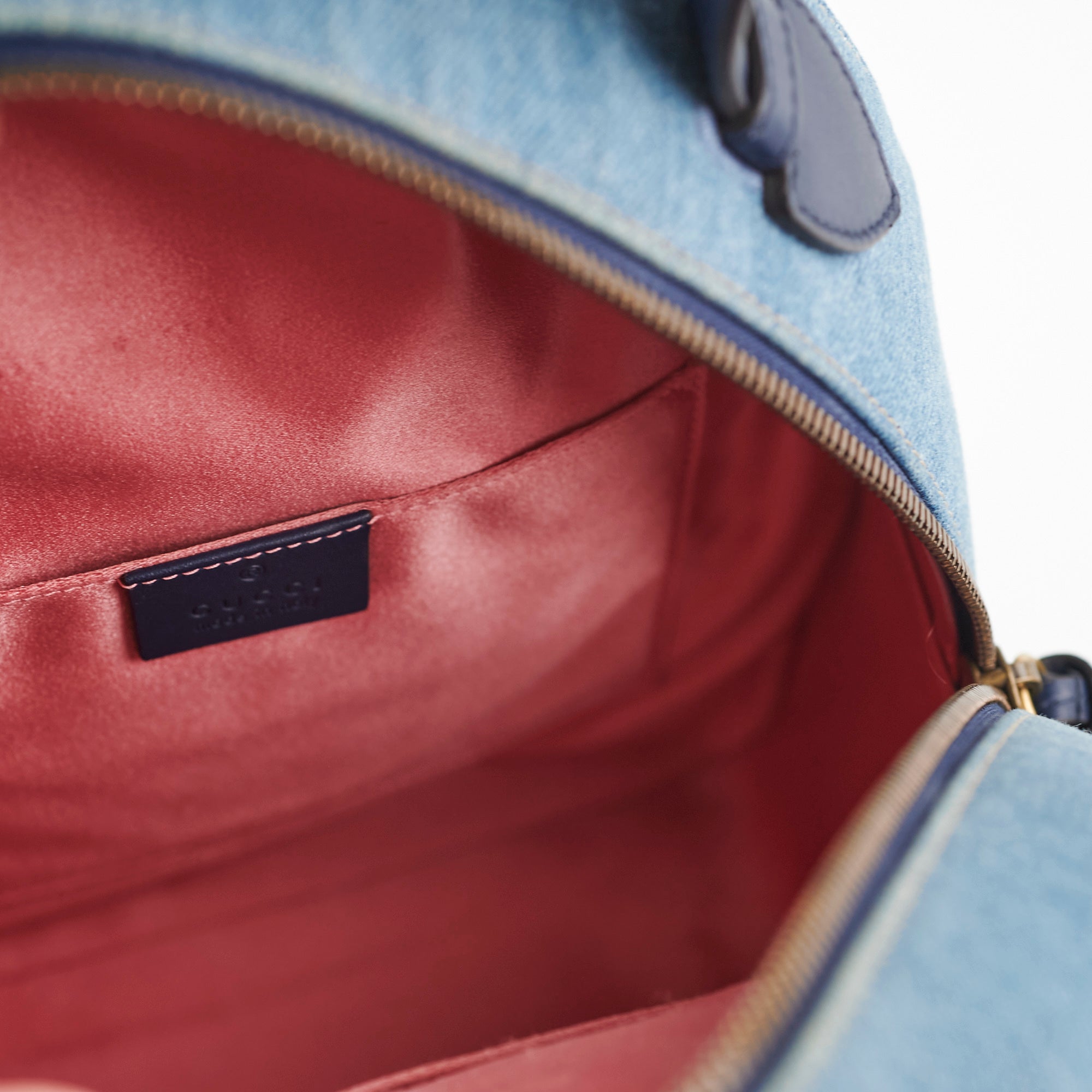 Light creasing on top handle, minor discolouration around zipper and corners, light nail marks on back and strap