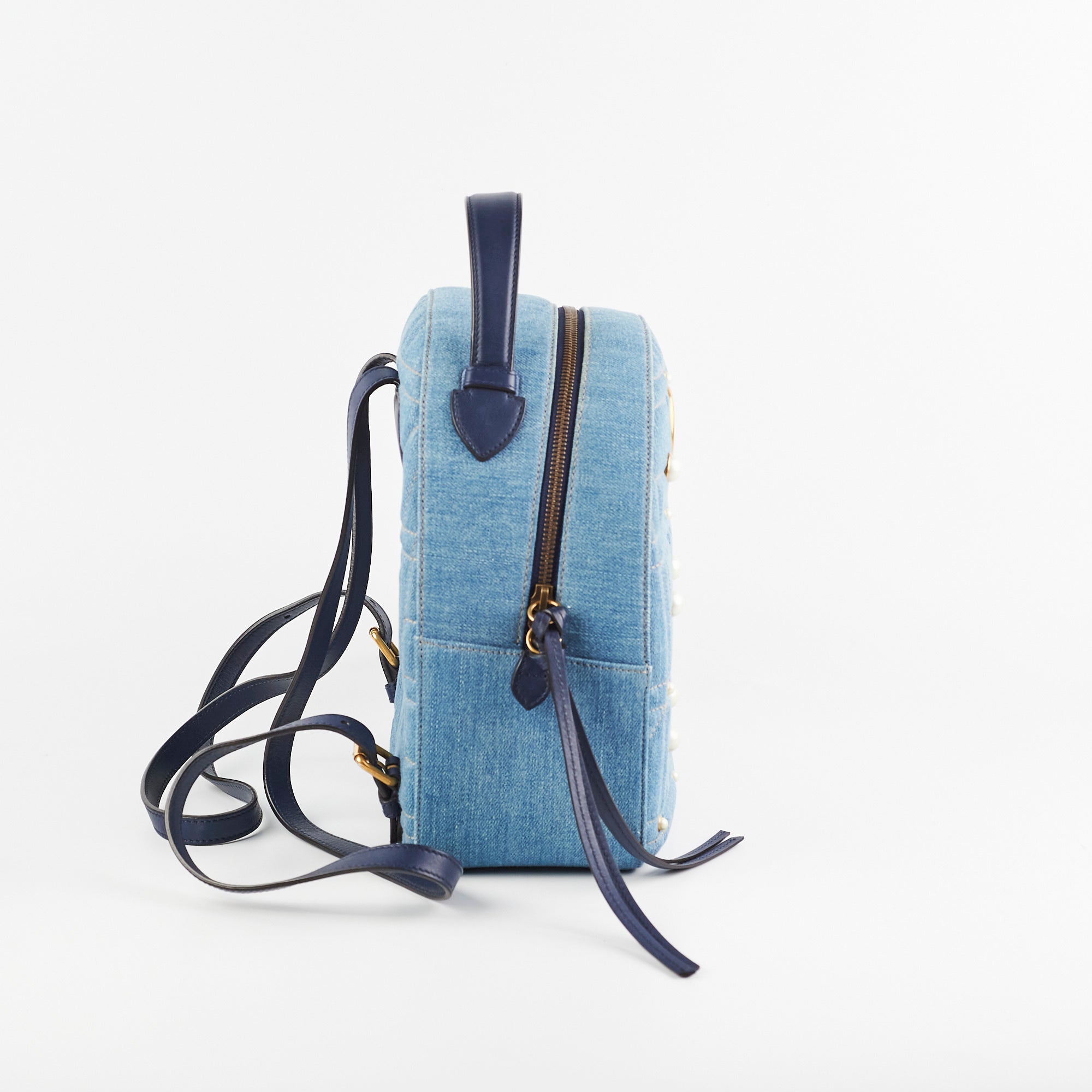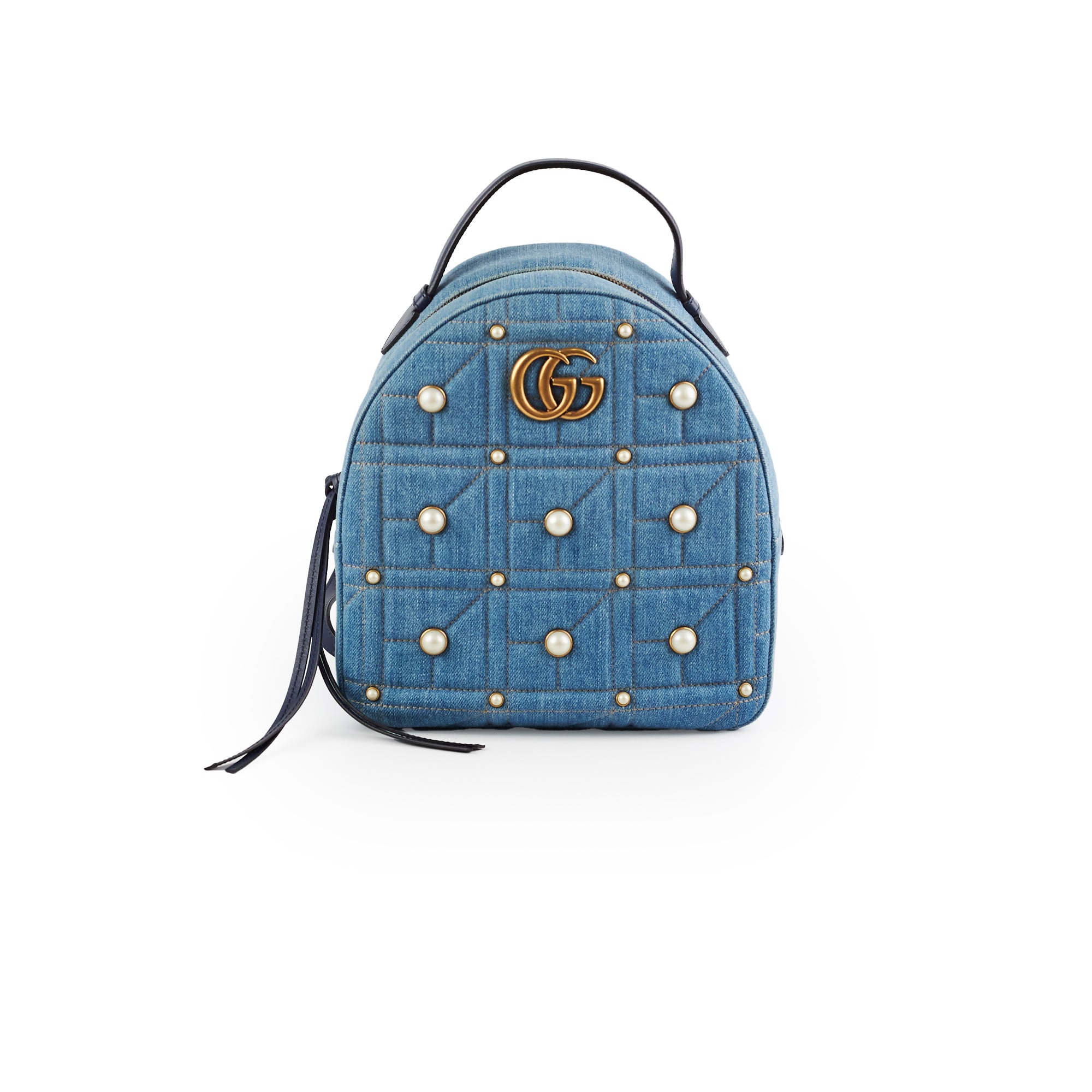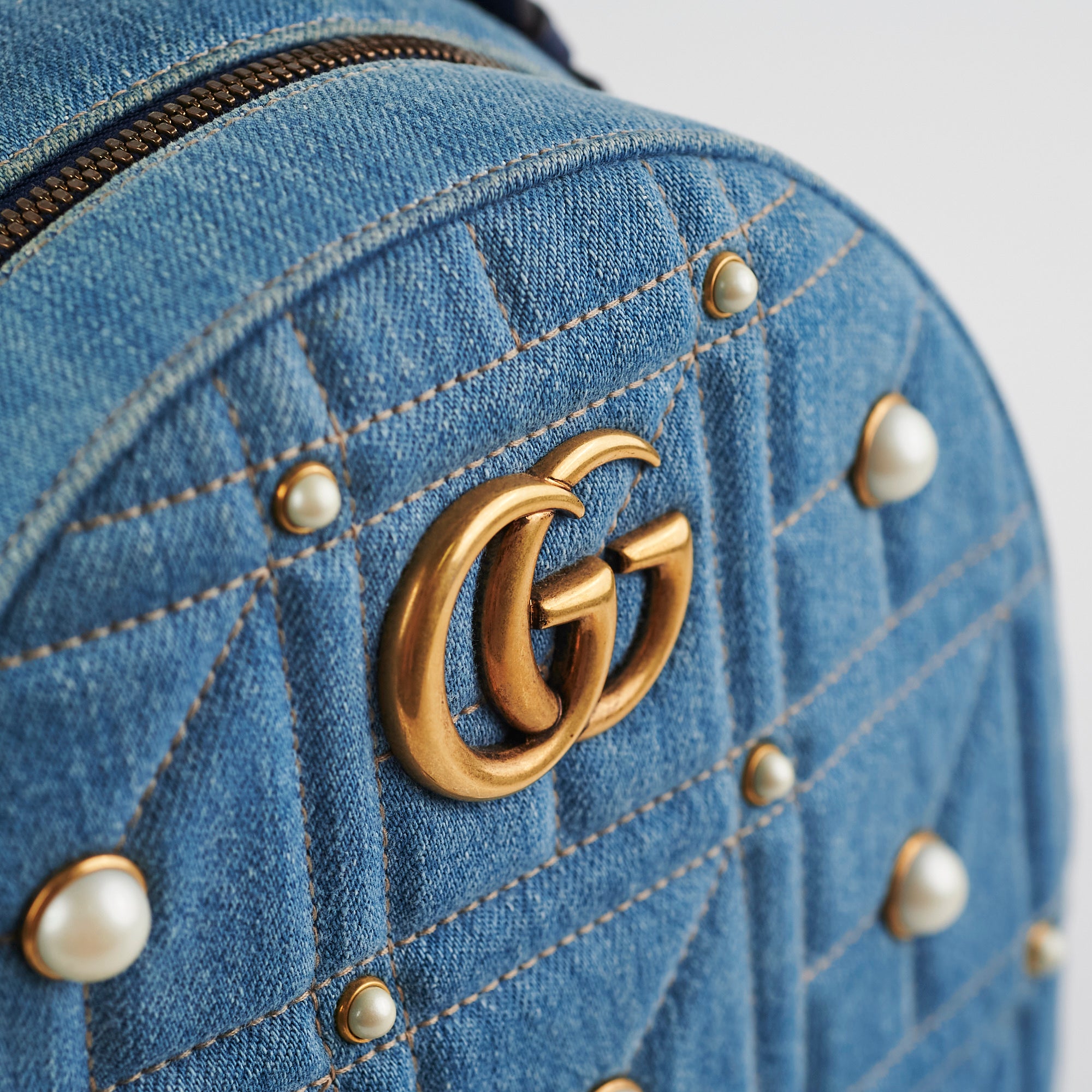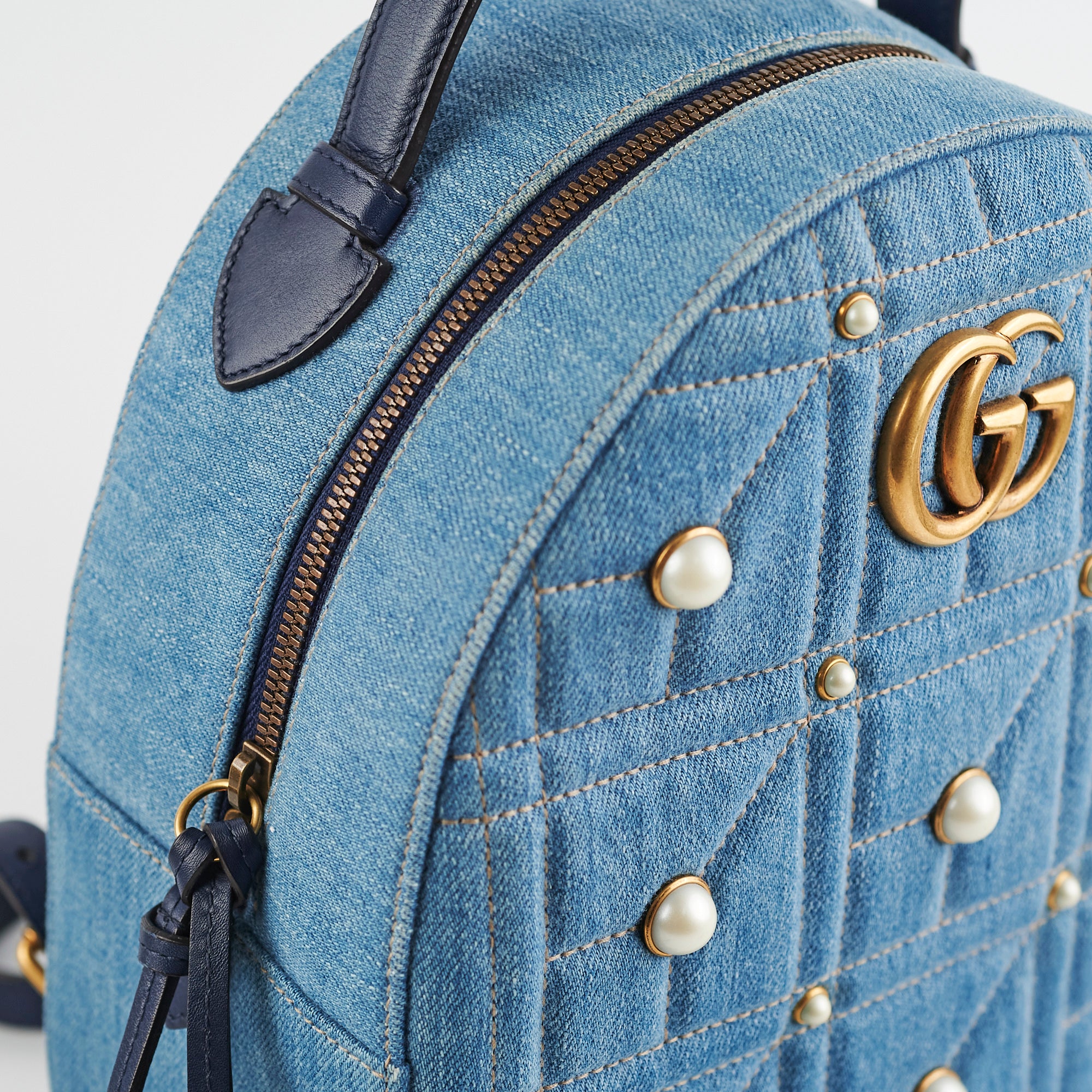 Light creasing on top handle, minor discolouration around zipper and corners, light nail marks on back and strap