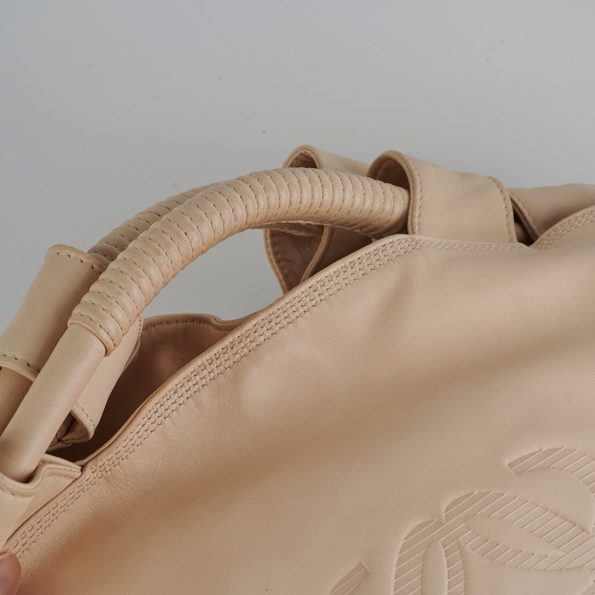 Light rubbing on edges, sides and corners, light marks and creasing throughout leather, light scratches on hardware