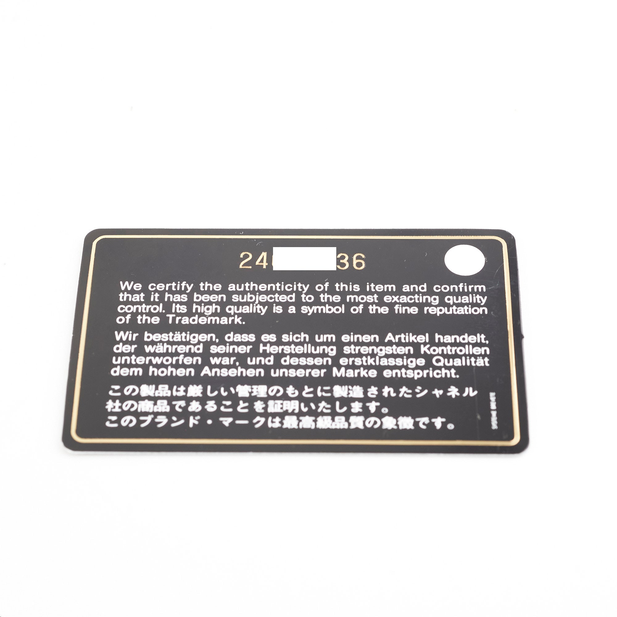 Authenticity Card, Dustbag