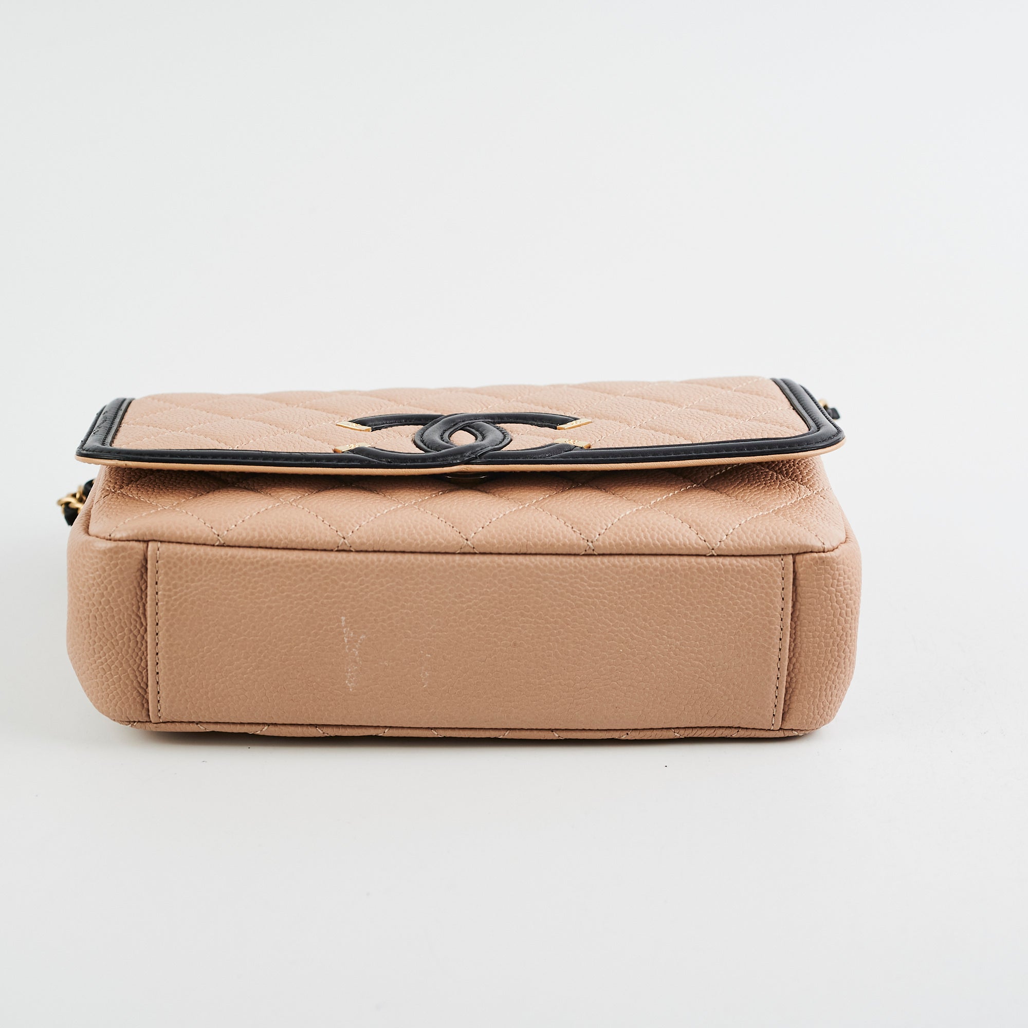 Light tarnishing and scratches on hardware, light nail marks under flap, minor marks on interior and base
