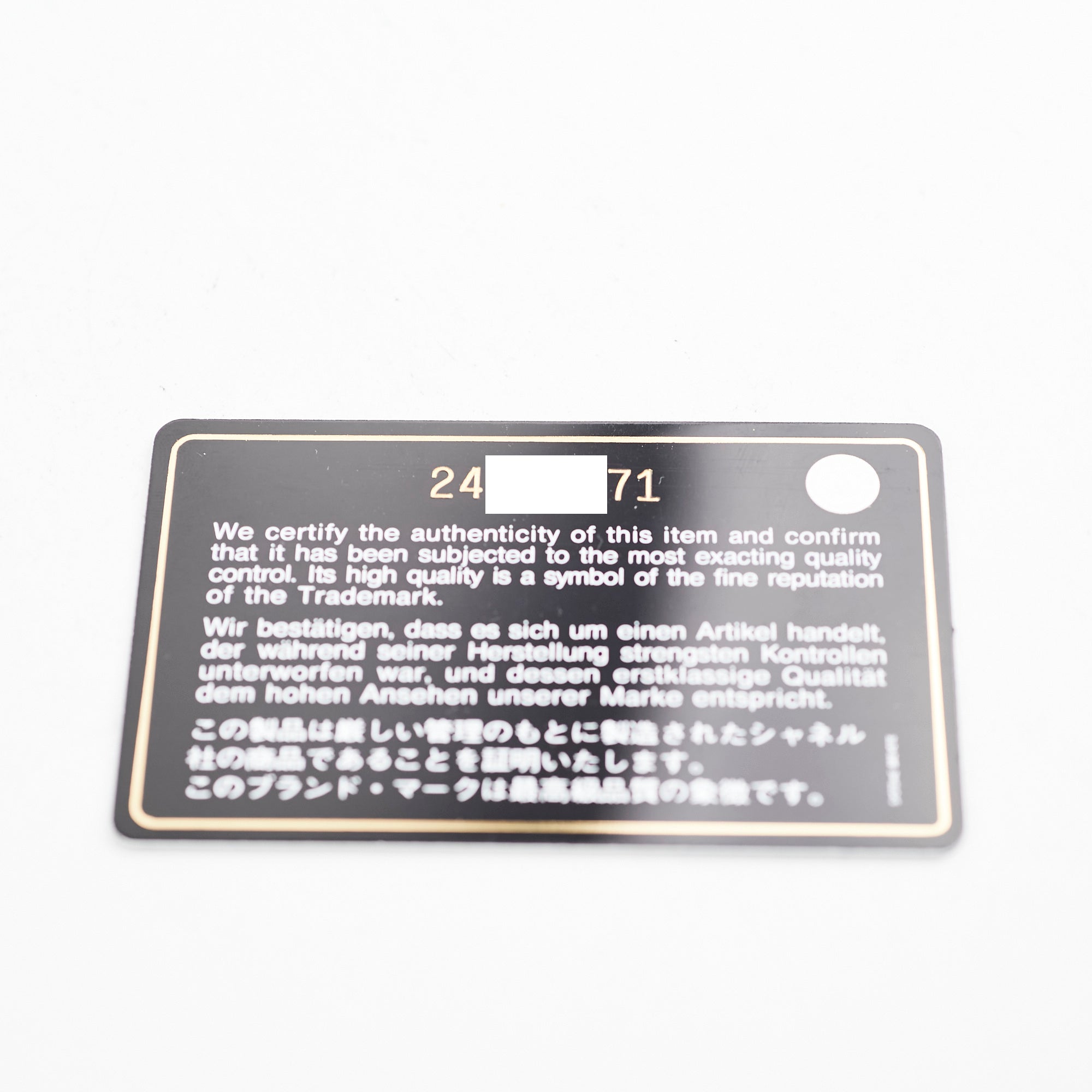 Authenticity Card, Dustbag, Receipt