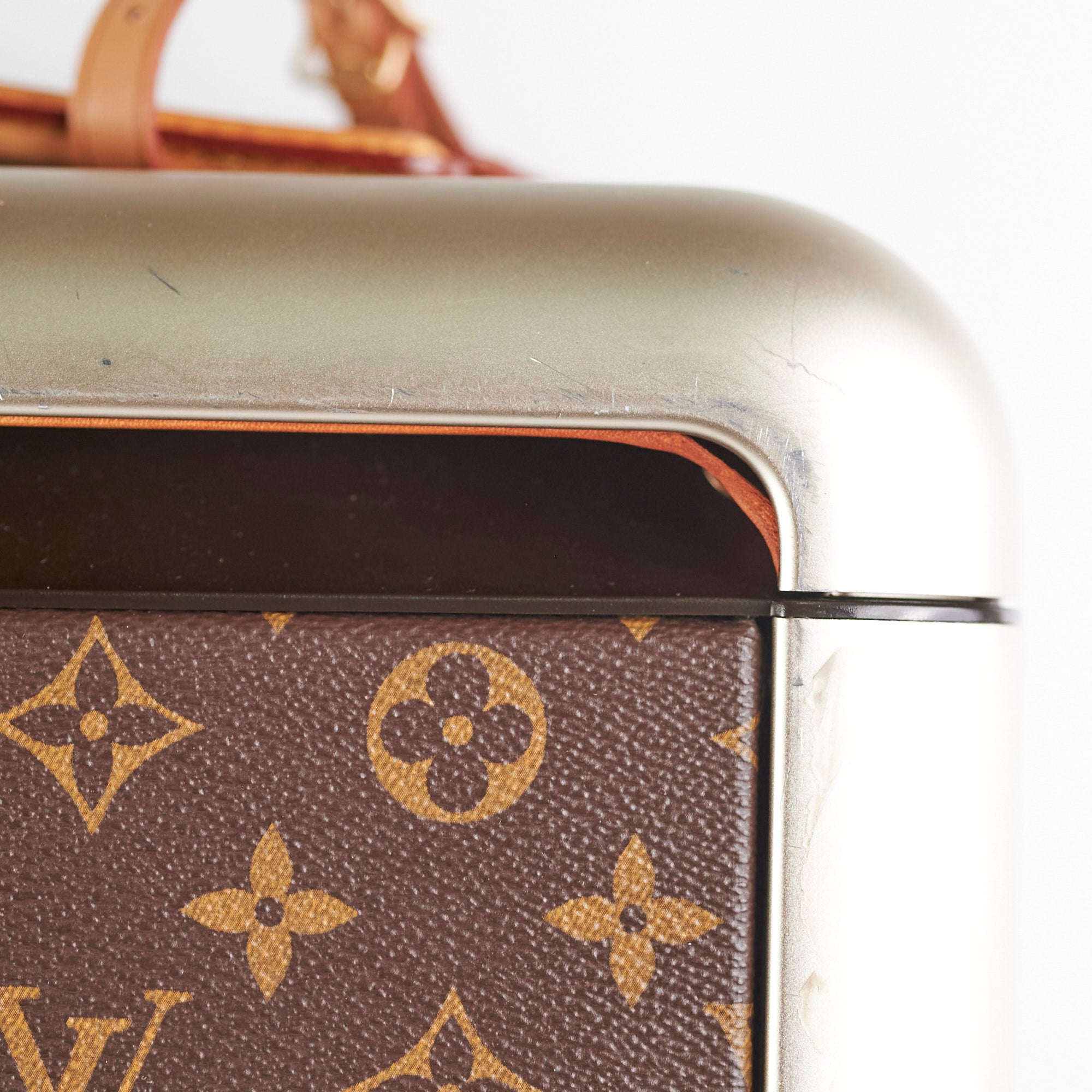 Rubbing on corners, tarnishing and sign of wear on hardware, Water marks on the vacheta leather