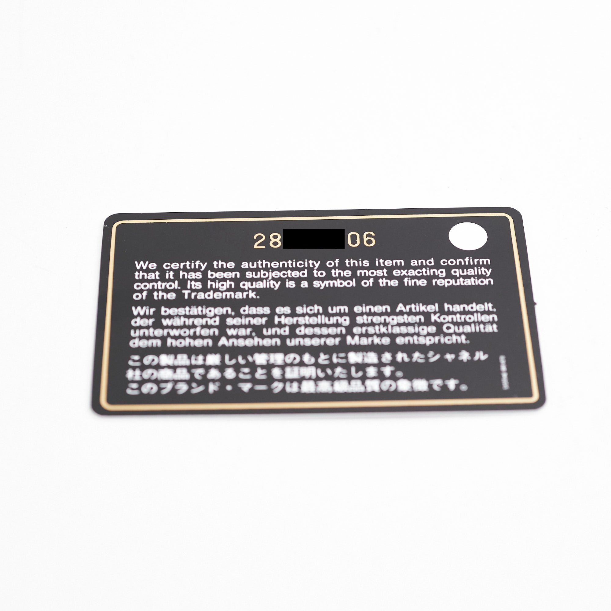 Dustbag. Box, Authenticity Card, Swing tag