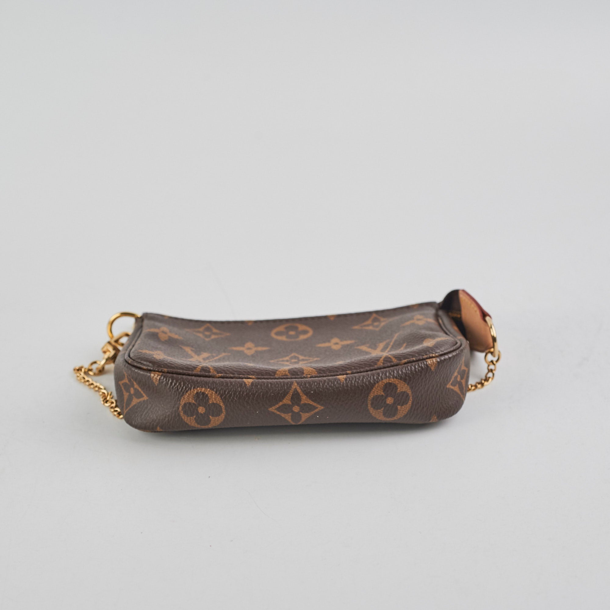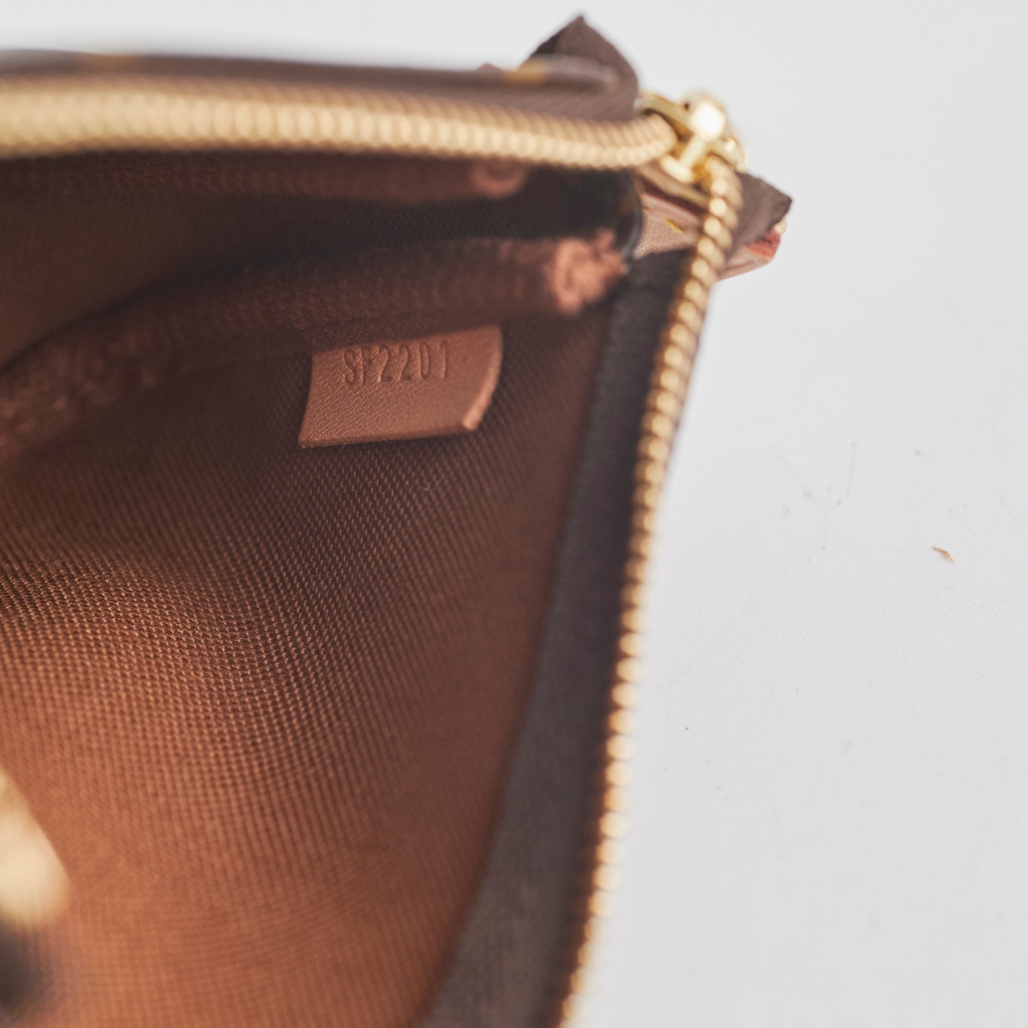 Light mark on leather tab, hairline scratches on hardware