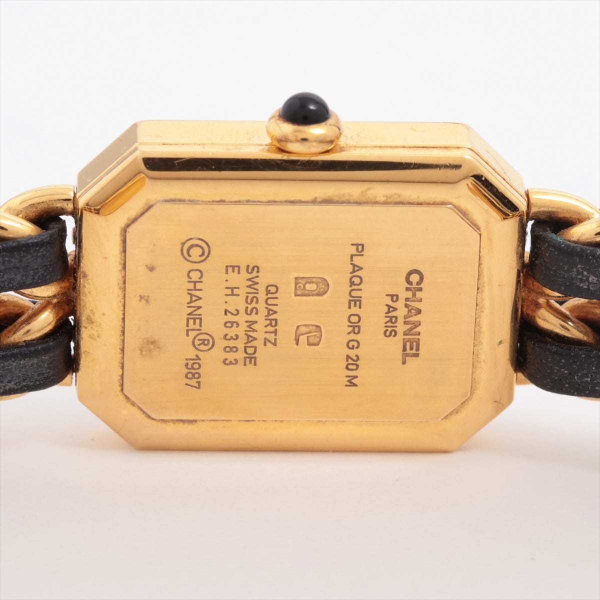 Light signs of wear throughout, light hairline scratches, light tarnishing on back, light rubbing on strap
