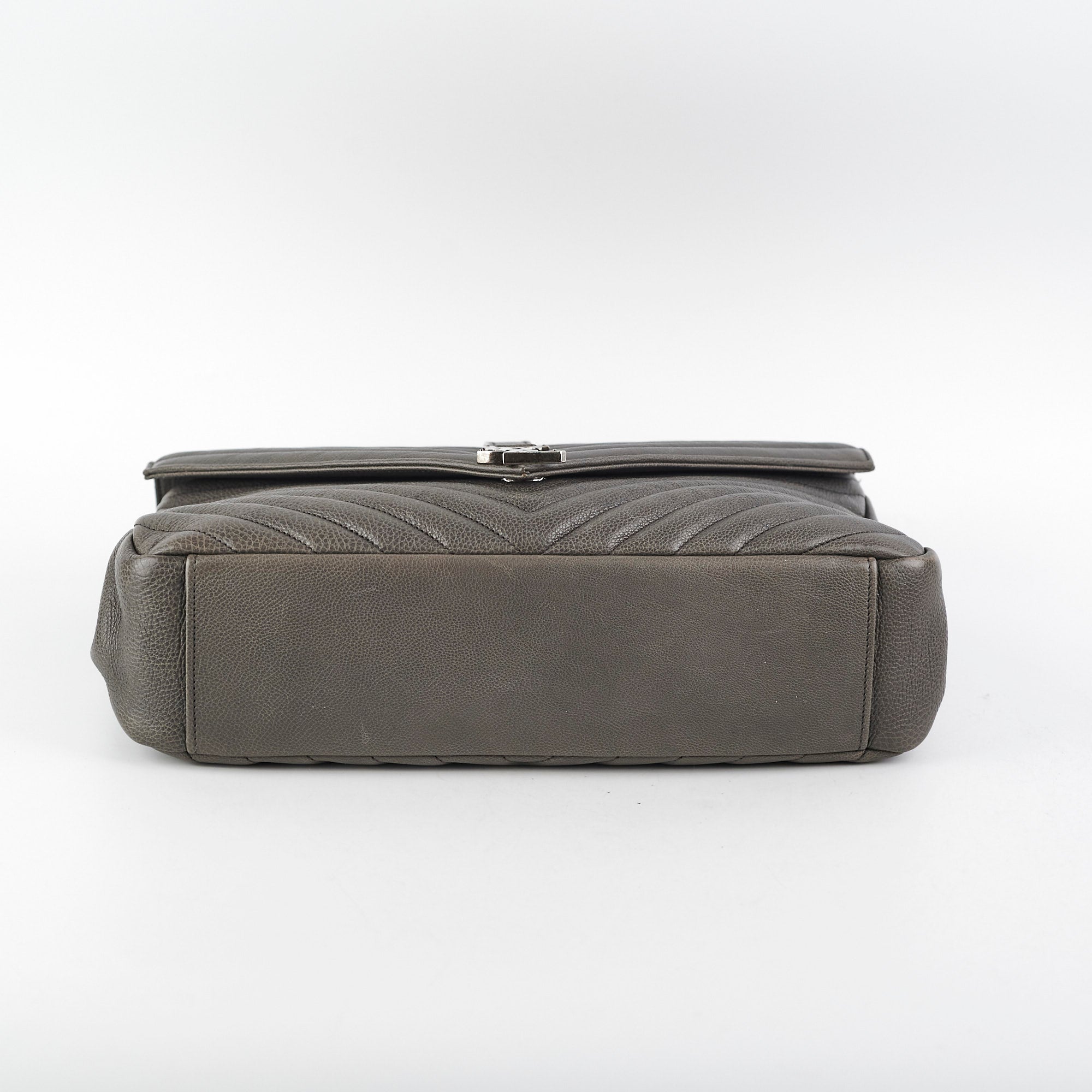 Slightly softened structure, light rubbing on corners, light nail marks throughout leather, light hairline scratches and tarnishing on hardware