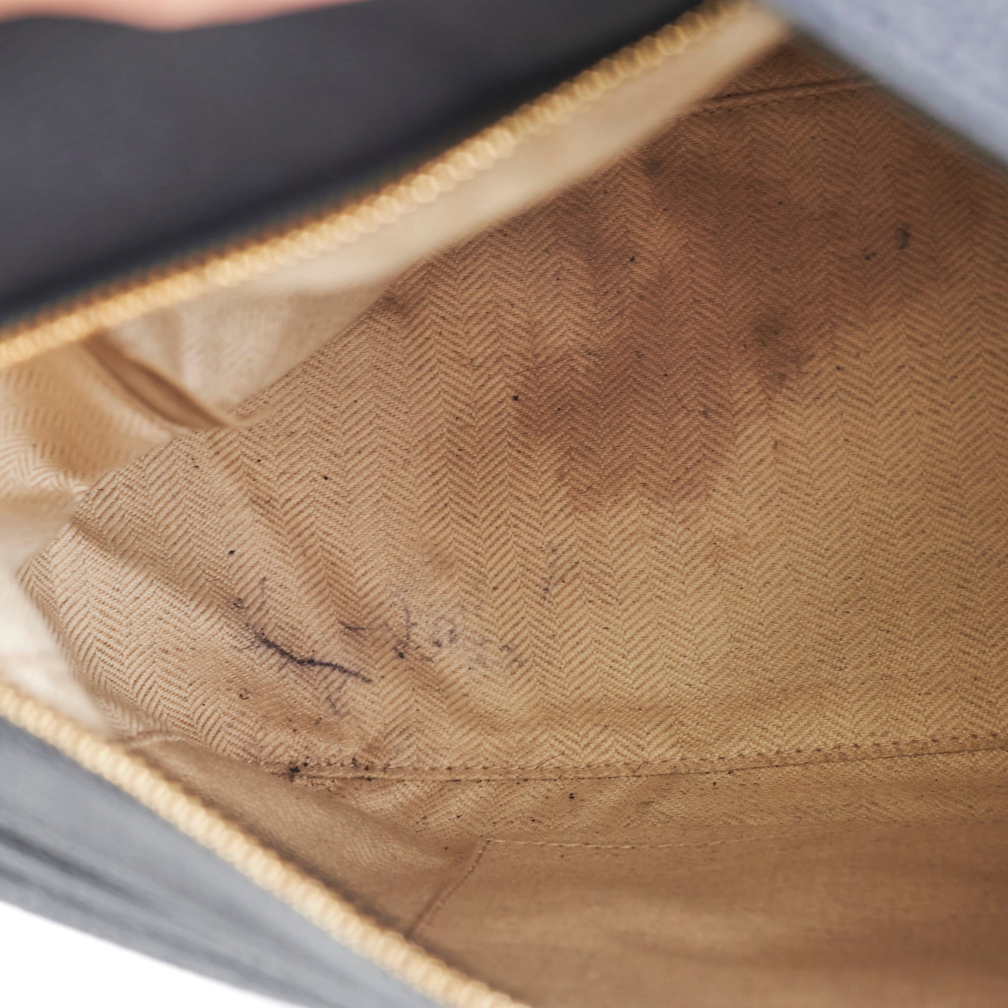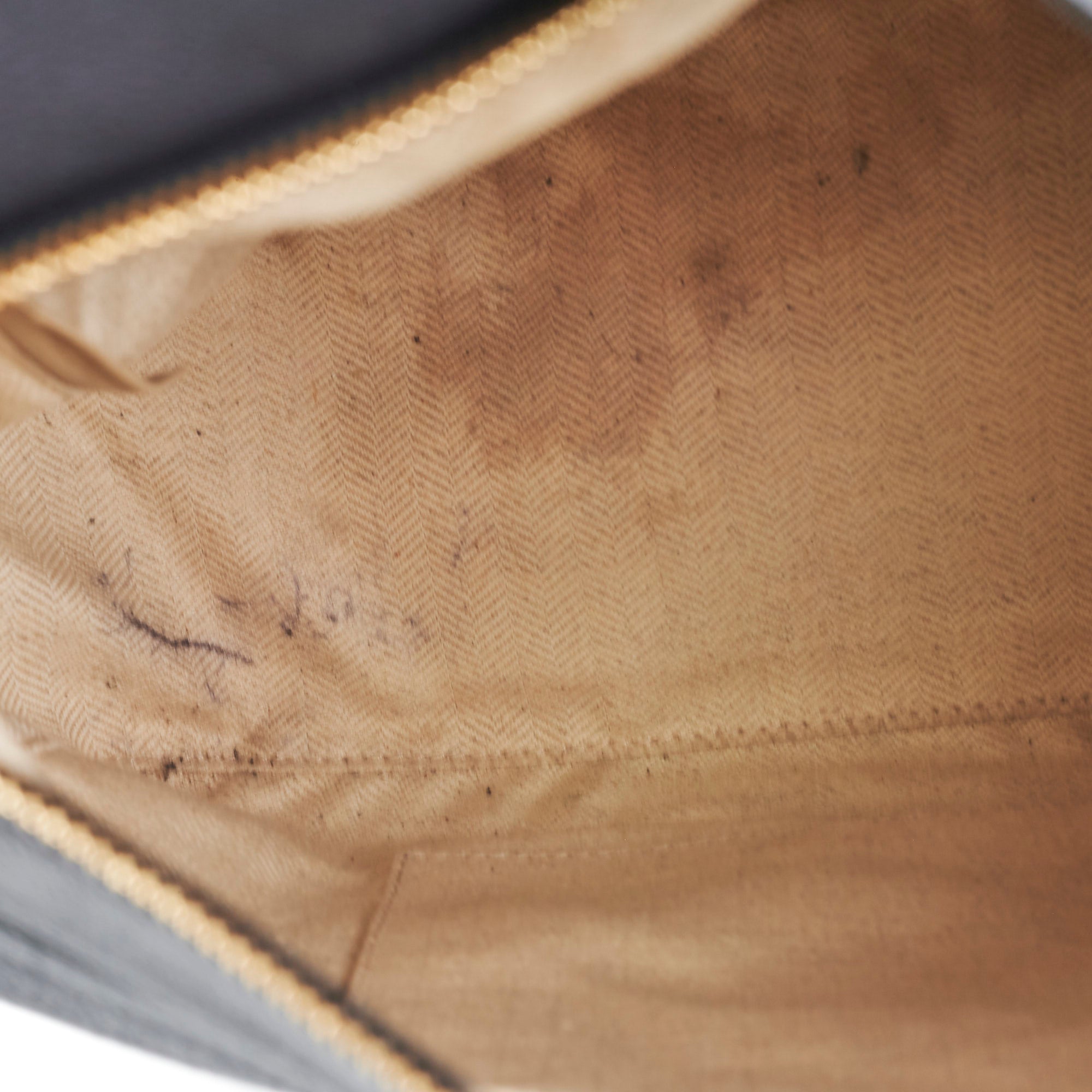 Gneral signs of wear throughout, light hairline scratches and tarnishing on hardware, light rubbing around corners and edges, light stains and marks on interior, light wear on top handle strap