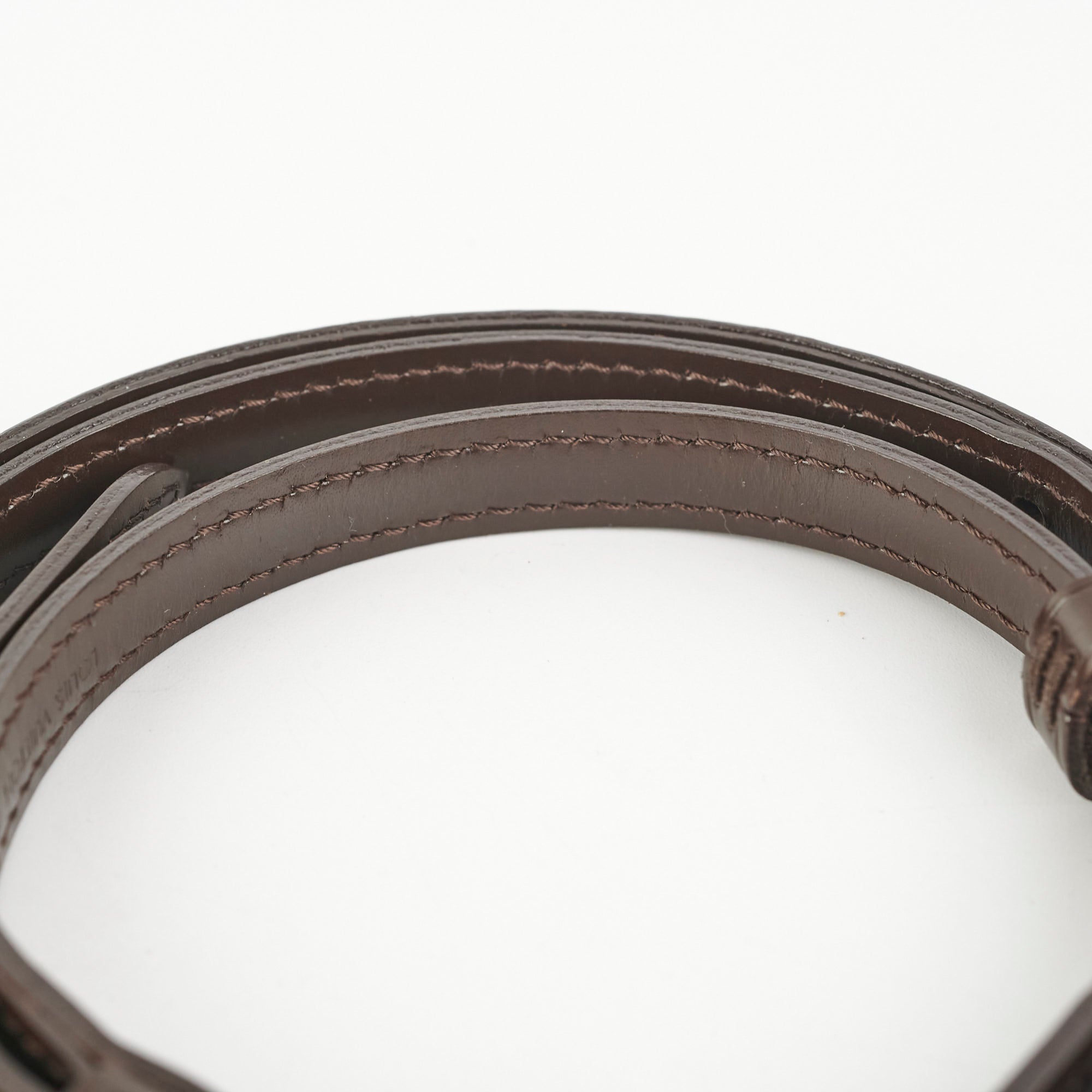 Light hairline scratches, tarnishing on hardware, minor creasing on leather