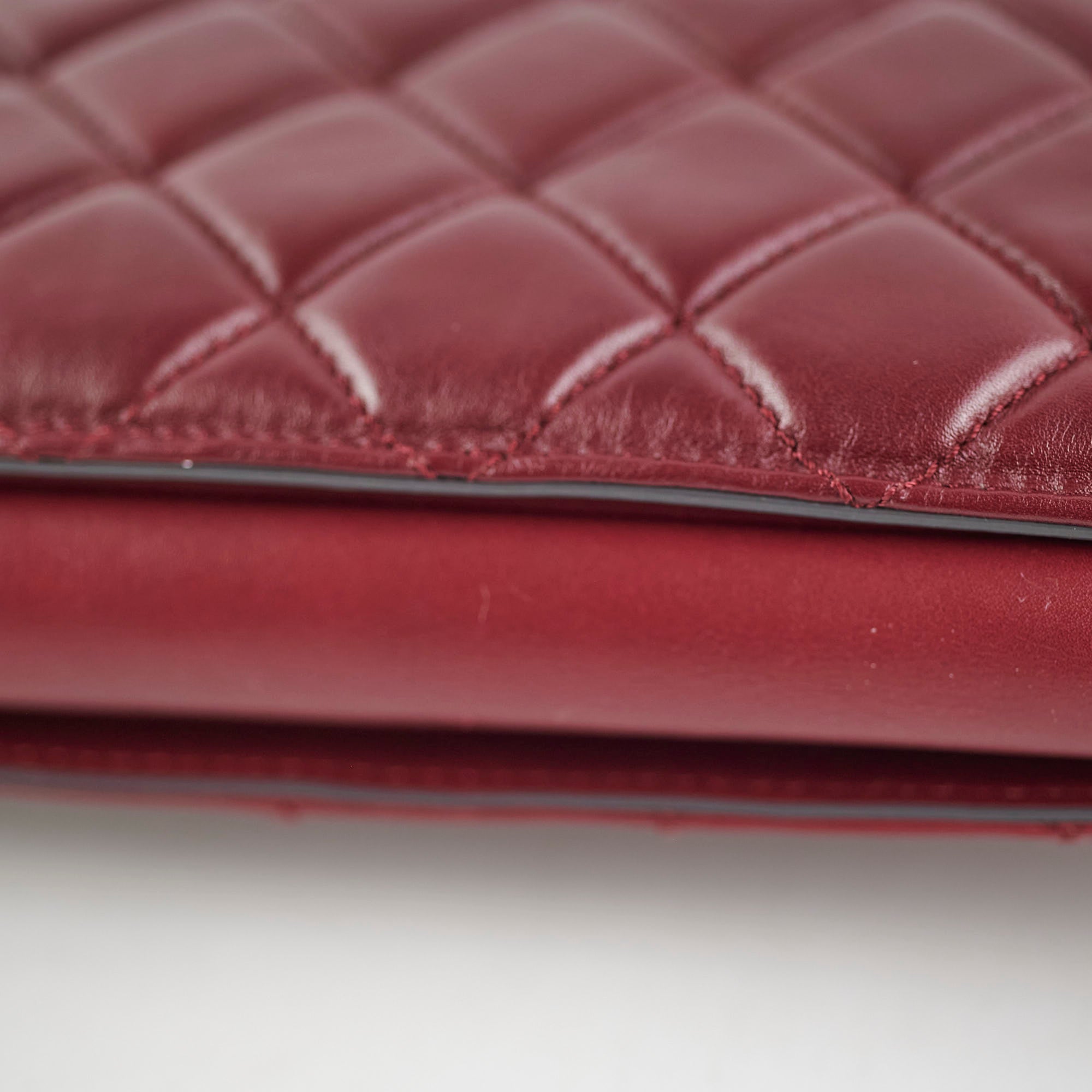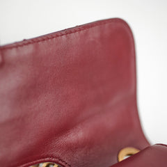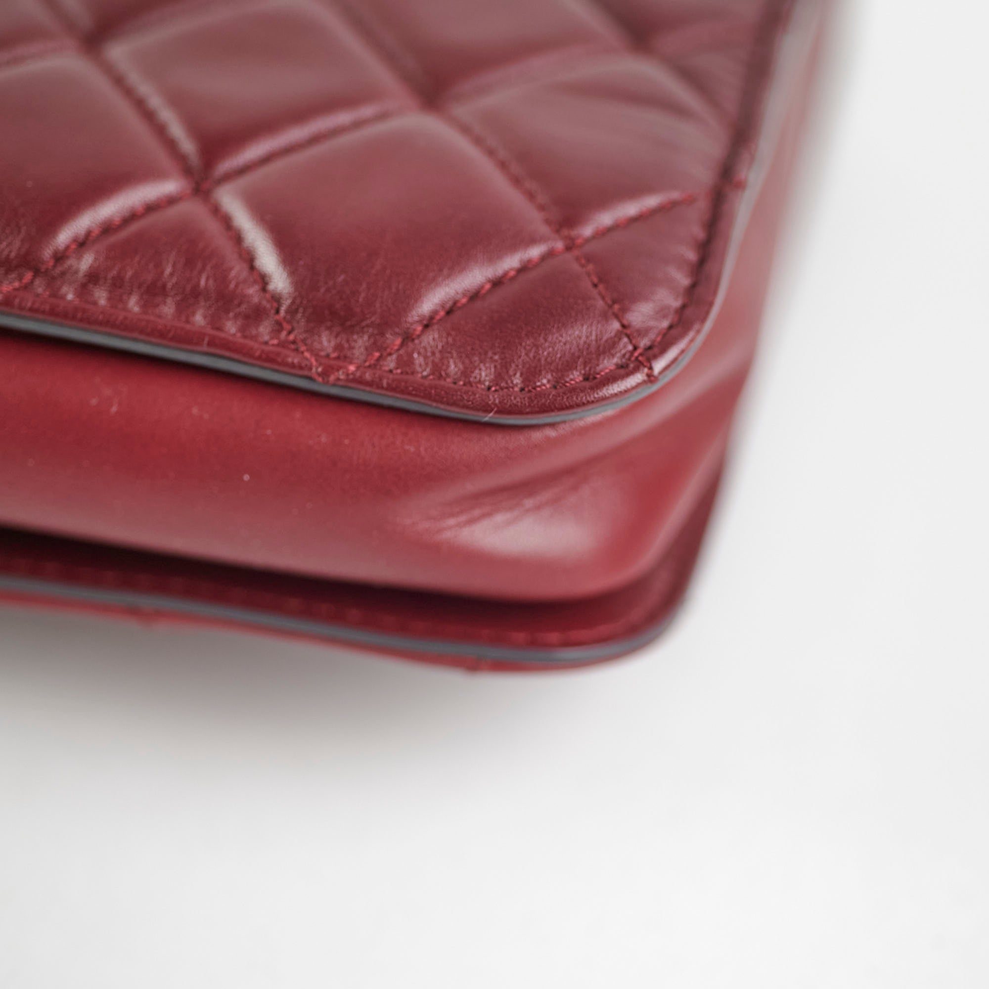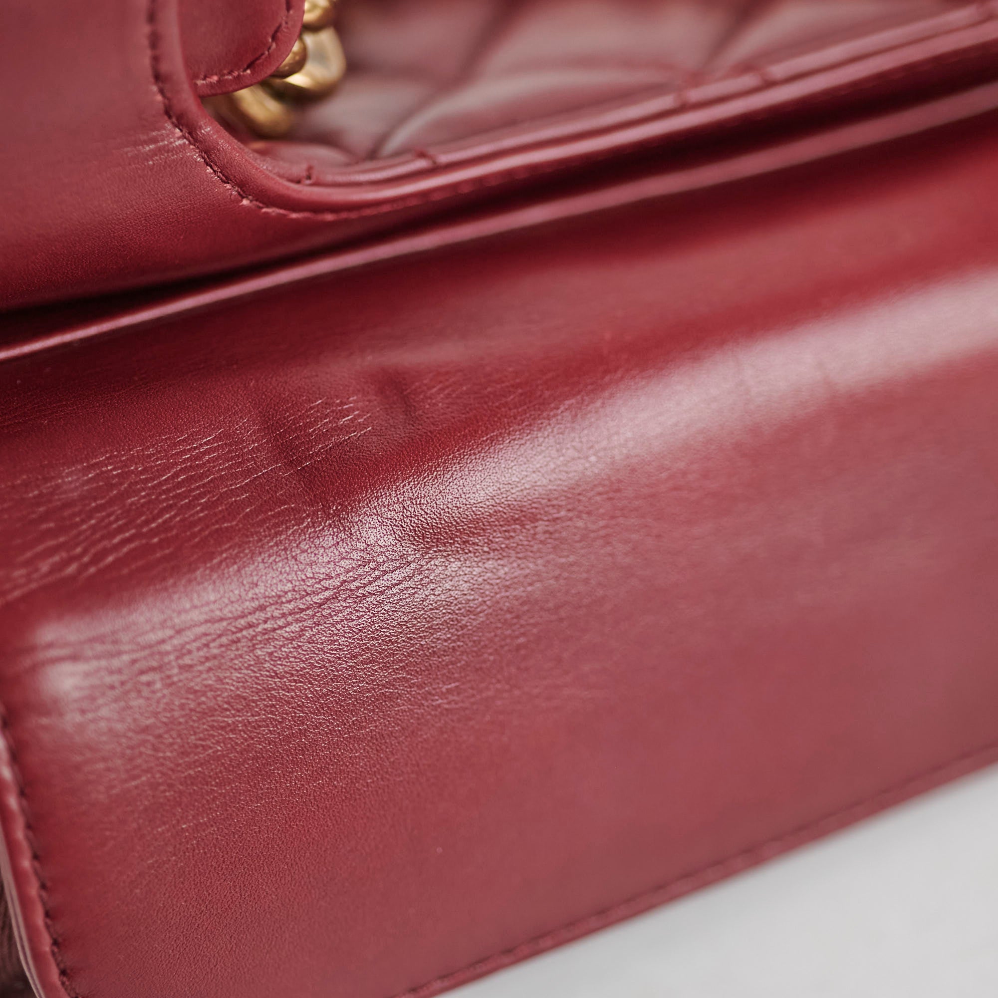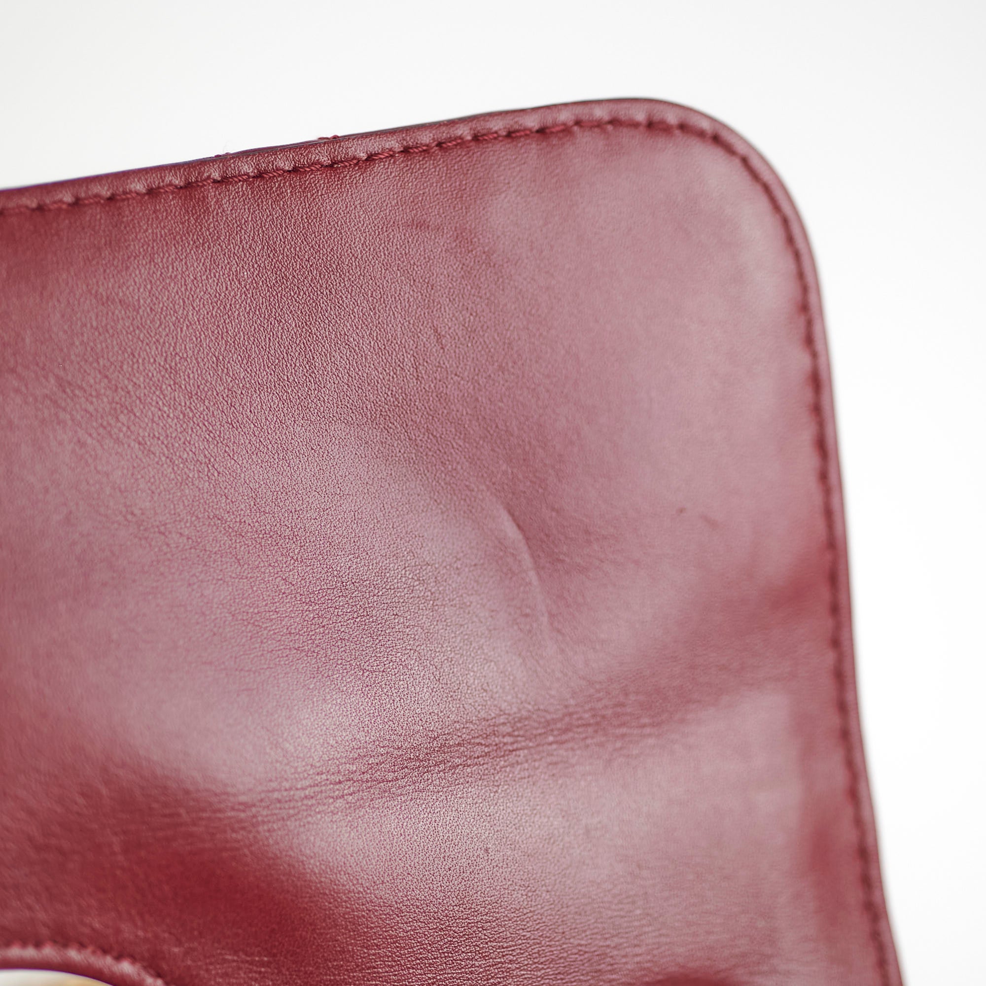 Light indent near opening clasp (unavoidable), light rubbing on corner, light nail marks under flap, light rubbing and hairline scratches on hardware