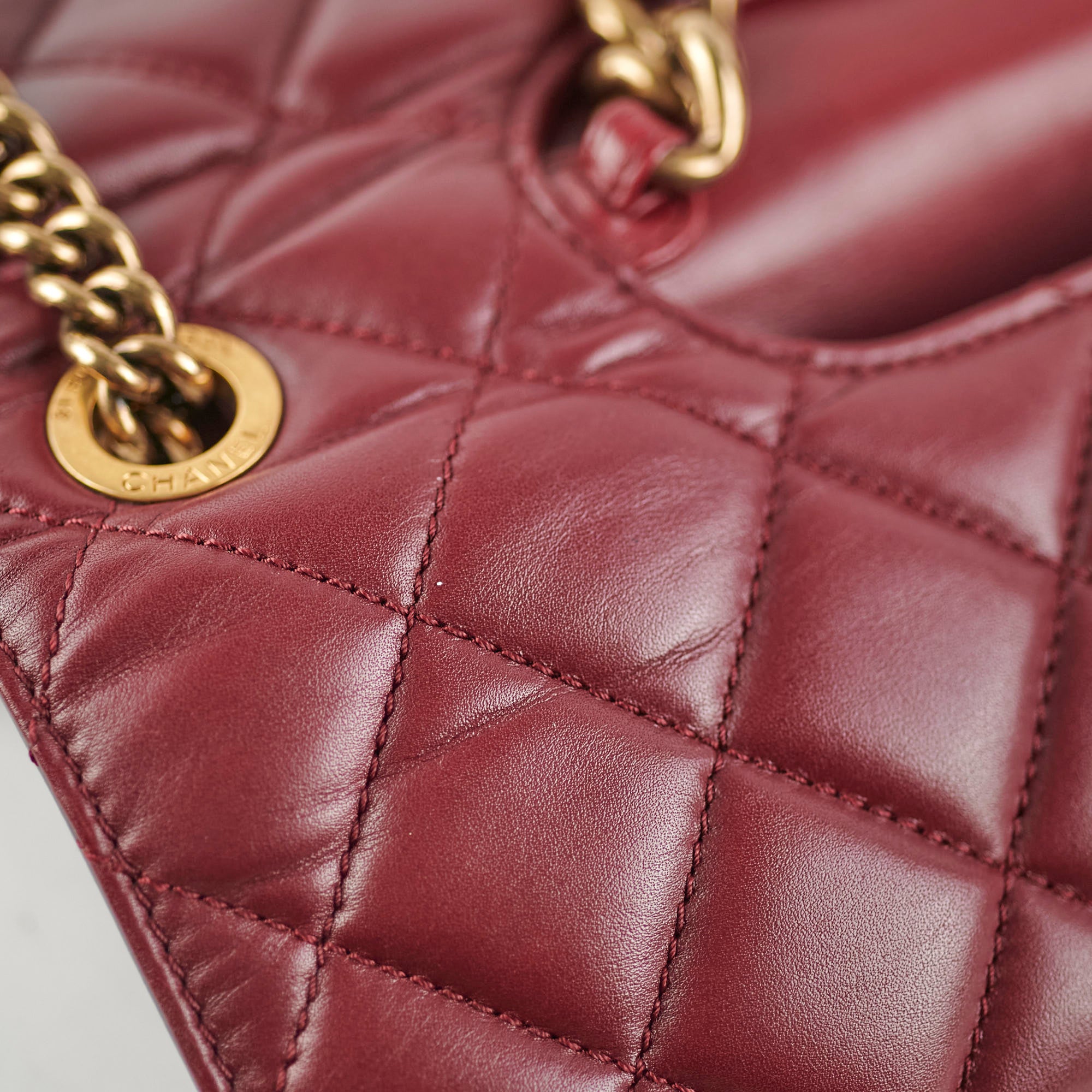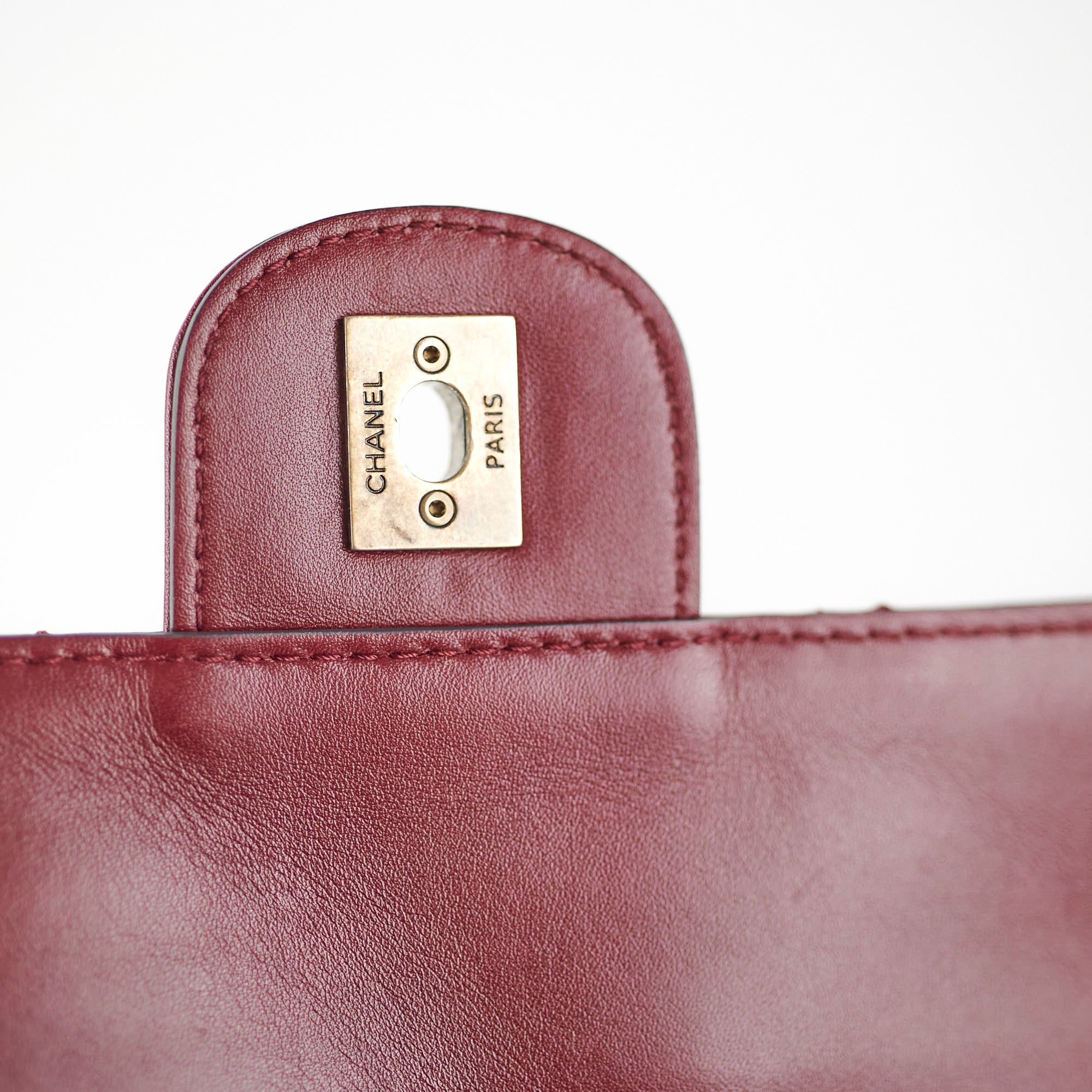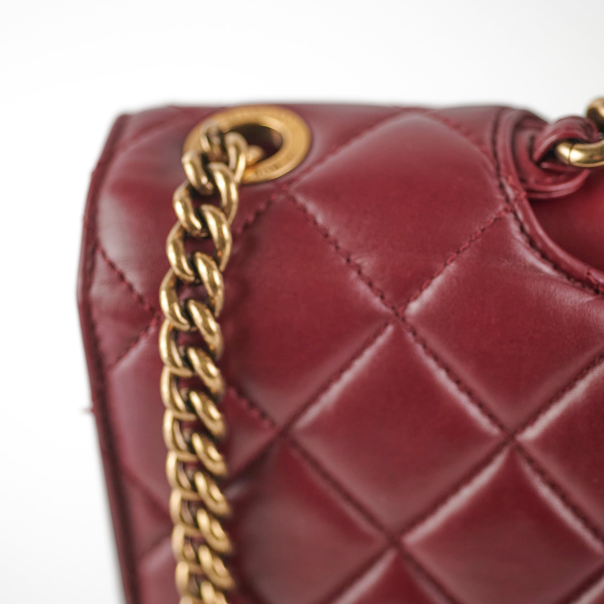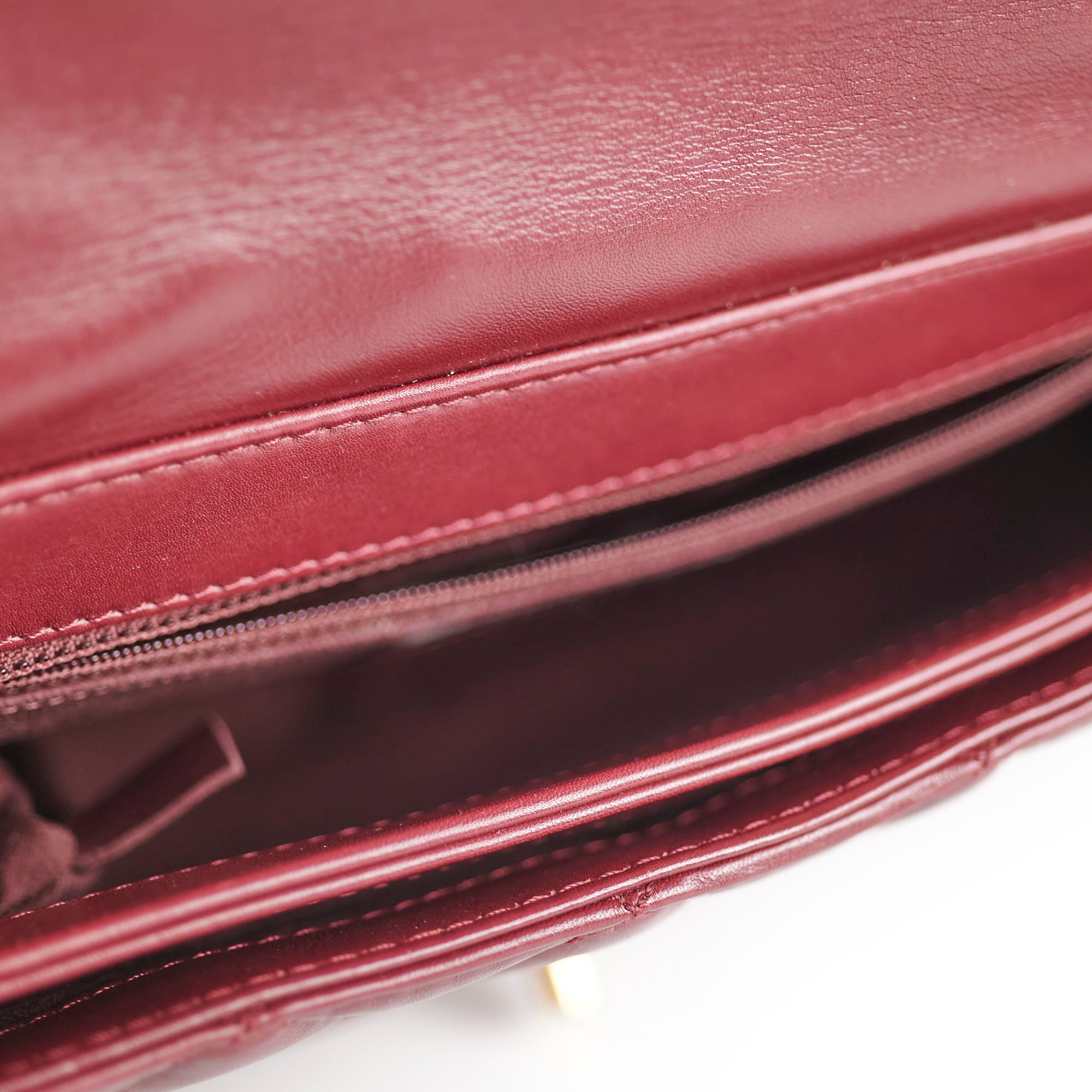Light indent near opening clasp (unavoidable), light rubbing on corner, light nail marks under flap, light rubbing and hairline scratches on hardware