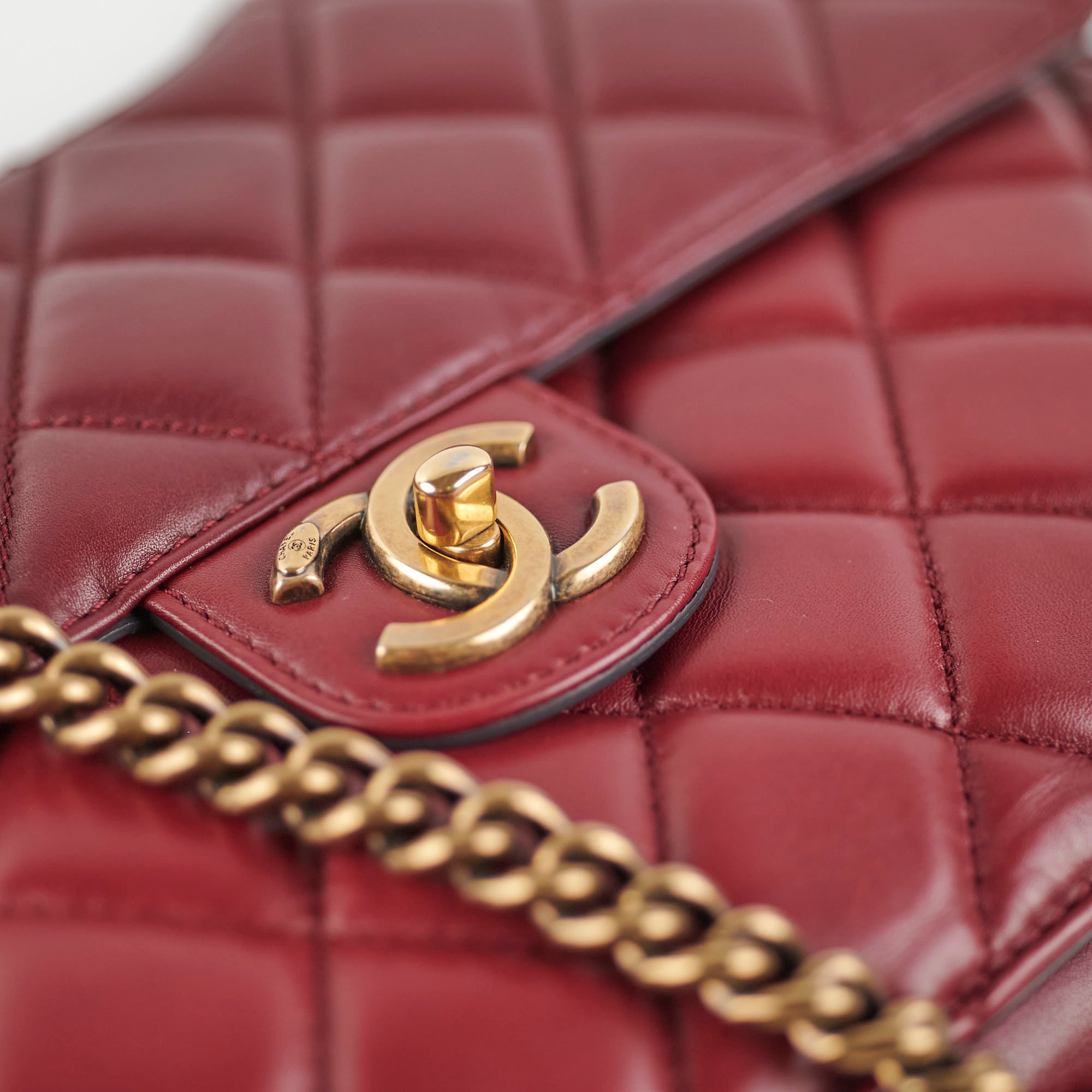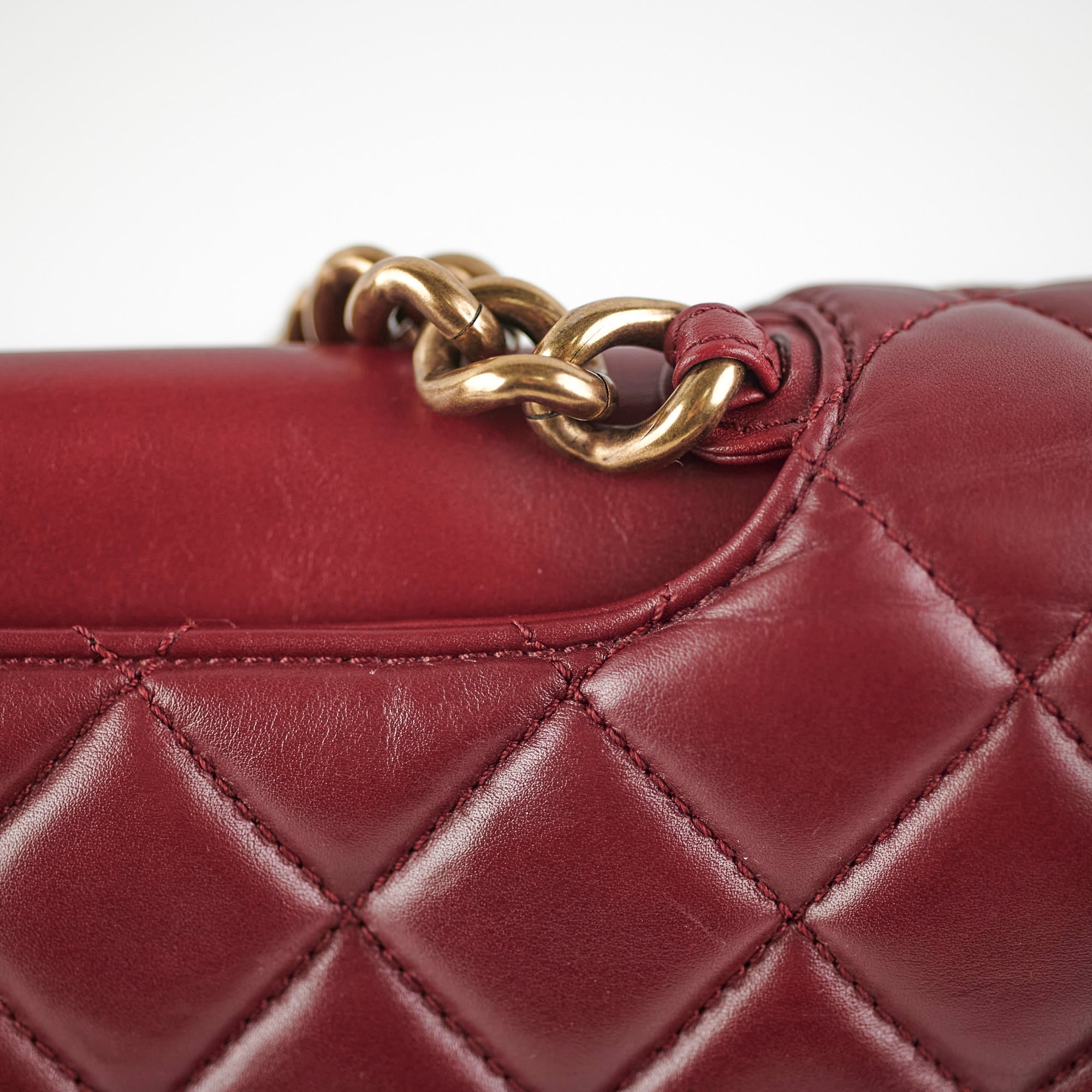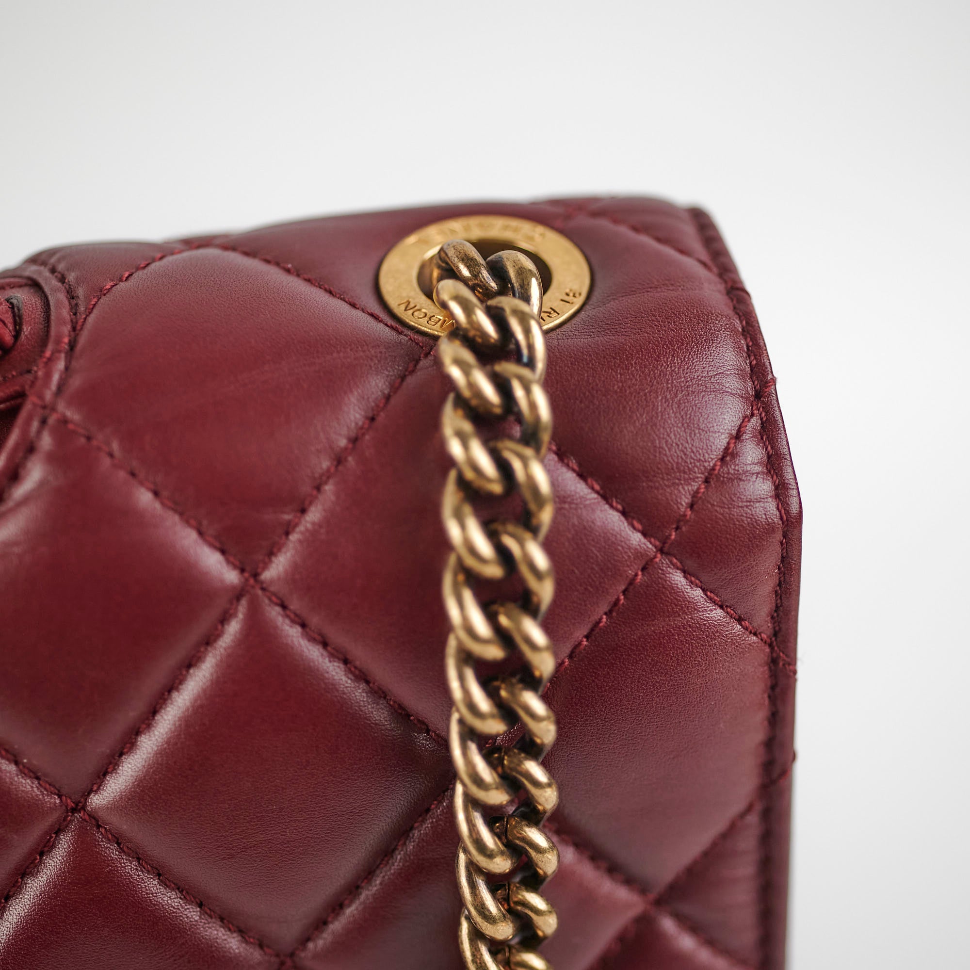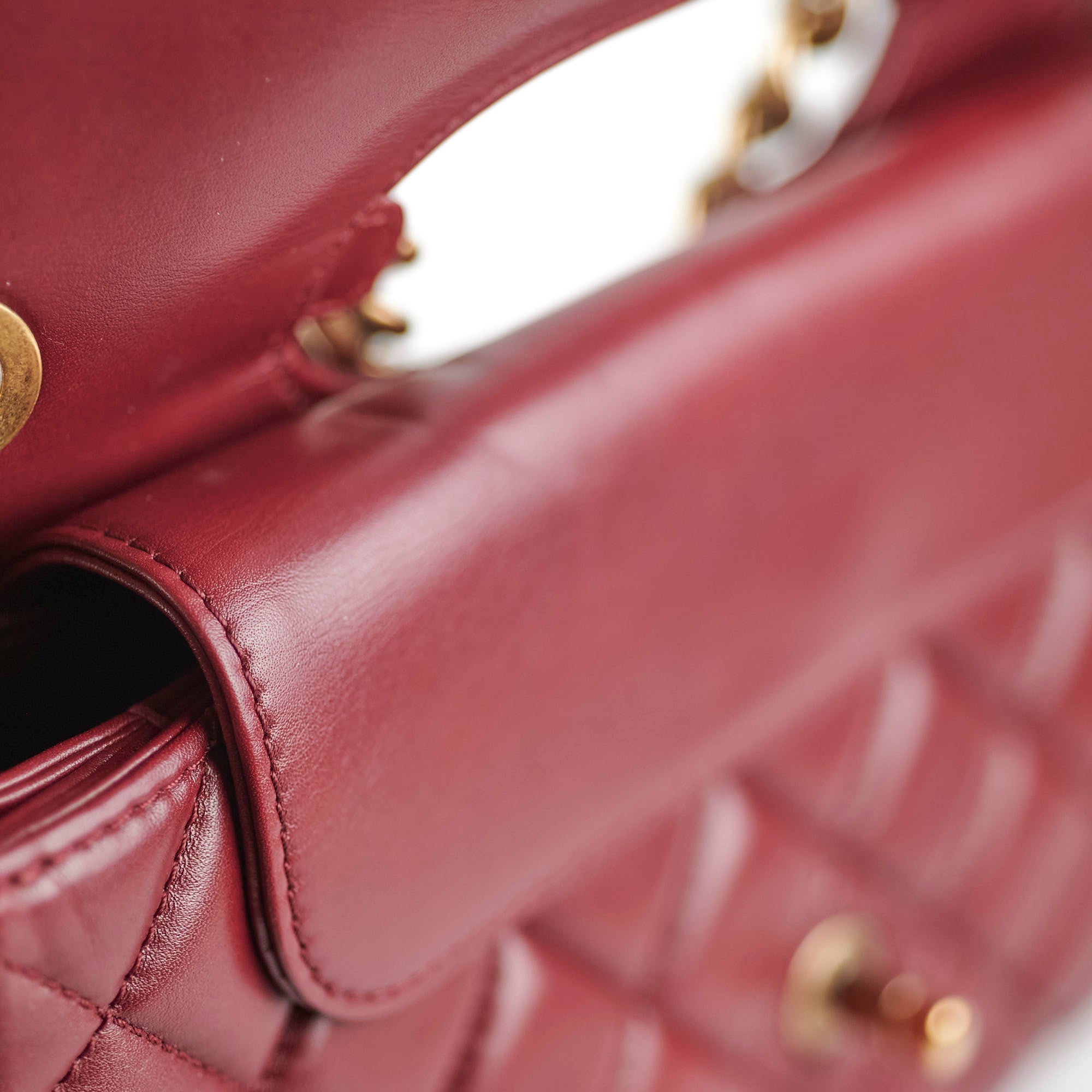 Light indent near opening clasp (unavoidable), light rubbing on corner, light nail marks under flap, light rubbing and hairline scratches on hardware