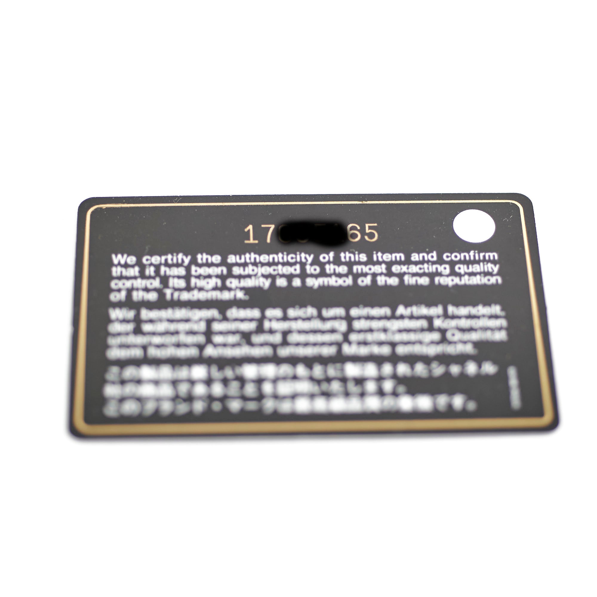 Authenticity Card, Dustbag