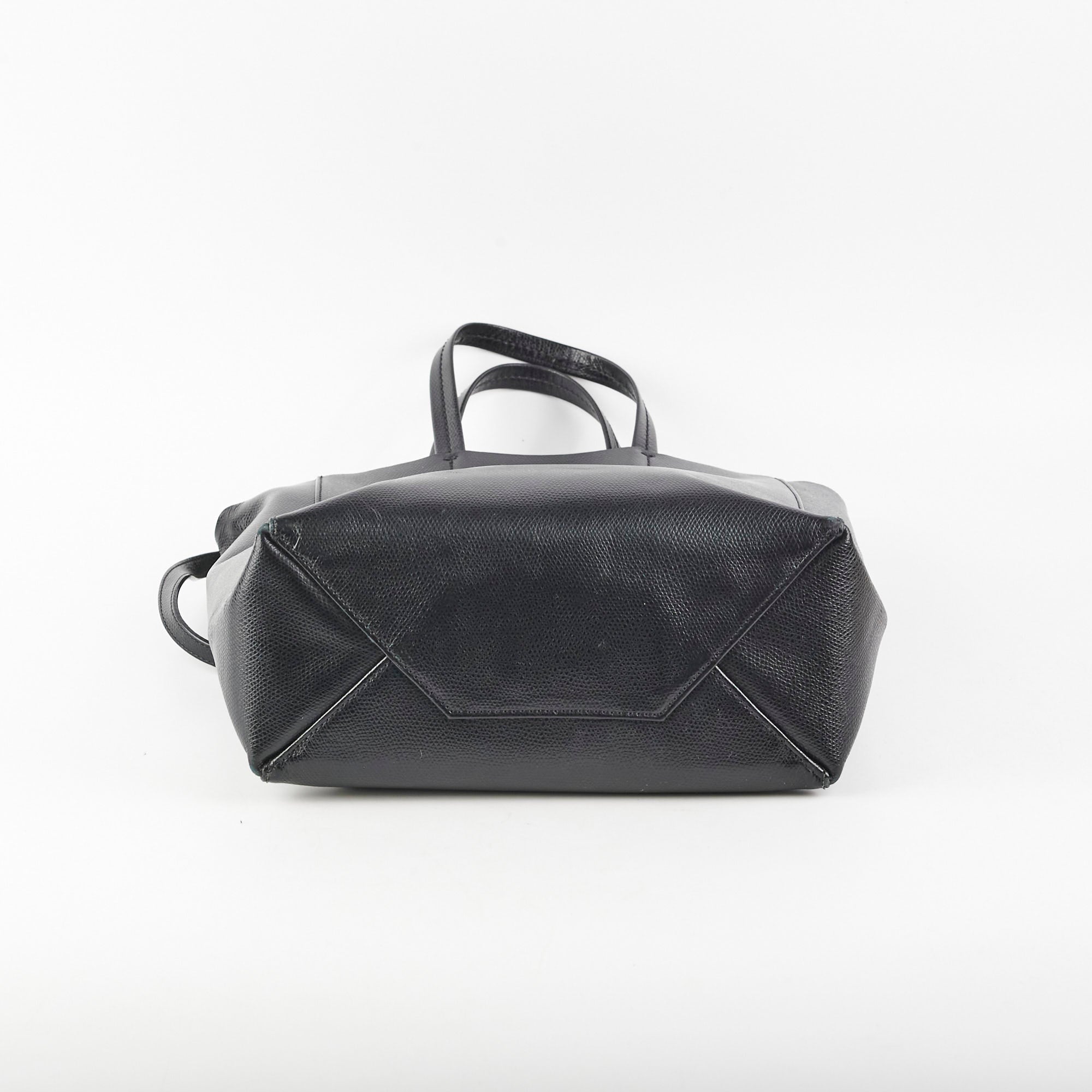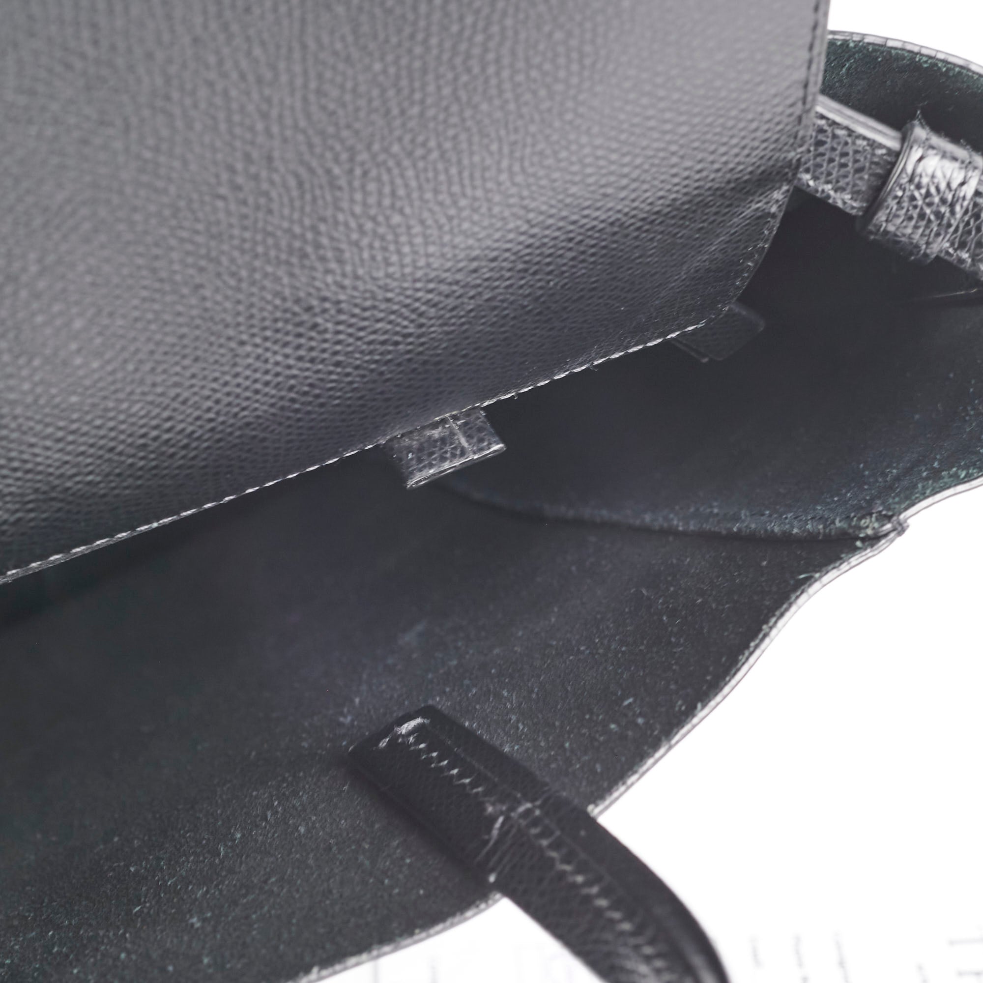 Rubbing on corners, rubbing interior near strap, minor crease on front of bag