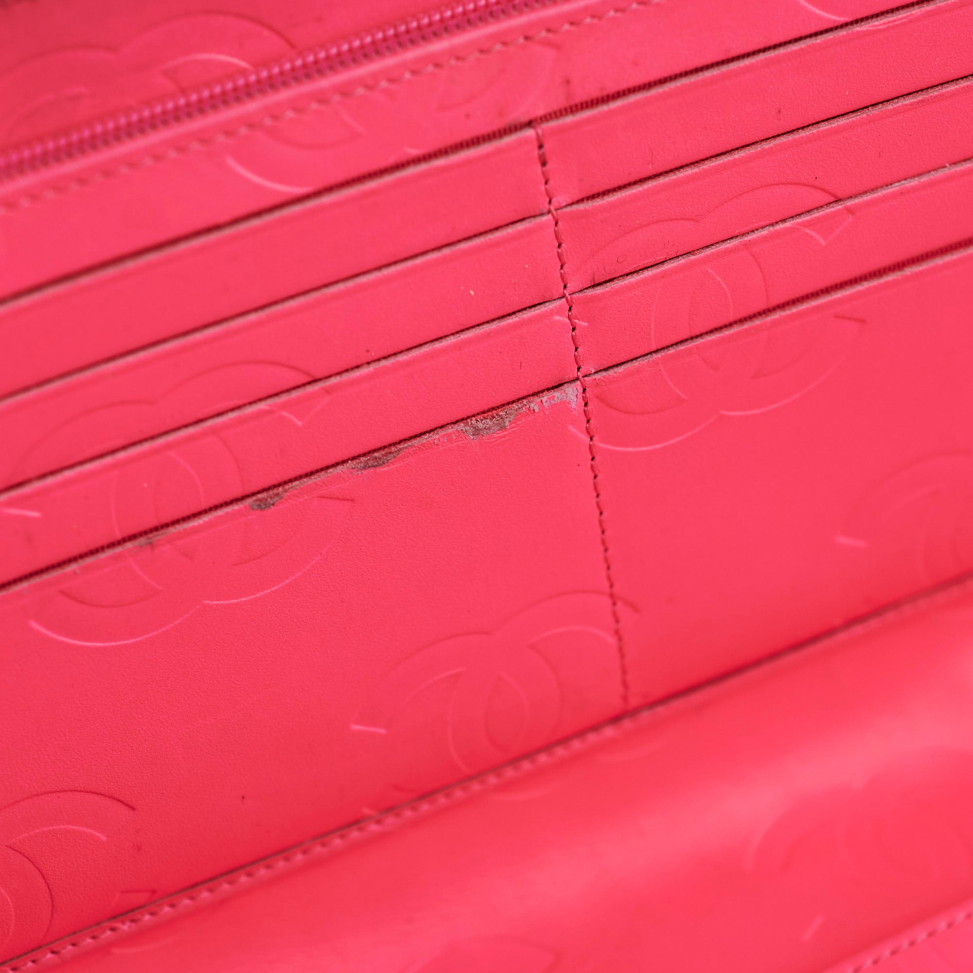 Light rubbing around edges and corners, light nail marks and rubbing on leather, light wear on interior near pockets and card slots, light stains and marks on interior pockets