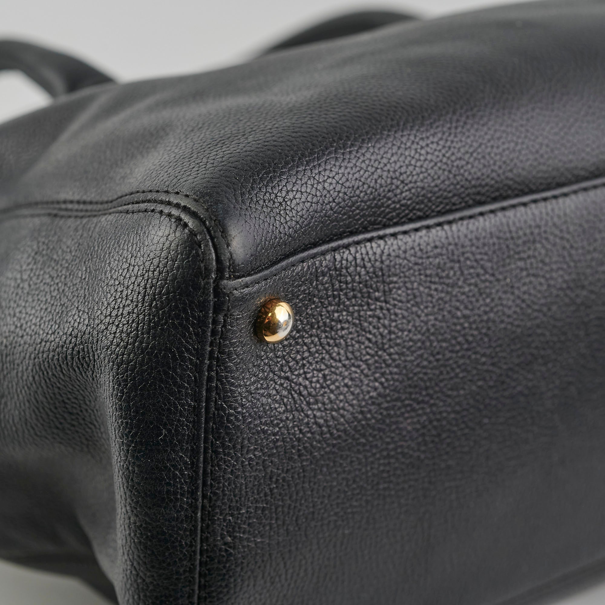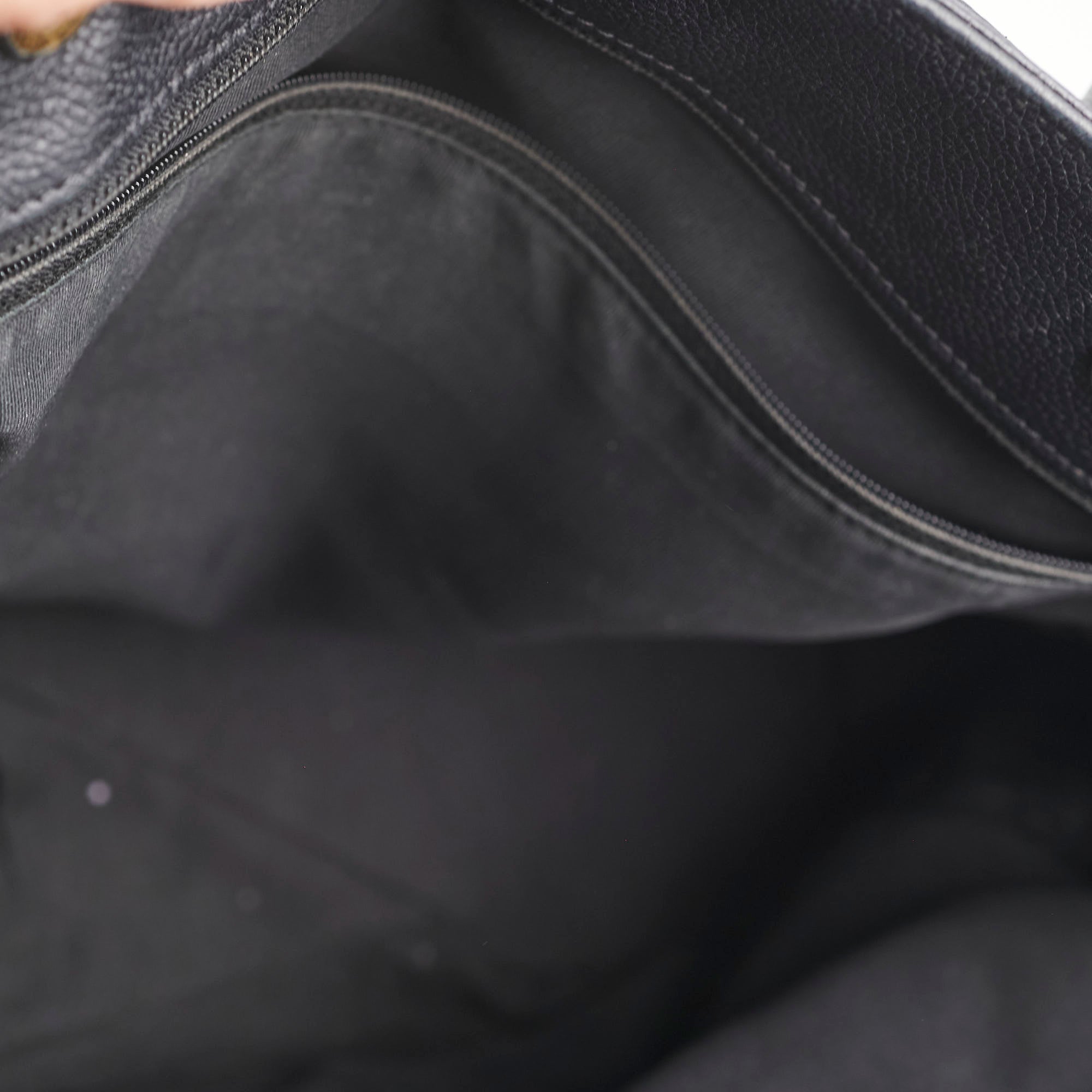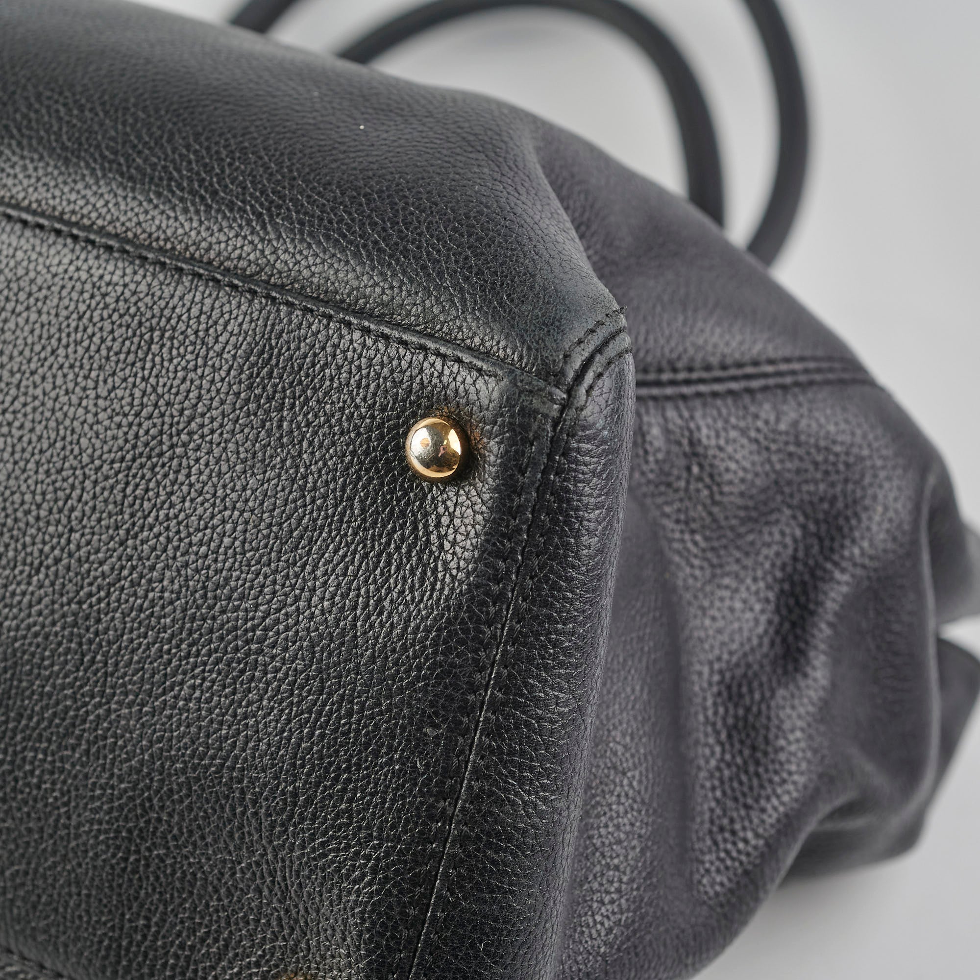Soften structure, hairline scratches on hardware, minor stains o9n interior zipper pouch, rubbing on corners