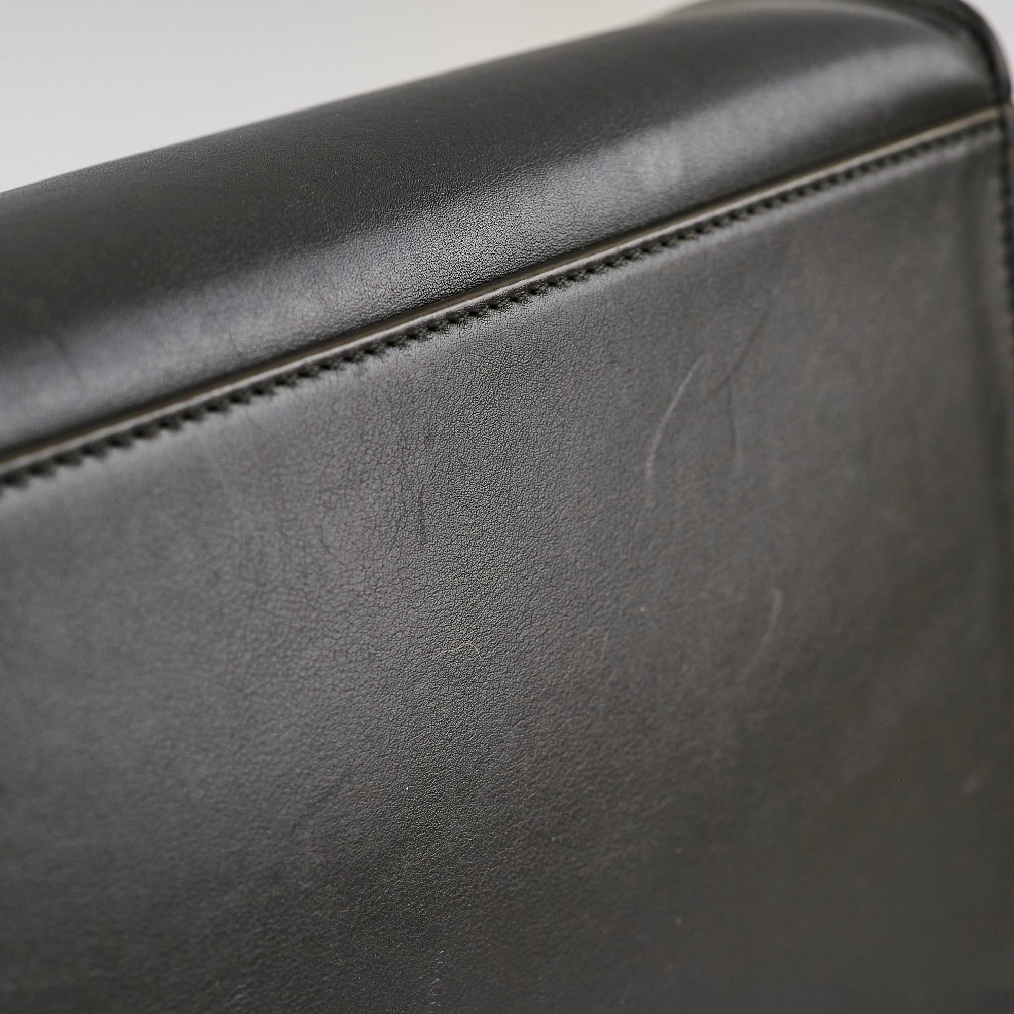 Light nail marks throughout leather, light hairline scratches on leather