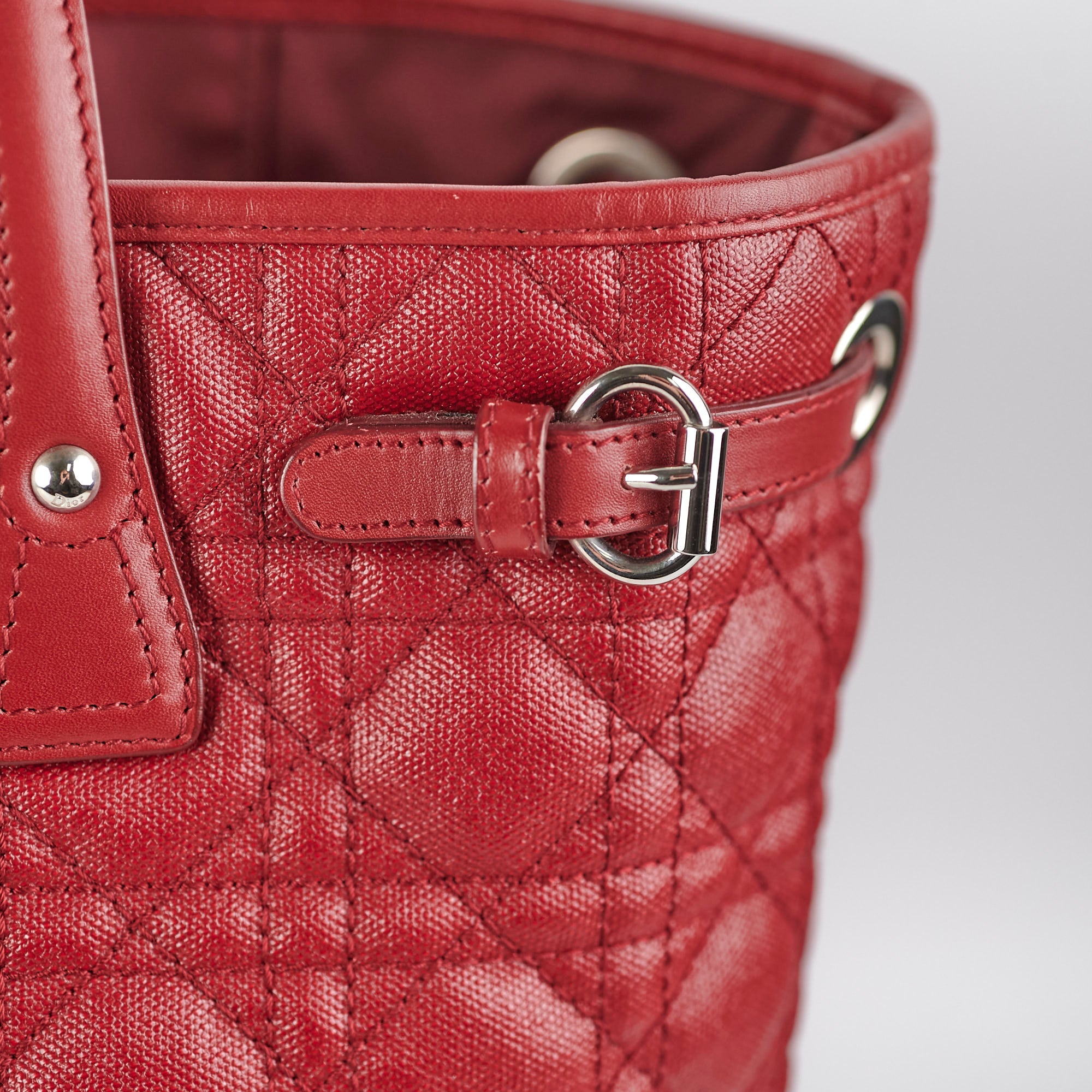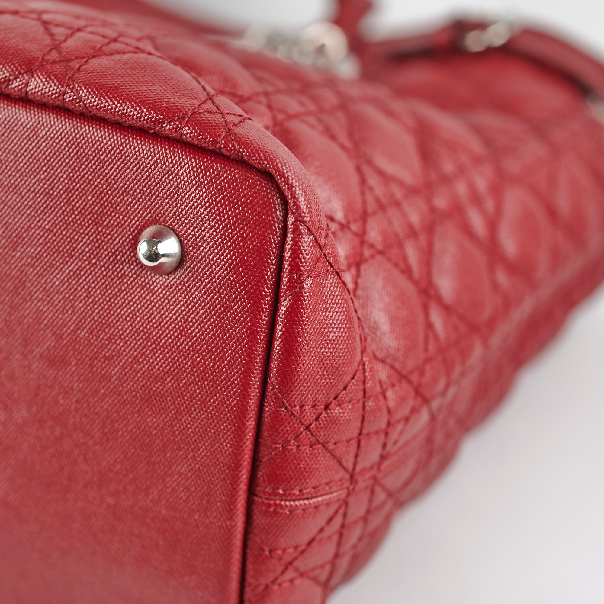Light rubbing on corners and edges, light creasing on leather, minor nail mark on base, light wear on hardware