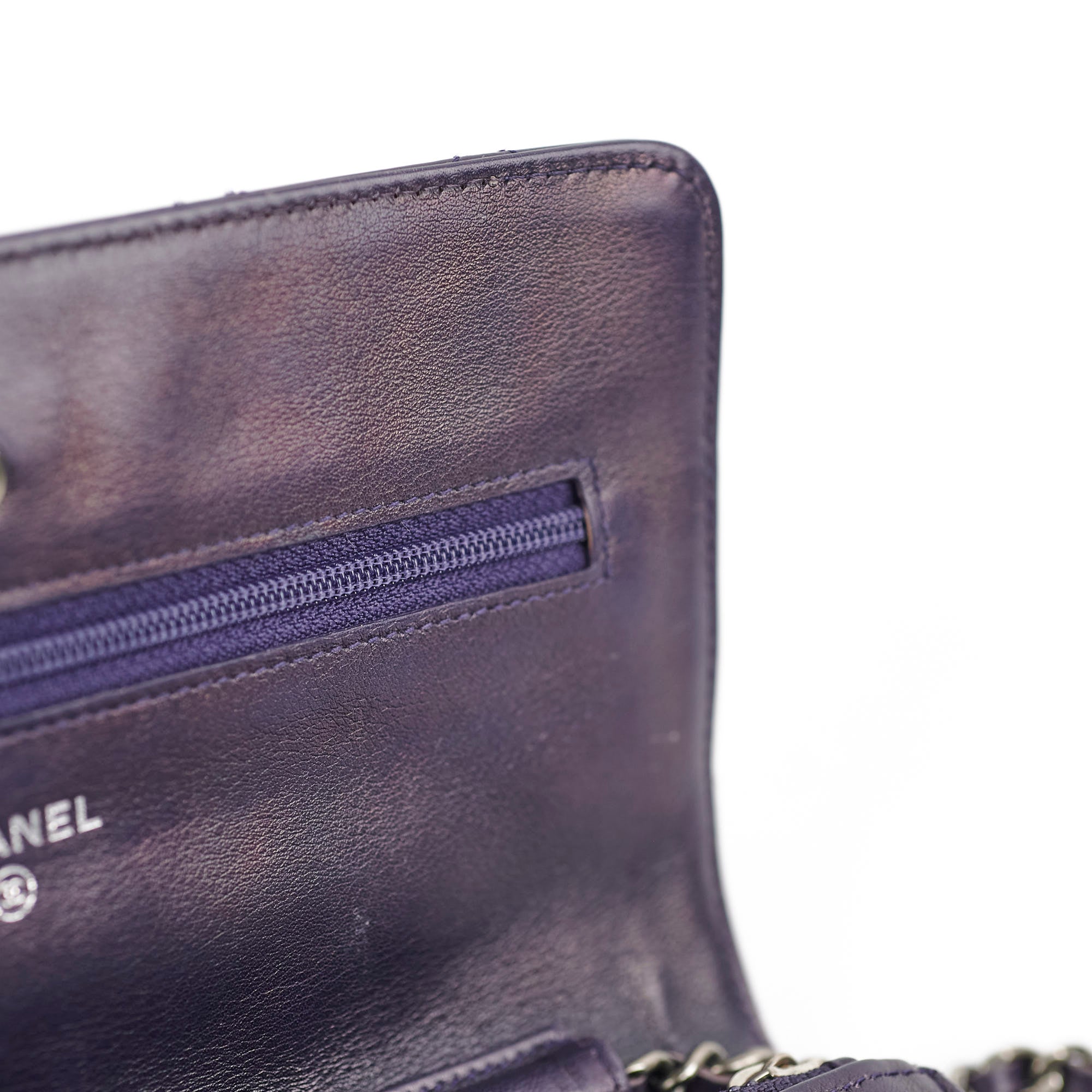 Light tarnishing and scratches on hardware, light rubbing on corners and edges