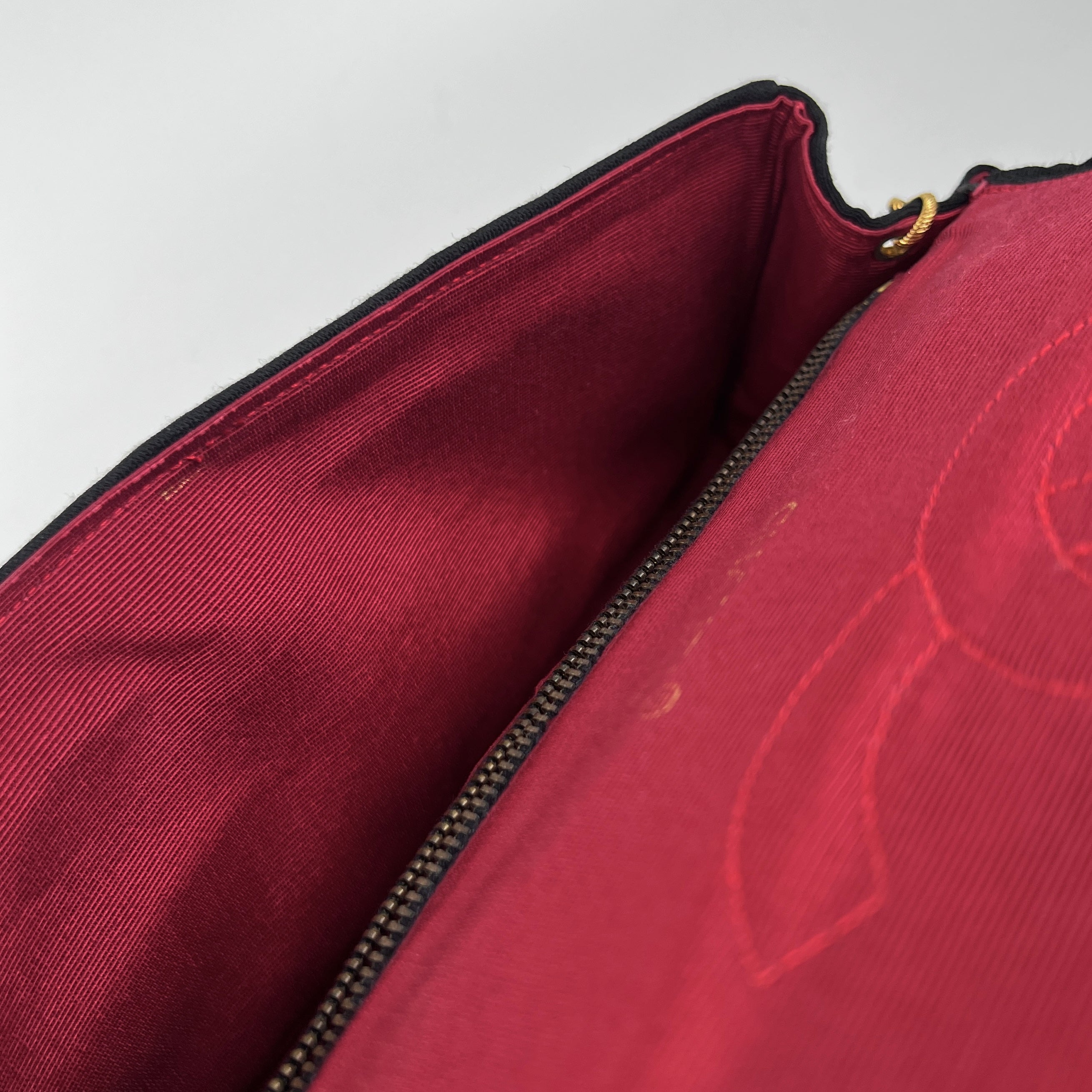 Light tarnishing and scratches on hardware and zipper, light rubbing on inner logo and made in sign, no serial sticker