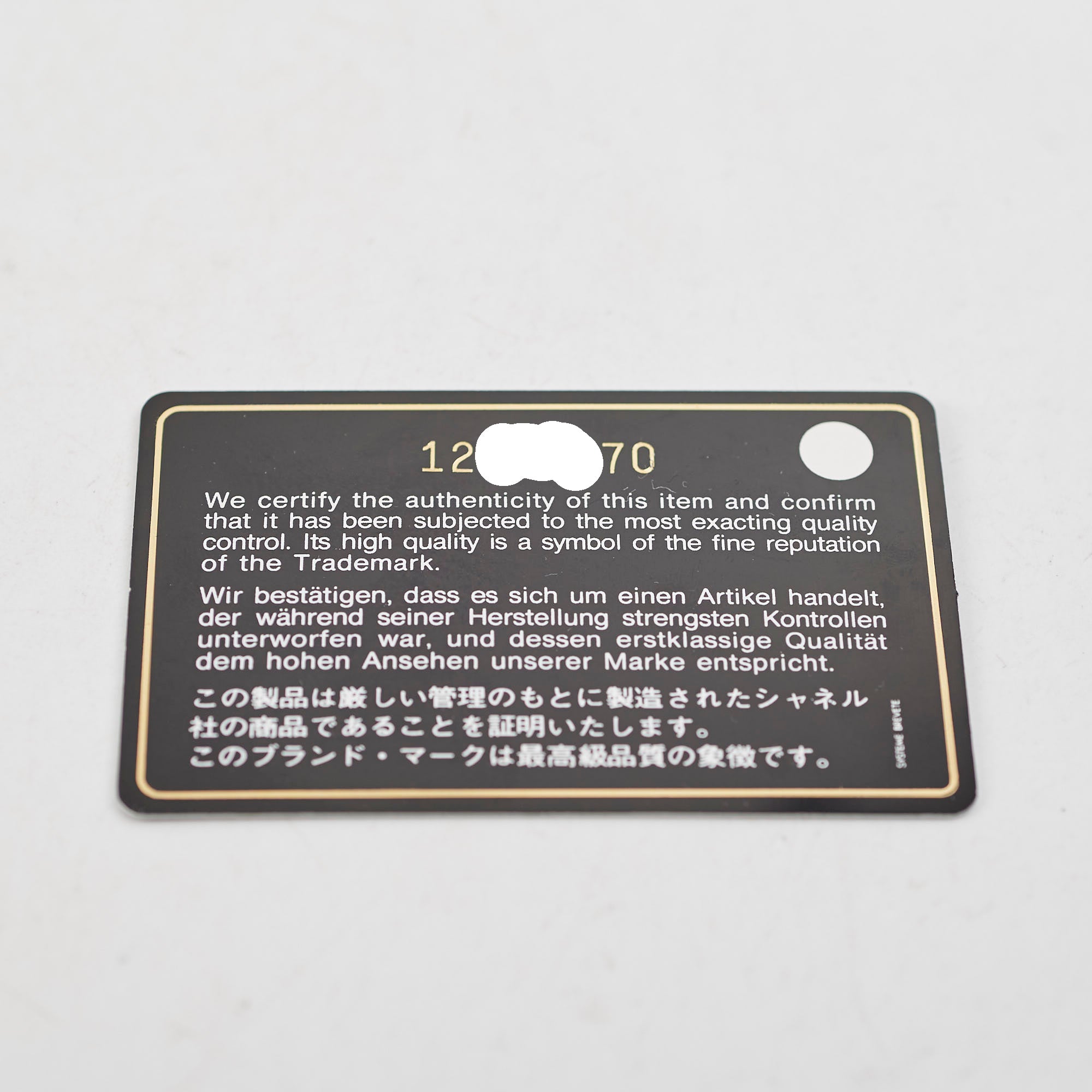 Authenticity Card, Dustbag