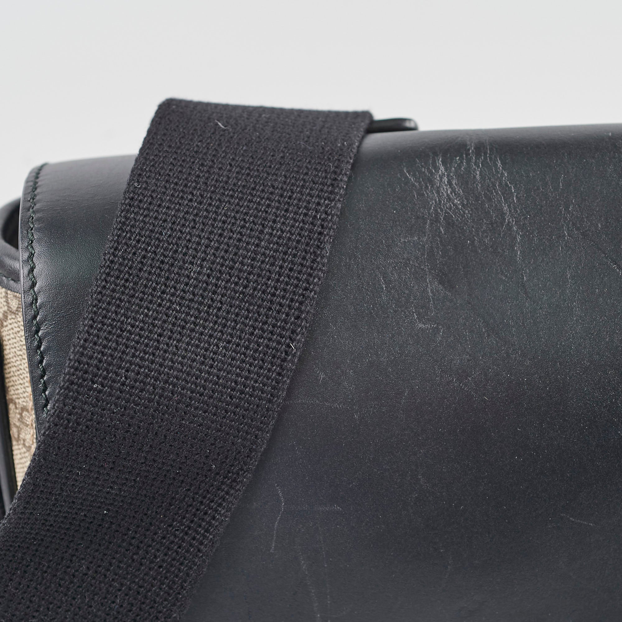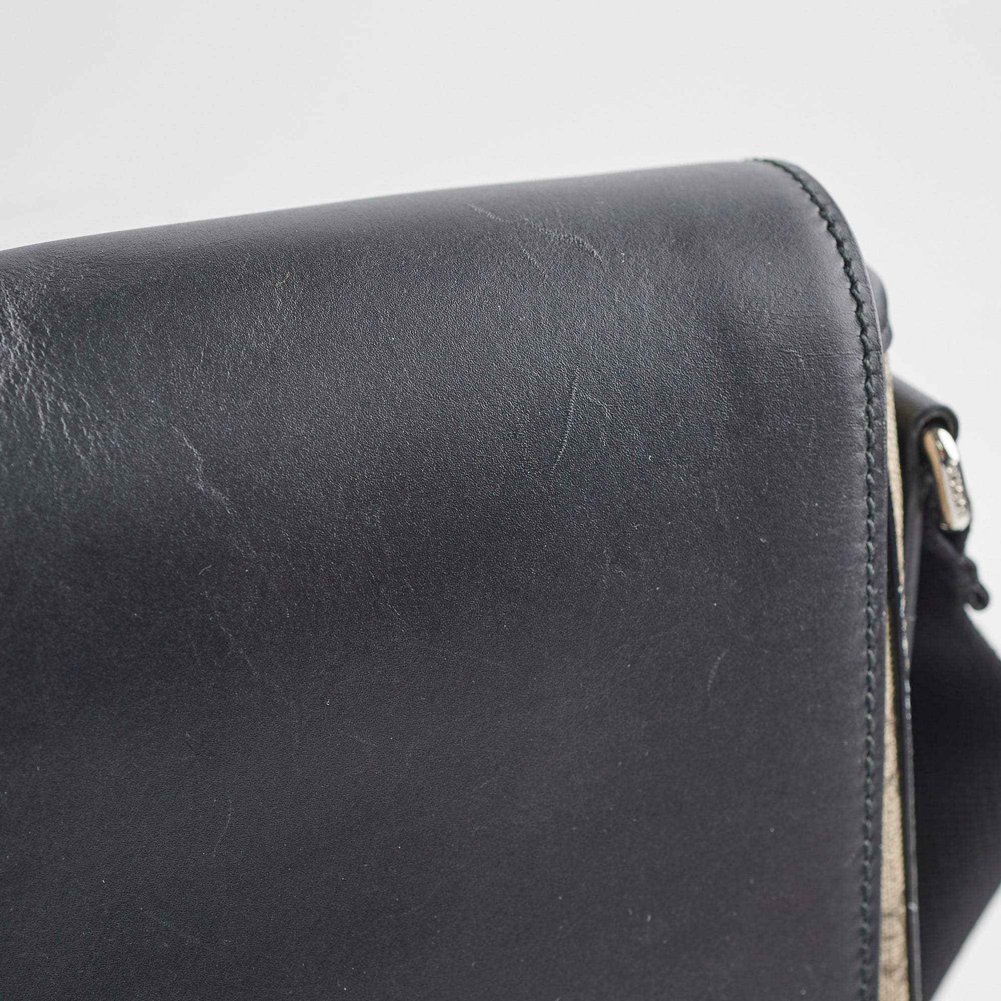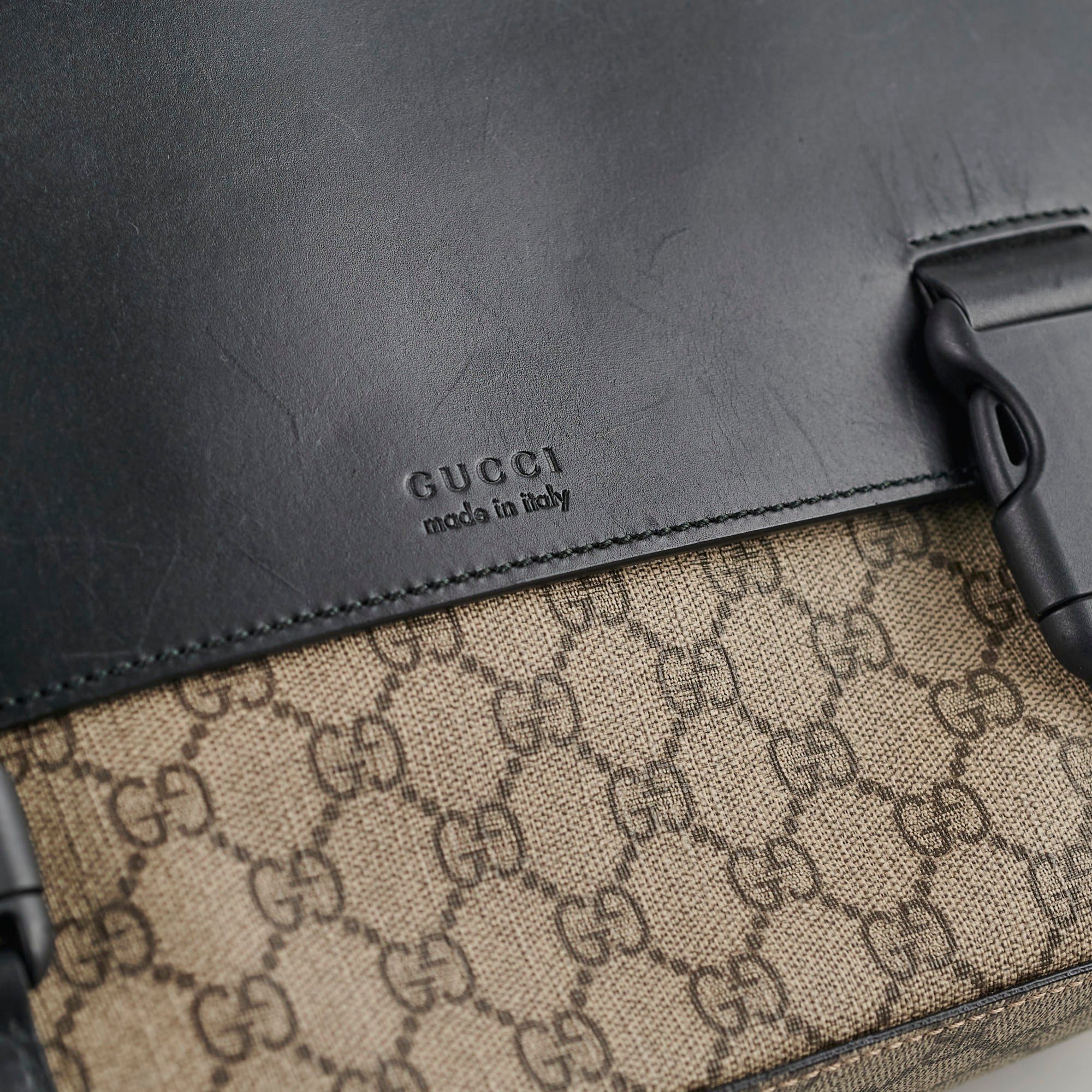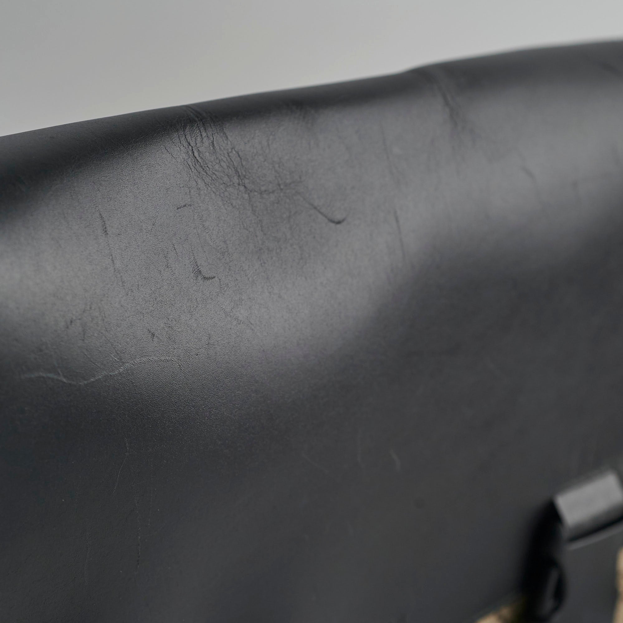 Scuffs throughout leather, creasing on opening flap, great structure, clean inside & out