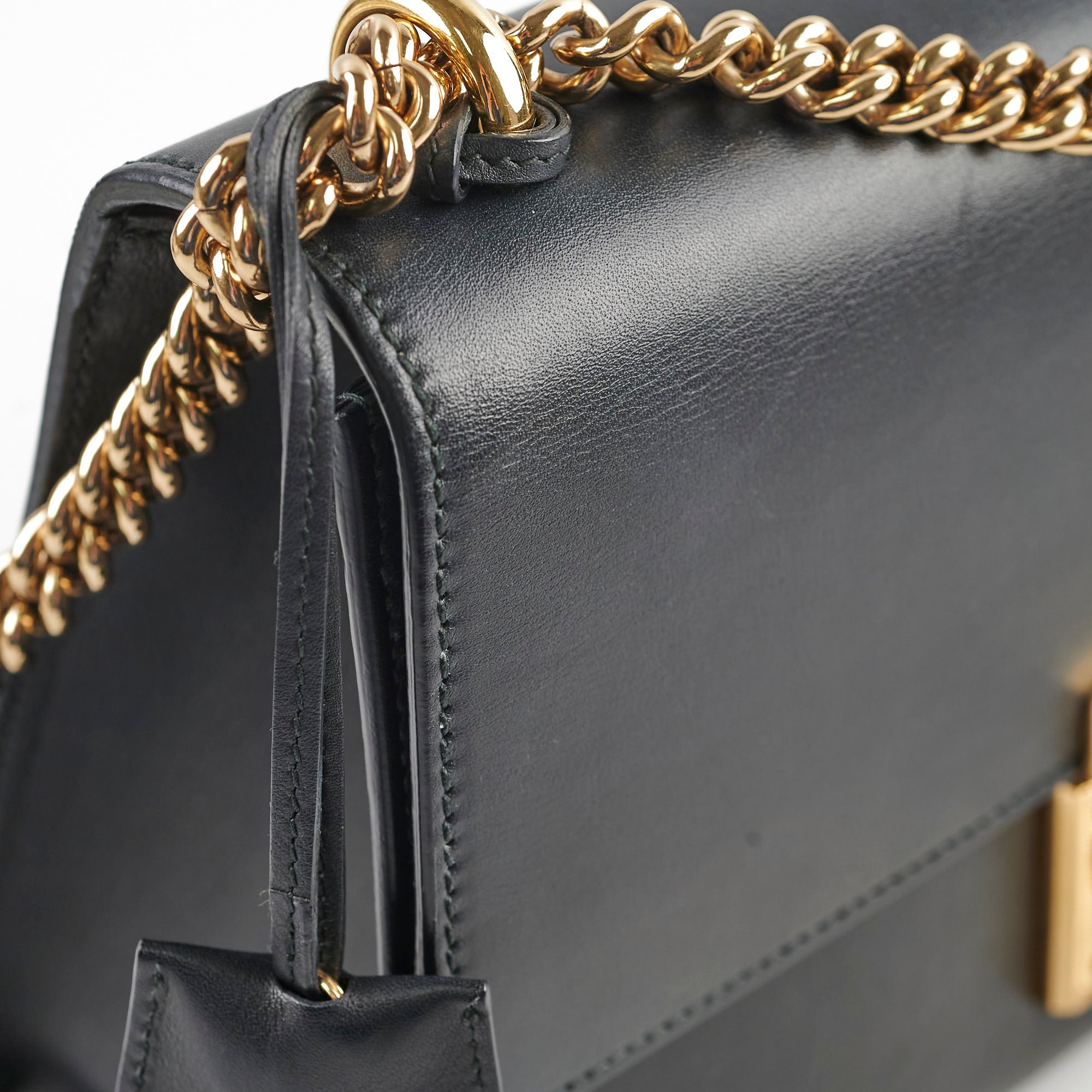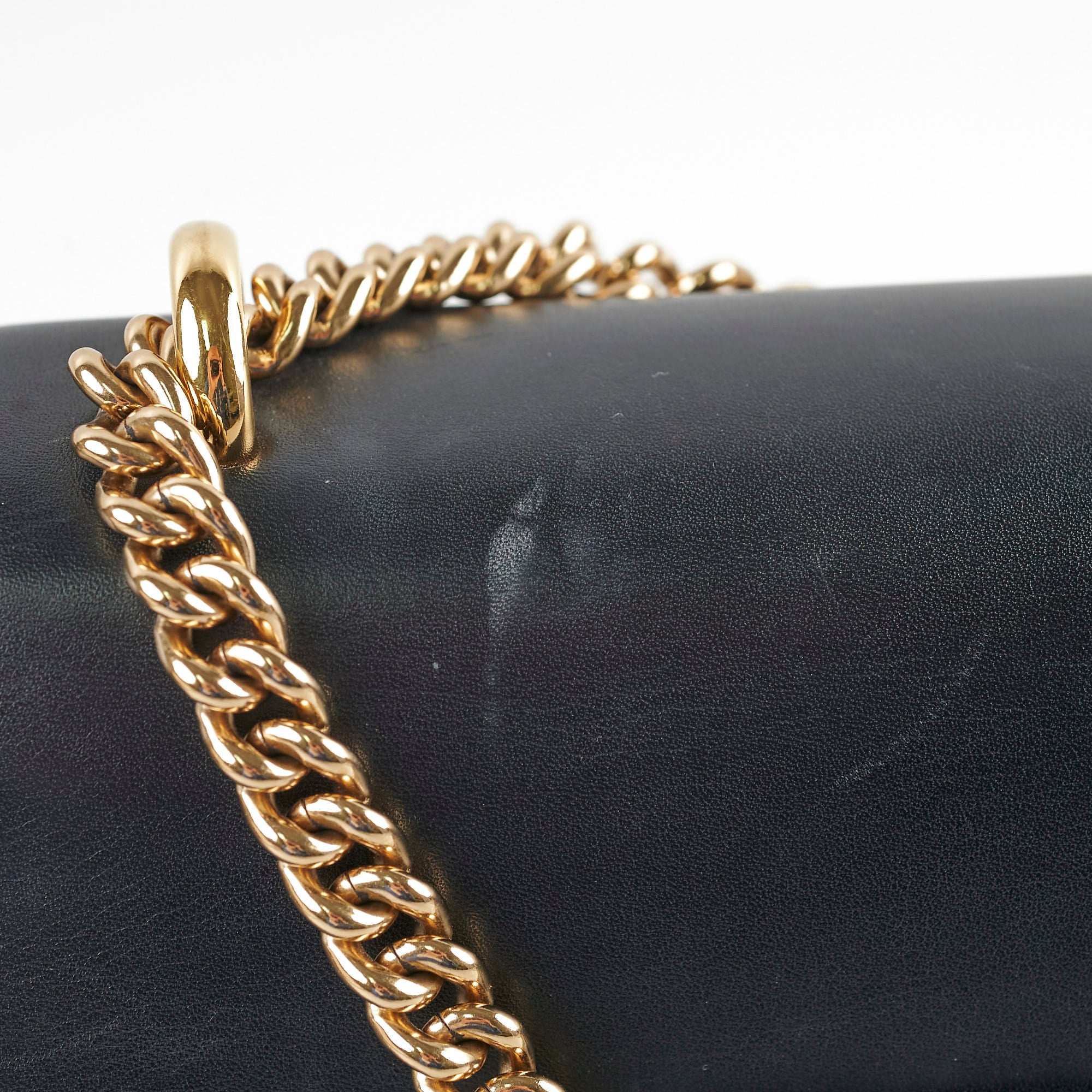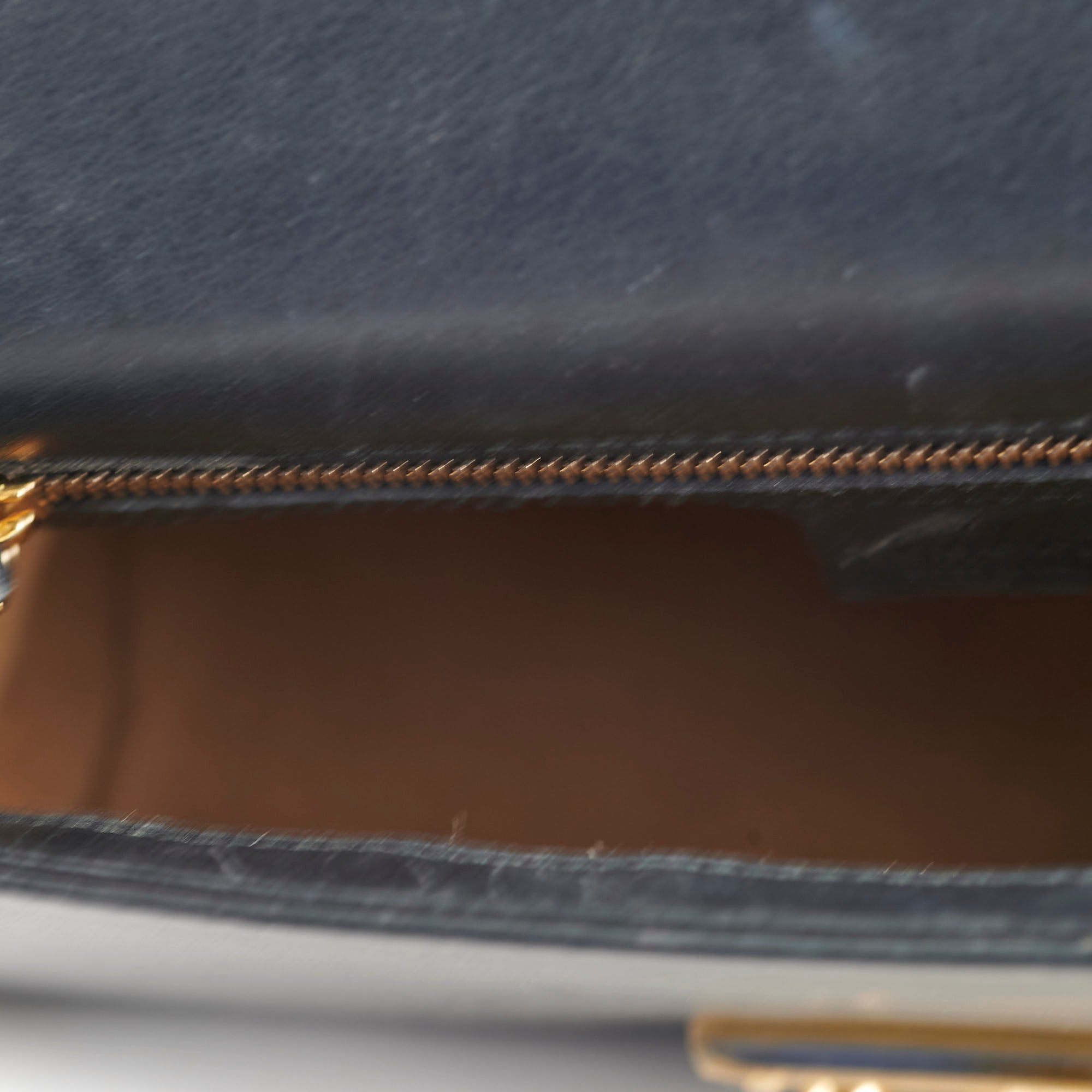 Hairline scratches in hardware, Light marks on leather, Excellent structure