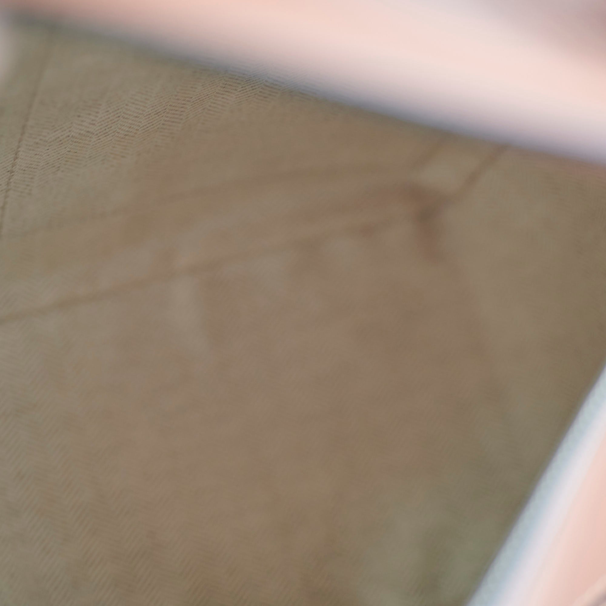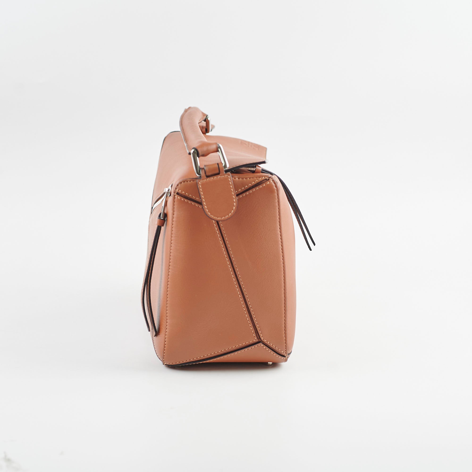 Light hairline scratches on hardware, Minor color transfer around handle hardware, Faint mark on side