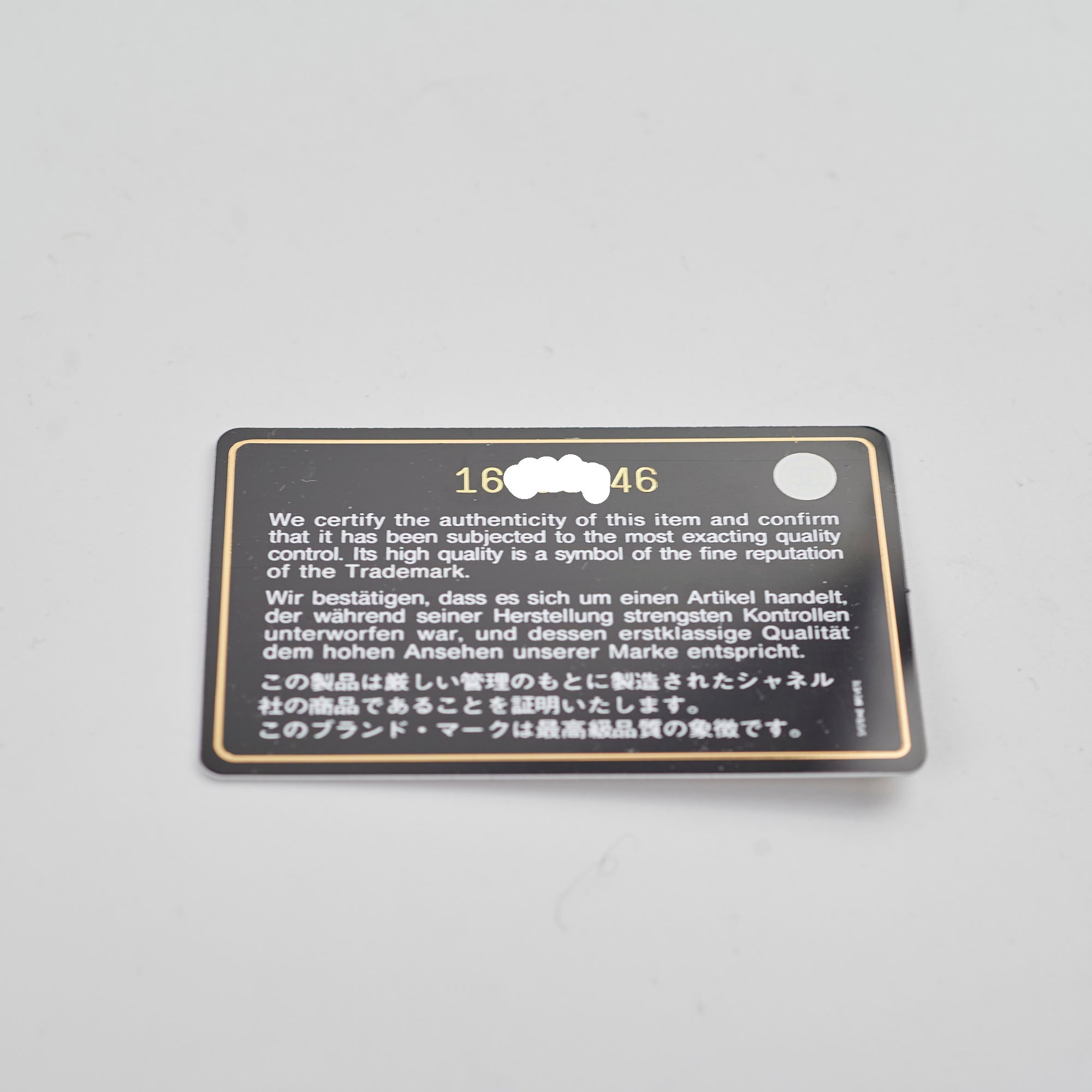 Authenticity Card, Dustbag, Receipt, Box, Control Cards