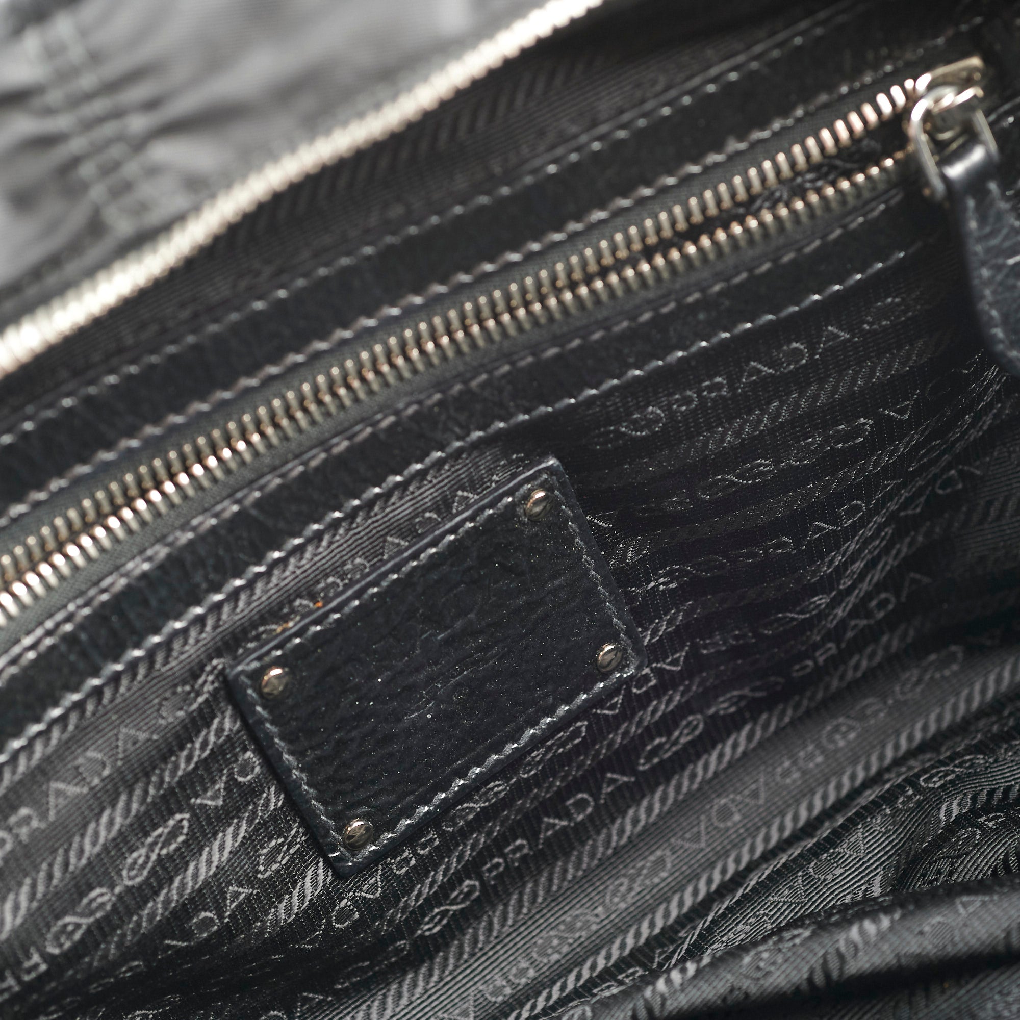 Hairline scratches on hardware, slight tarnishing on hardware