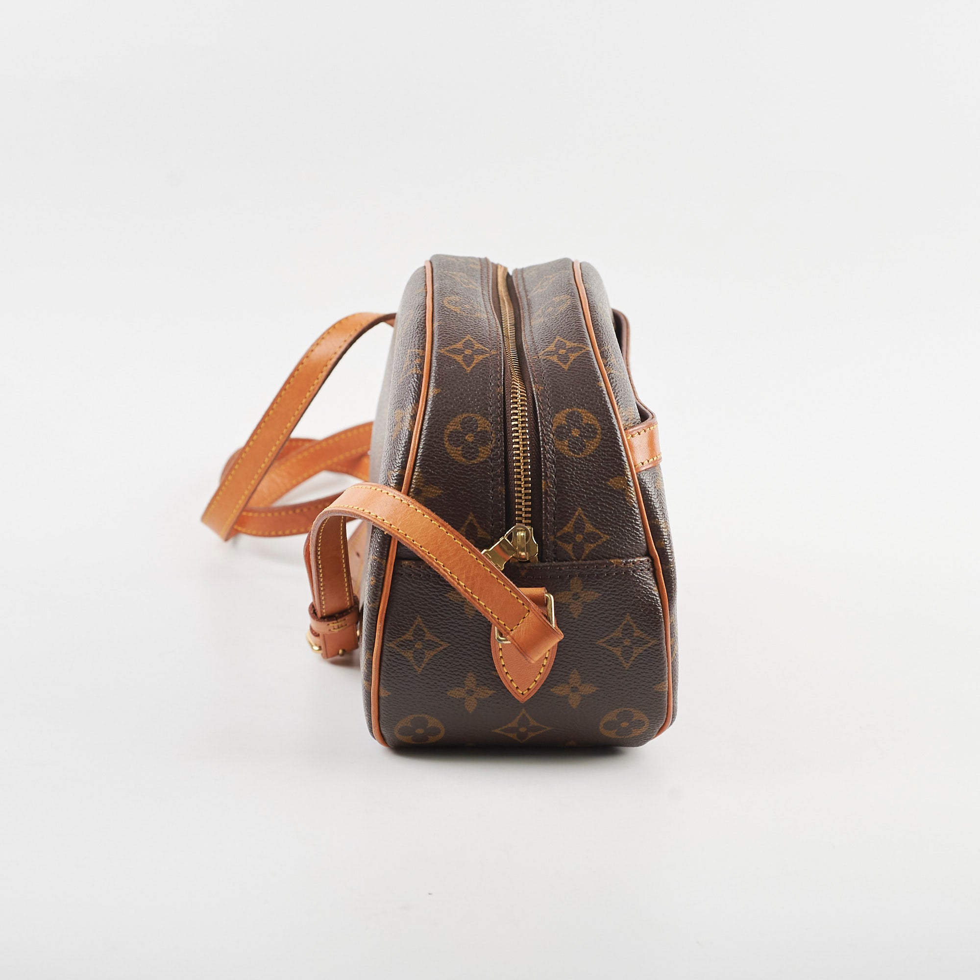 Minor darkening of vachetta leather, Light signs of wear on hardware