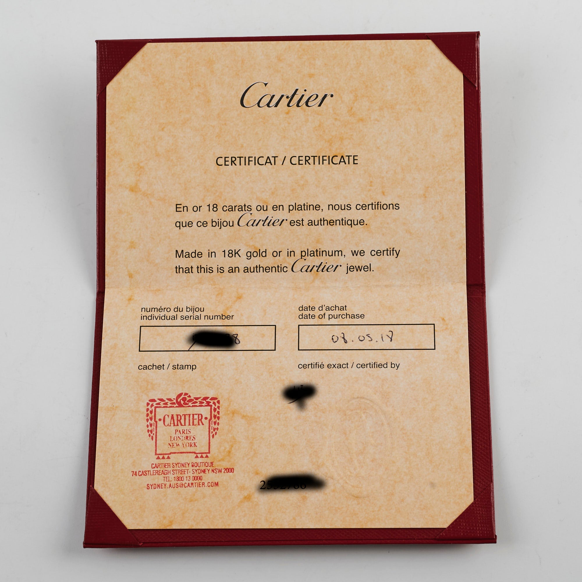 Receipt, Certificate of Authenticity, Inner Box, Outer Box